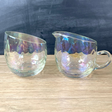 Opalescent drapery glass cream and sugar set - 1960s vintage