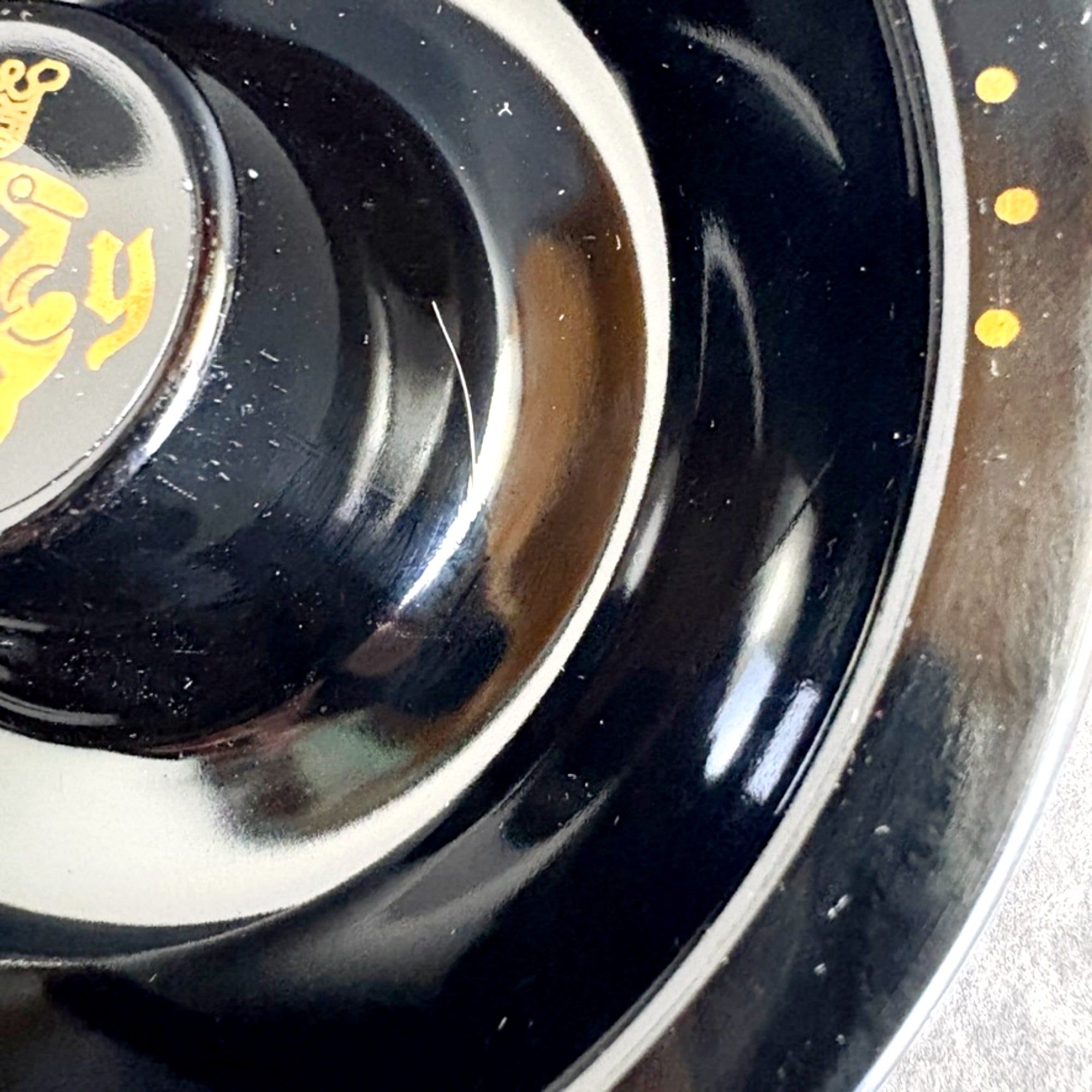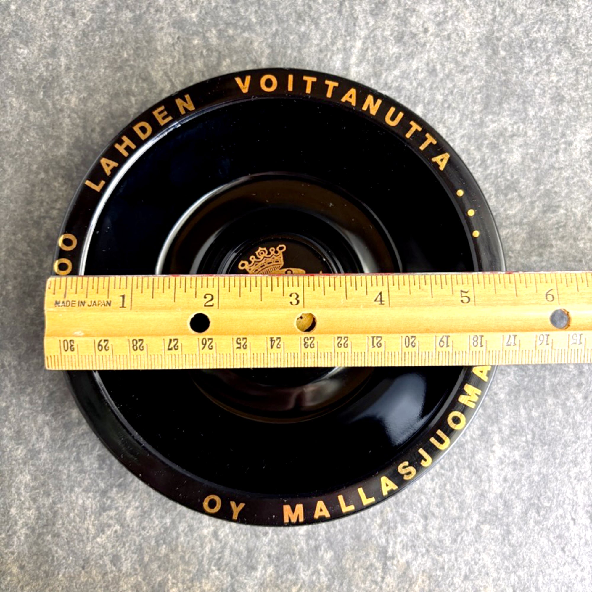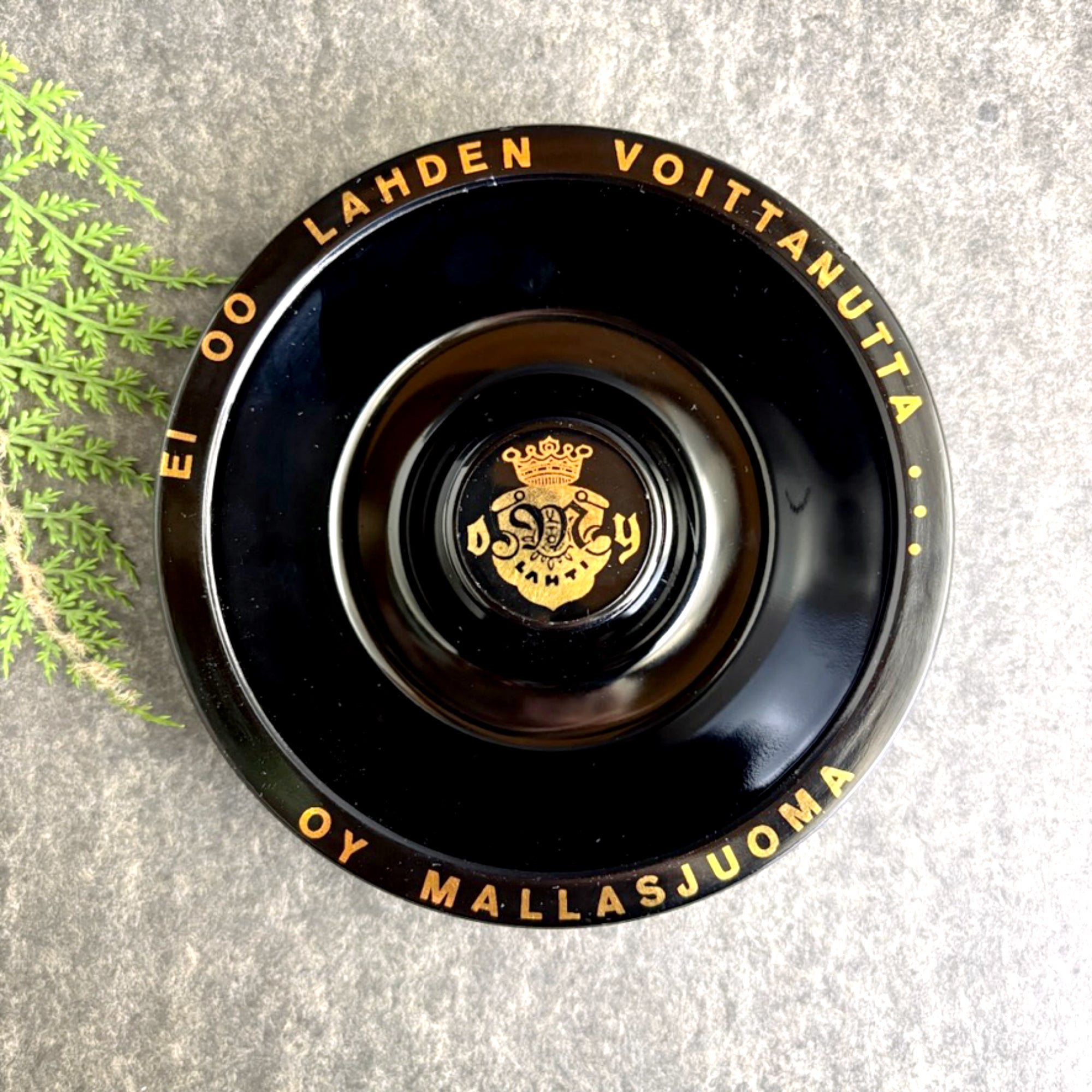 Vintage 70s Oy Mallasjuoma Brewery souvenir ashtray – Lahti Finland - black glass with gold lettering