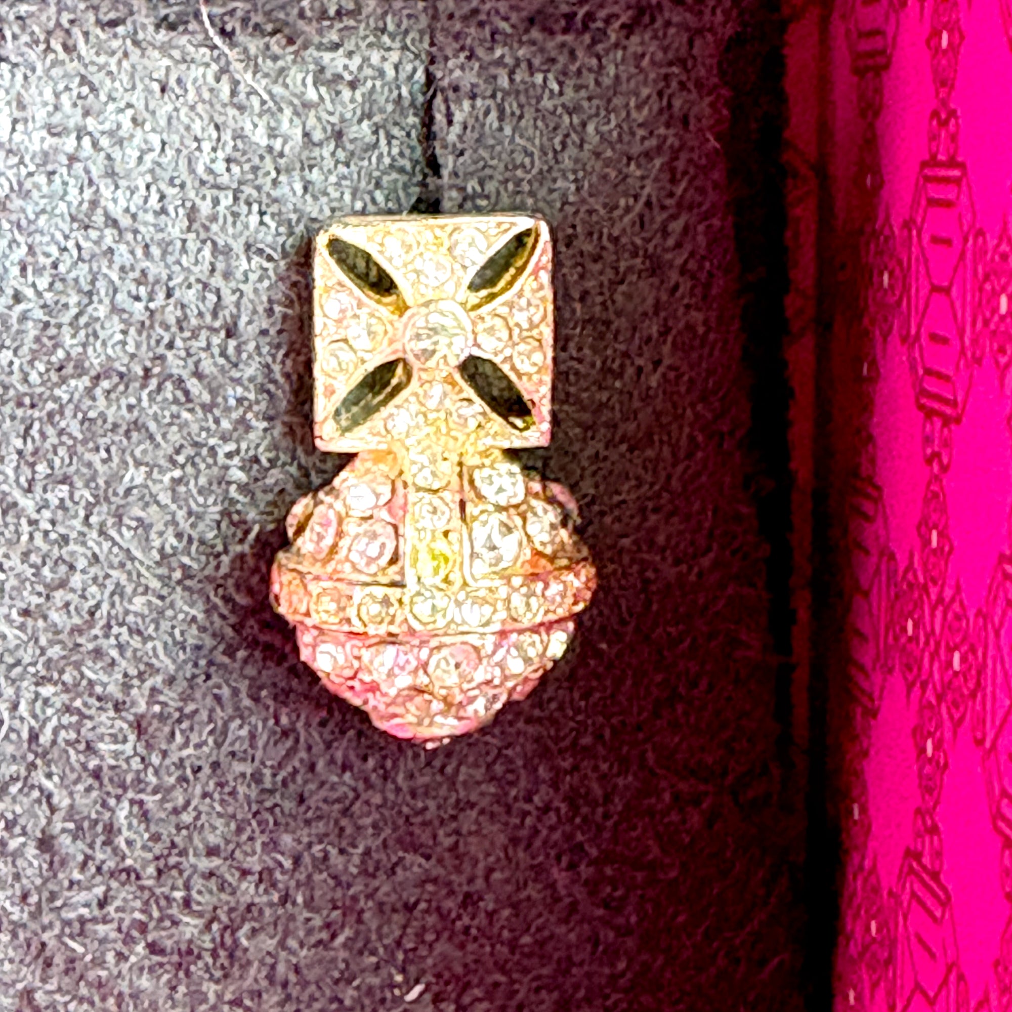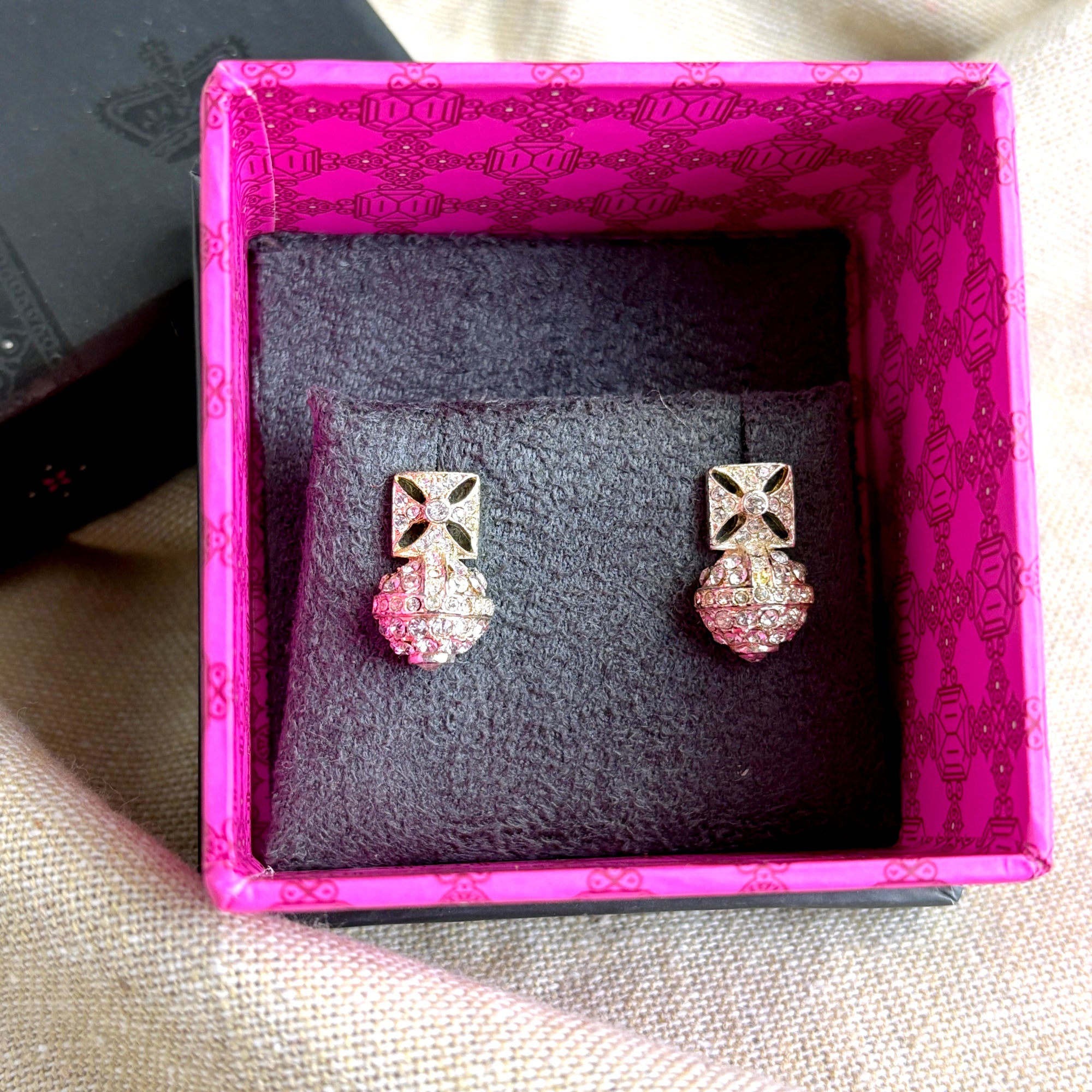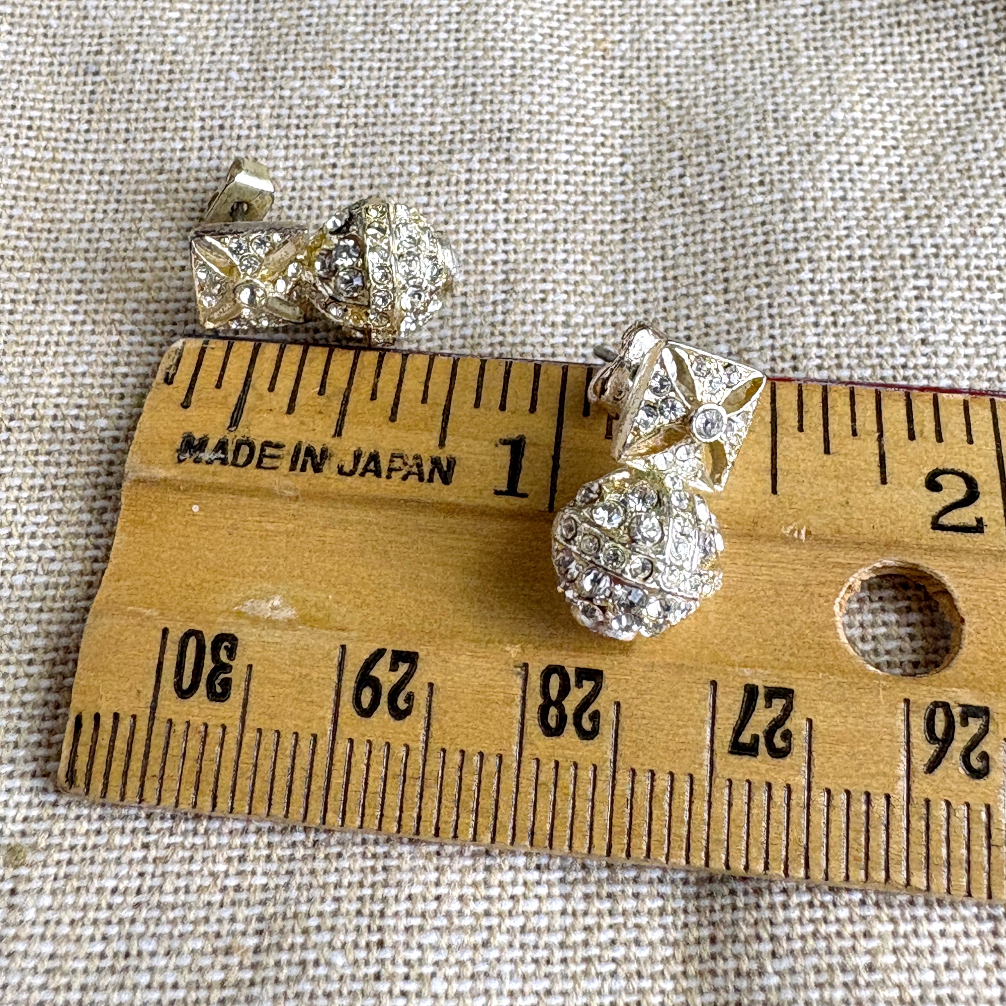 Pair of rhinestone studded mini orb earrings, sold at the Historic Royal Palaces in England and inspired by the orbs carried by the royals during coronation. Goldtone metal with clear crystals. A delight for you, because who deserves it more, or for your favorite king or queen.