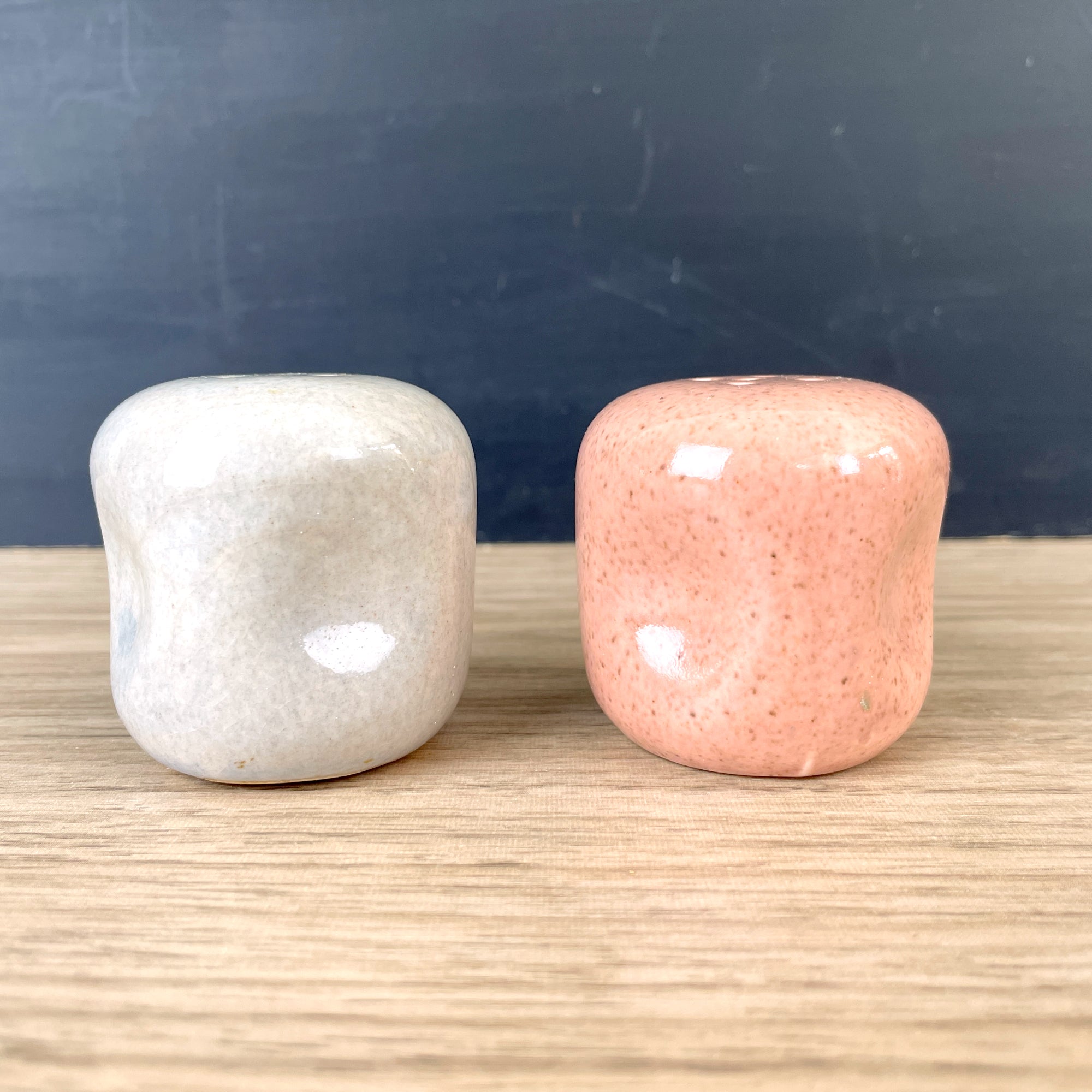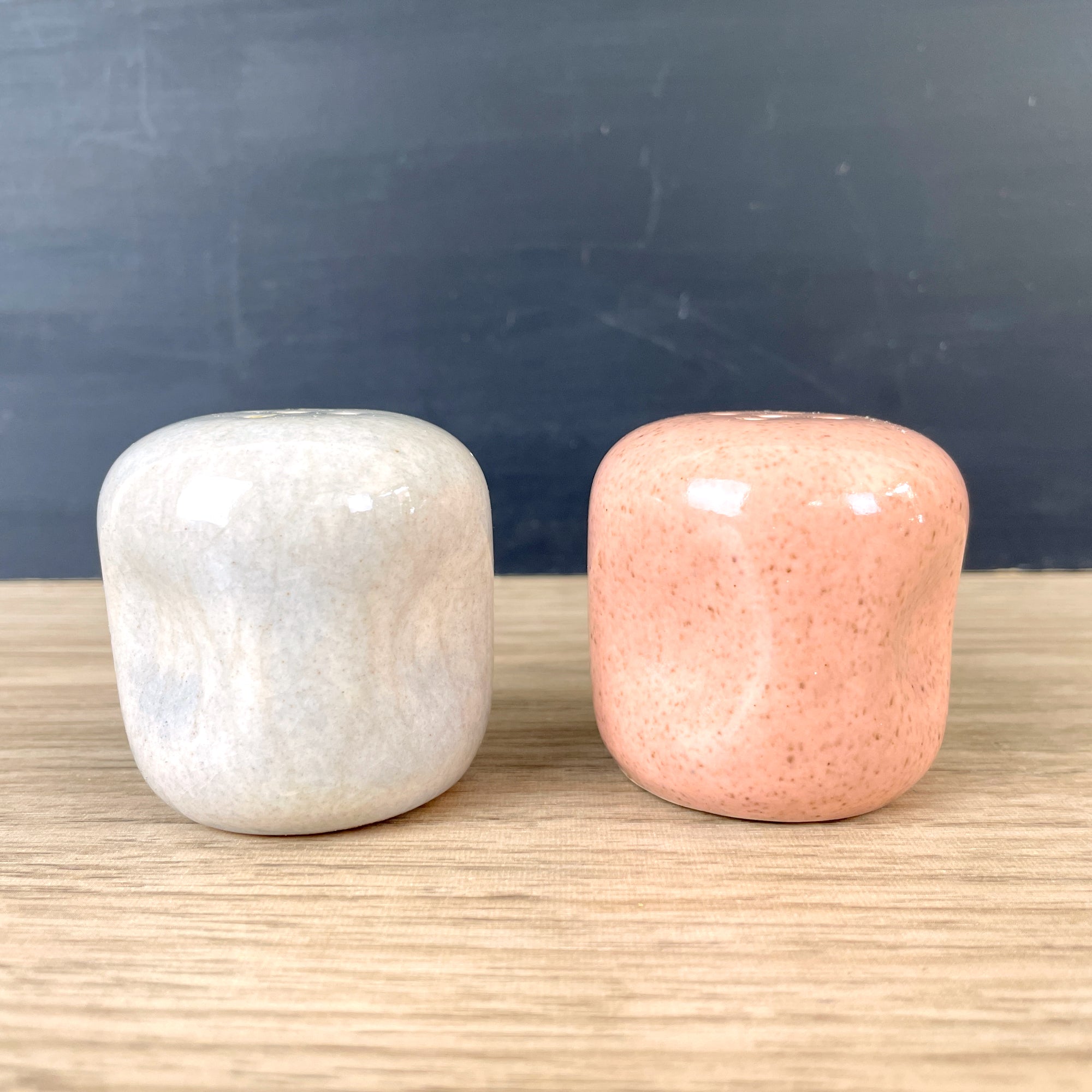 CONDITION  Gently used. Original cork stoppers. We honestly can't tell if the gray shaker has crazing or if it's the look of the glaze. Many lively discussions have been had. We have priced this like it's crazing.