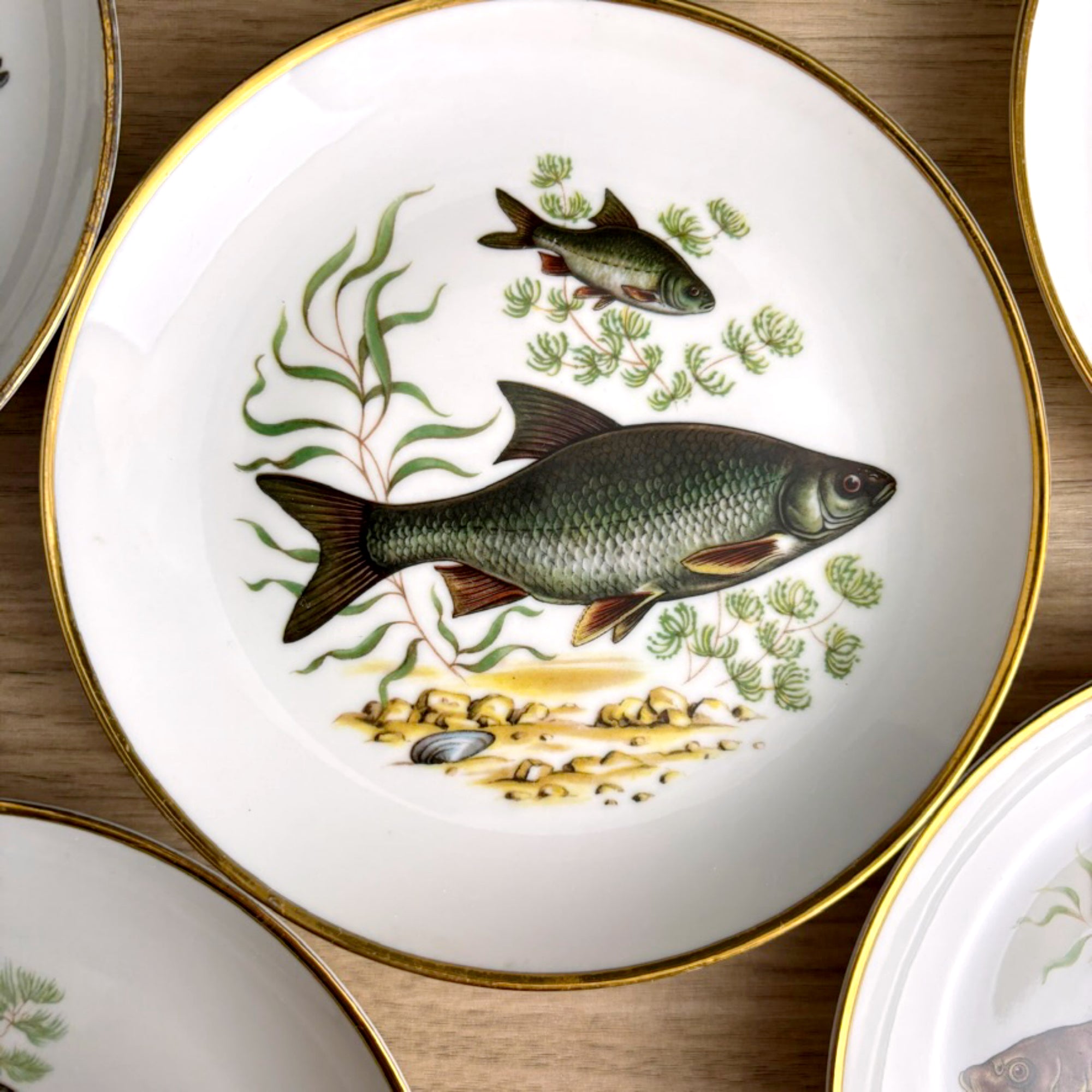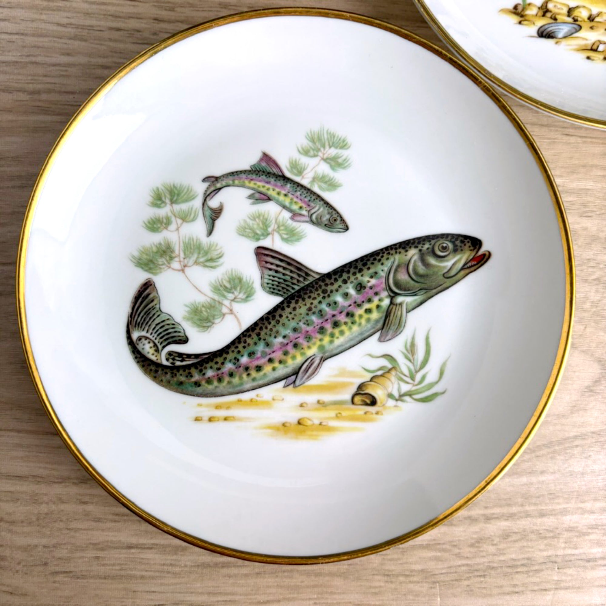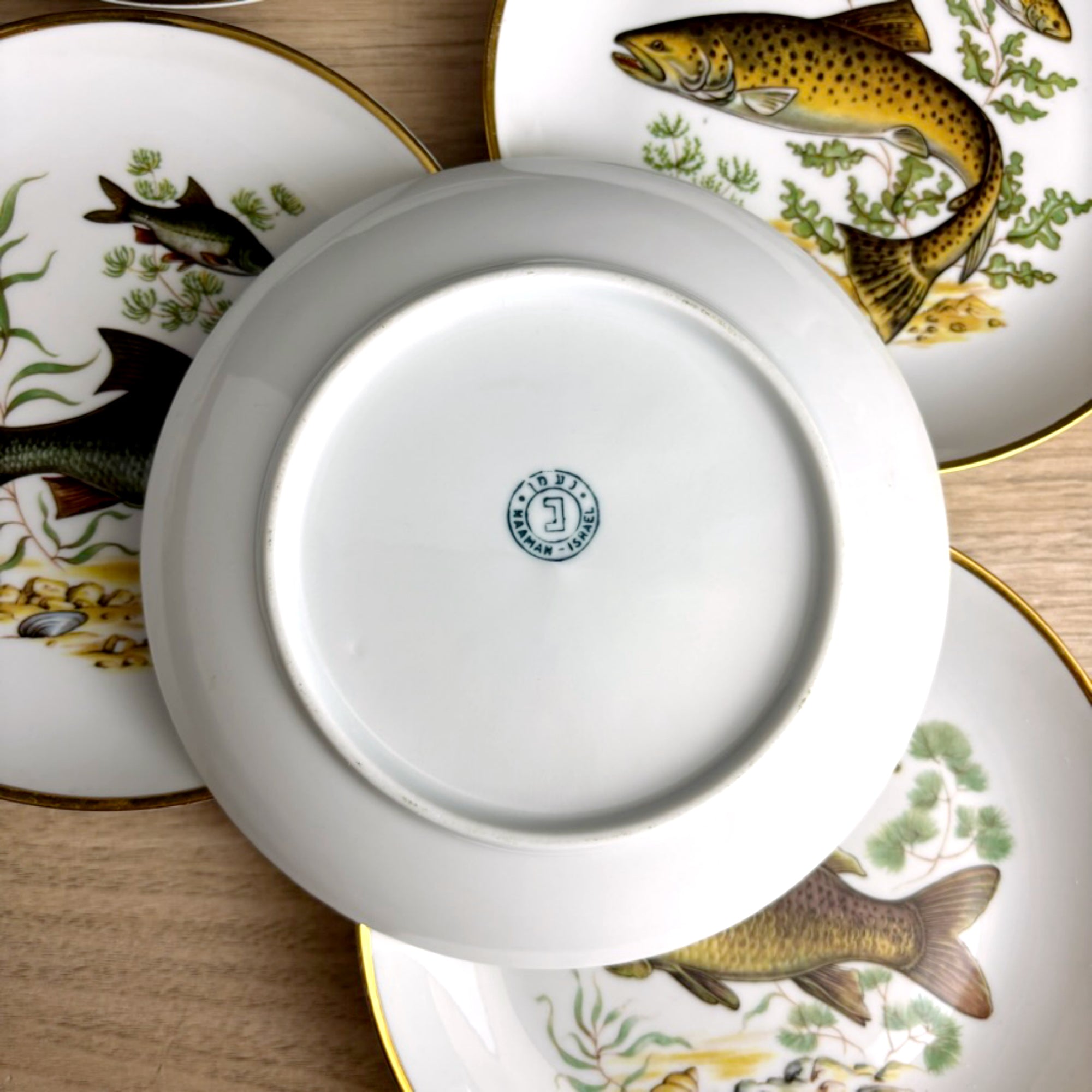 Vintage Naaman Israel fish plates – set of 6 porcelain dessert / bread plates – gilt edge