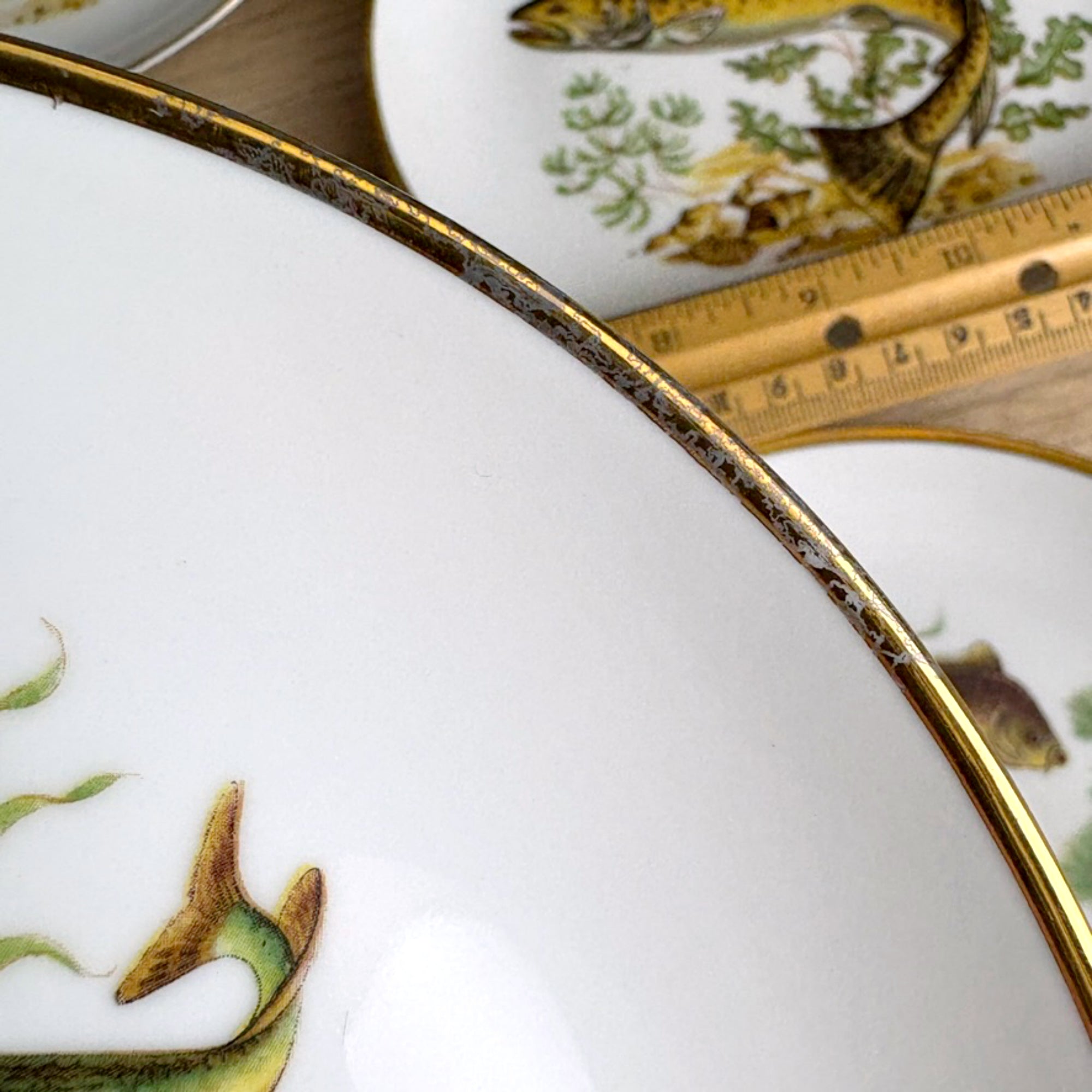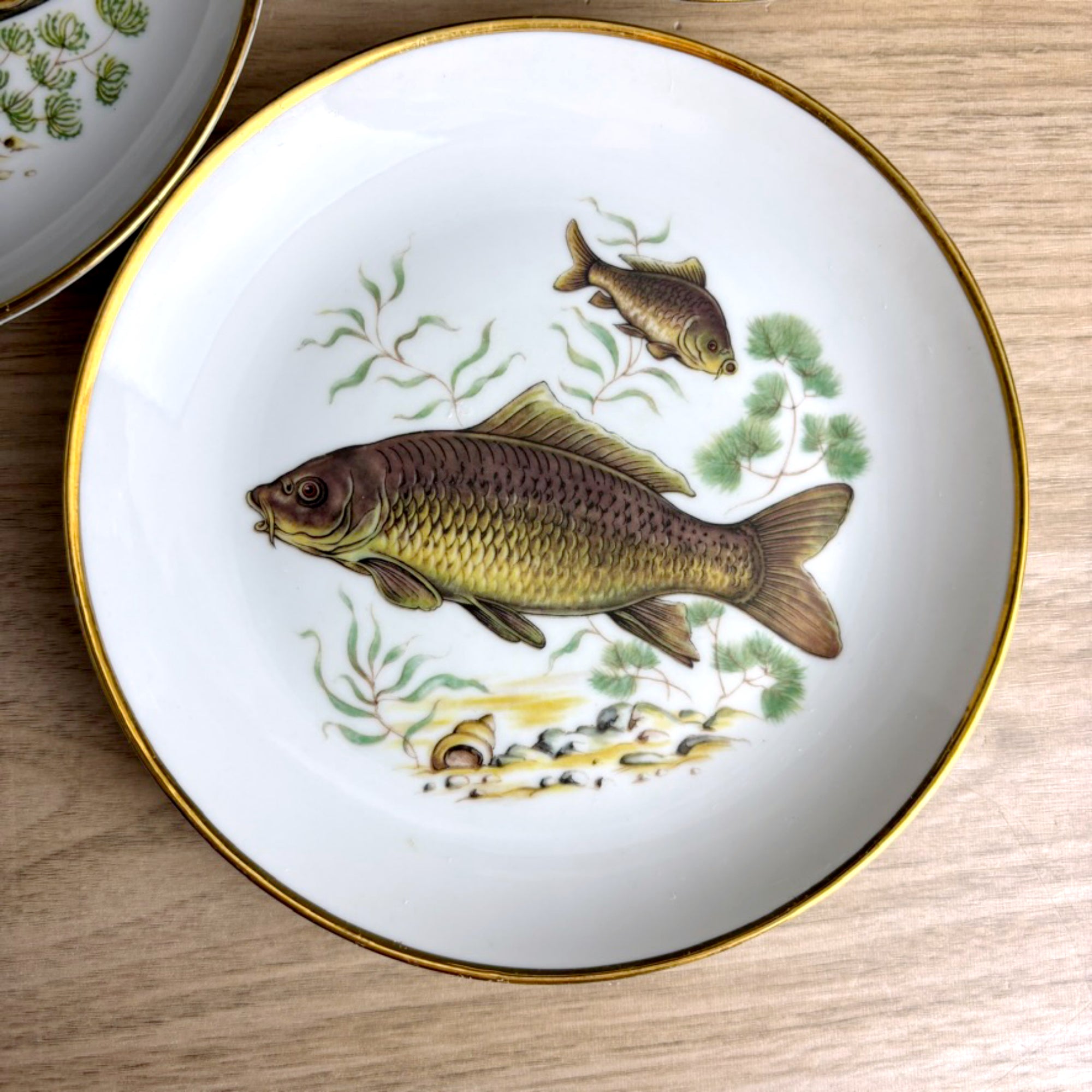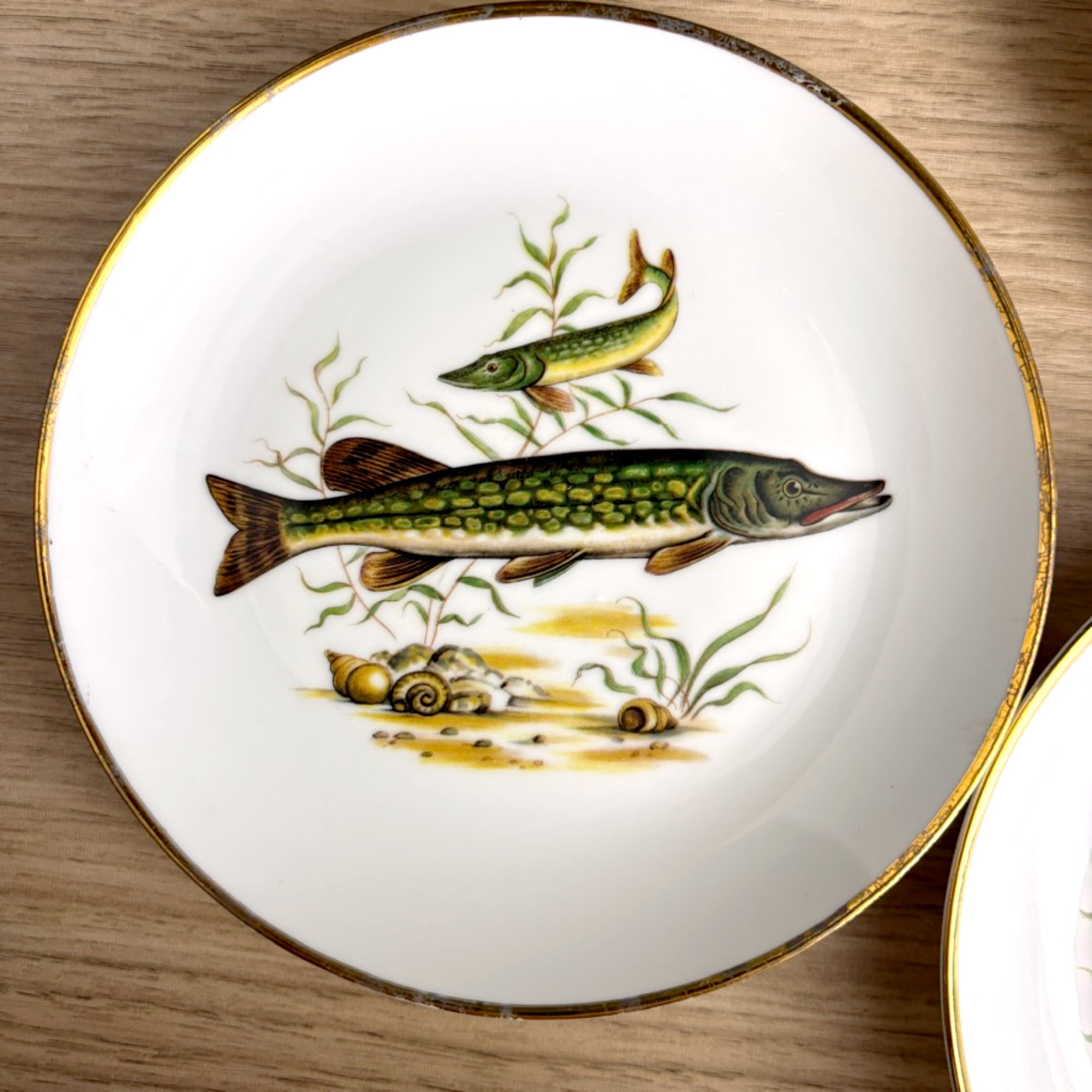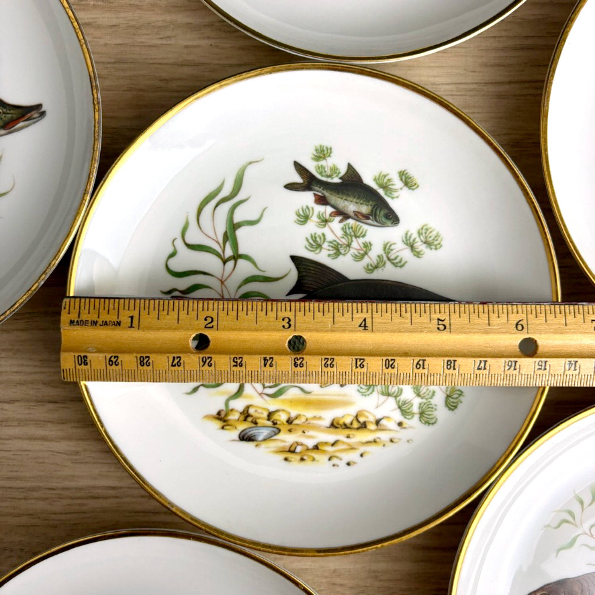 Vintage Naaman Israel fish plates – set of 6 porcelain dessert / bread plates – gilt edge