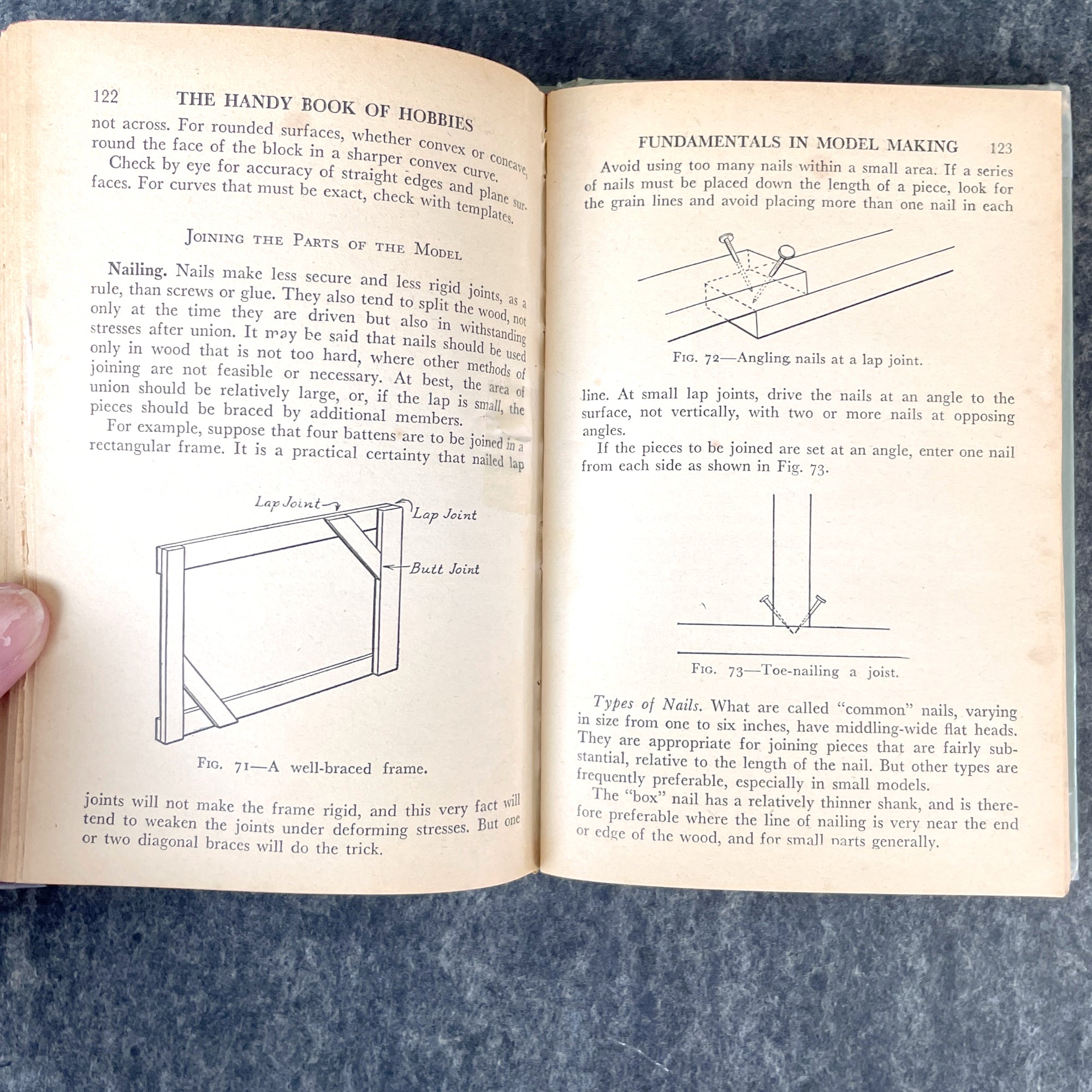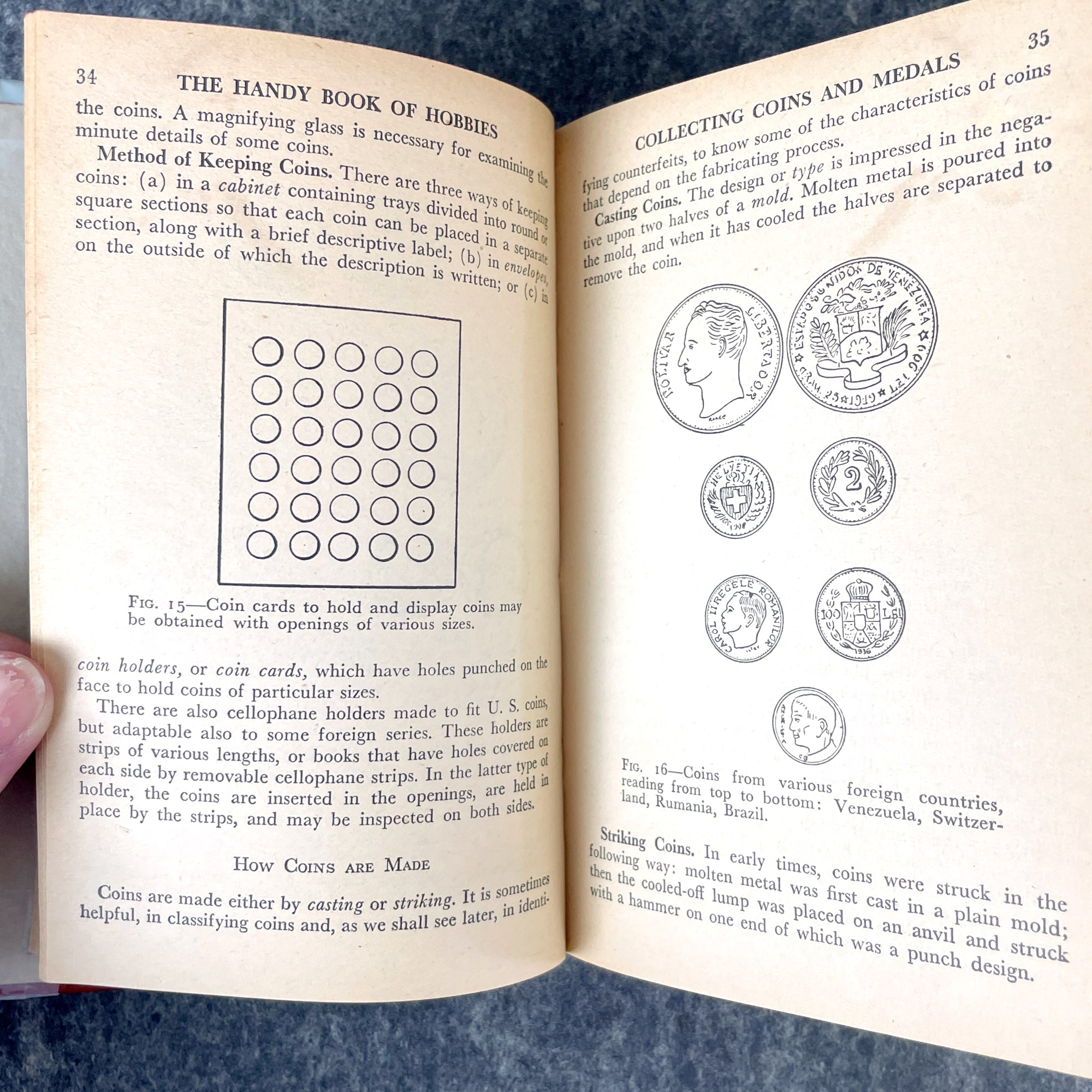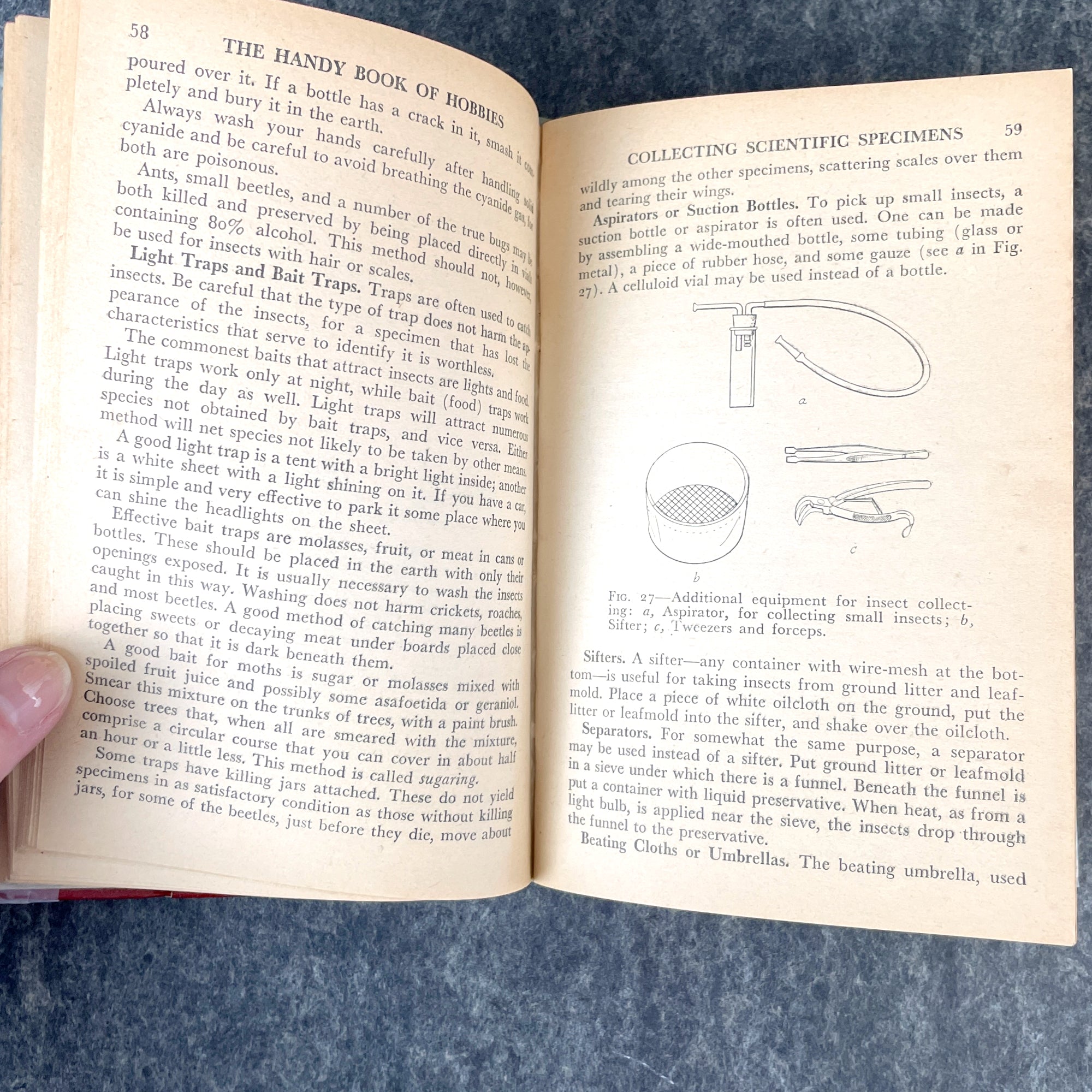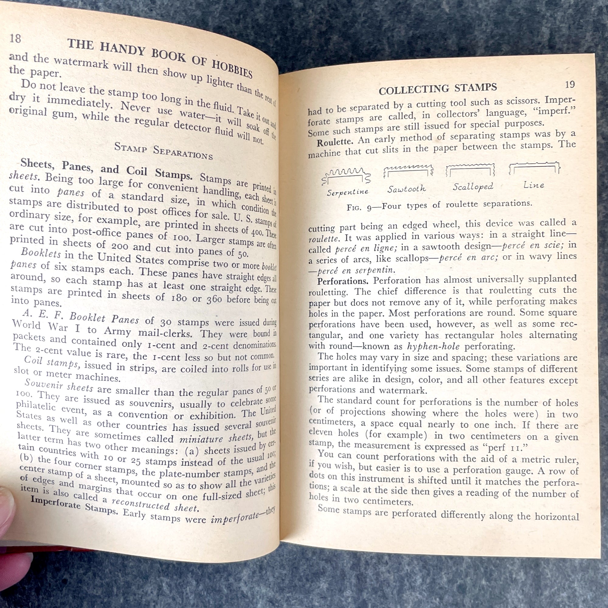 A book that fits in your pocket with all kinds of handy information on hobbies ranging from stamp collecting to conjuring to collecting various things. (See photos for table of contents.) Black and white line illustrations.
