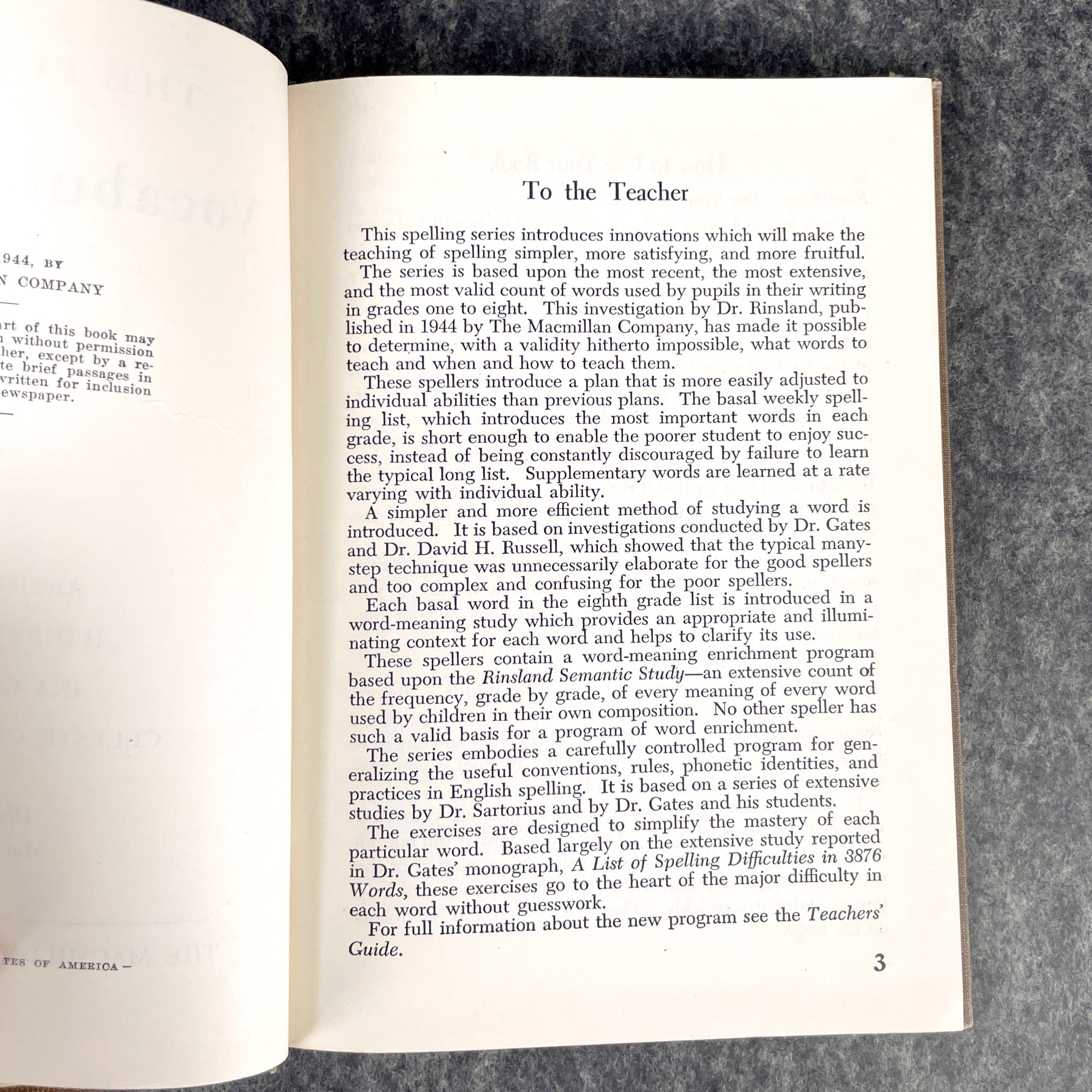 The Pupils' Own Vocabulary Speller Grade 8 - 1944 school book