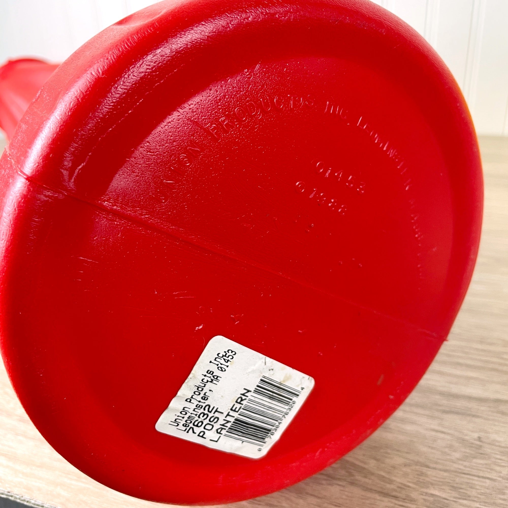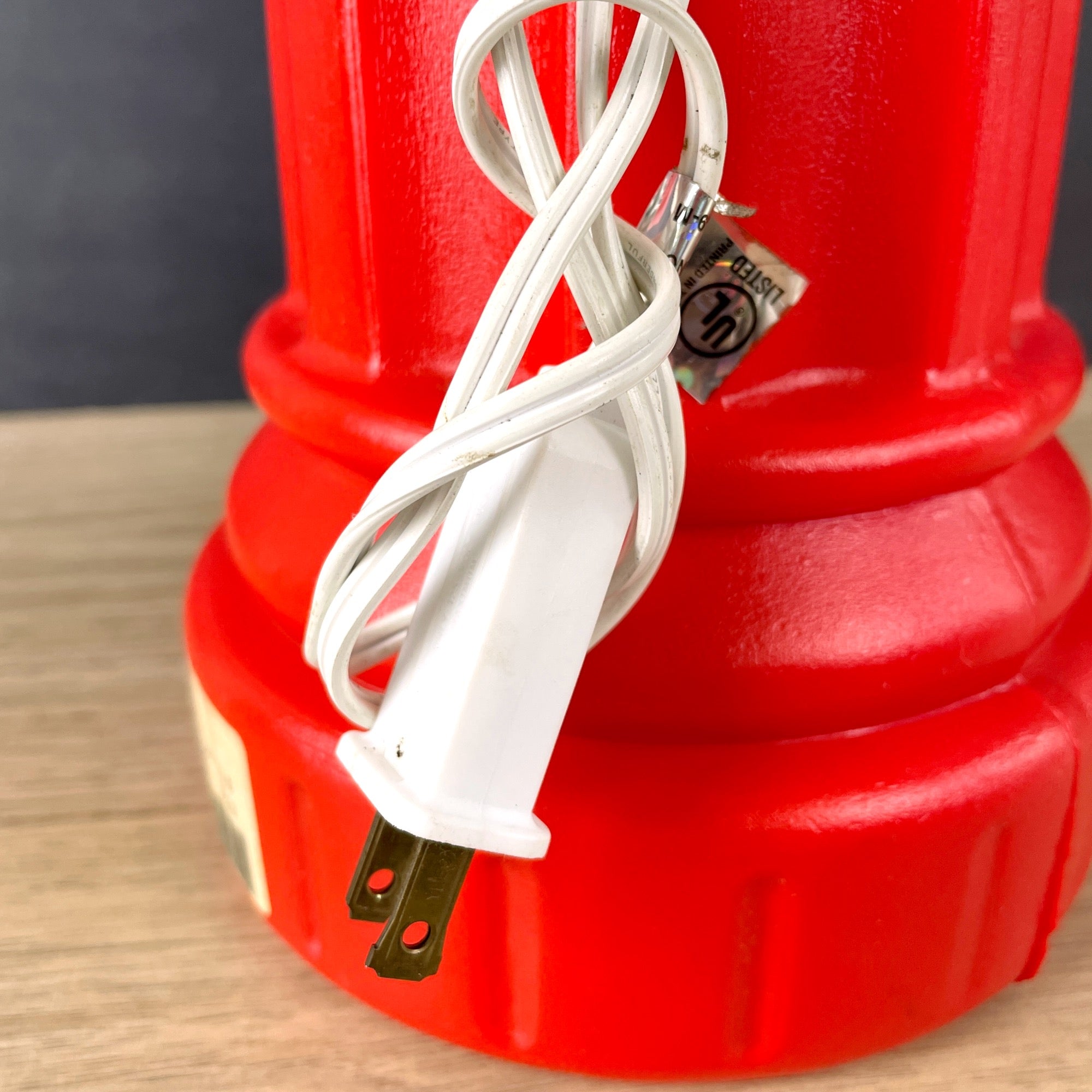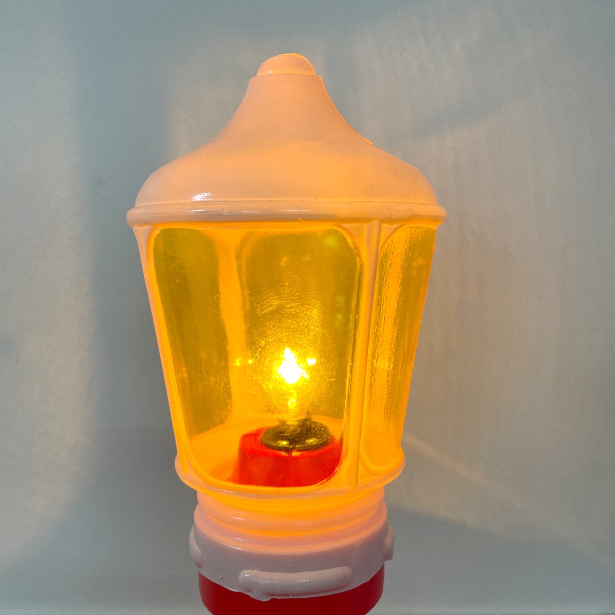 Vintage 1988 Union Products, Leominster, MA street lamp blow mold. White top with red column, yellow panels to show the light. Top unscrews to put in replacement bulbs. Plug is polarized and has a fuse, cord is nice and pliable.