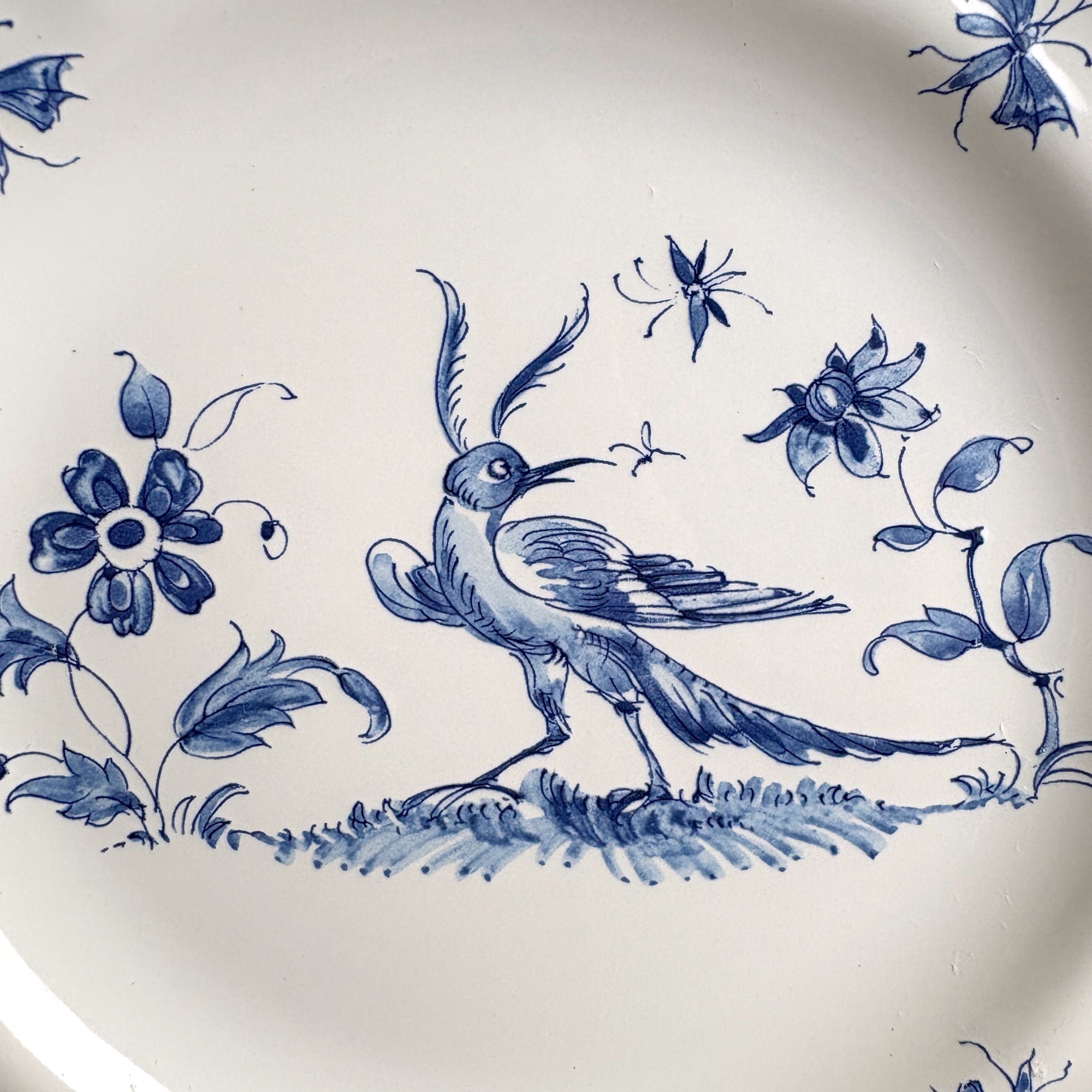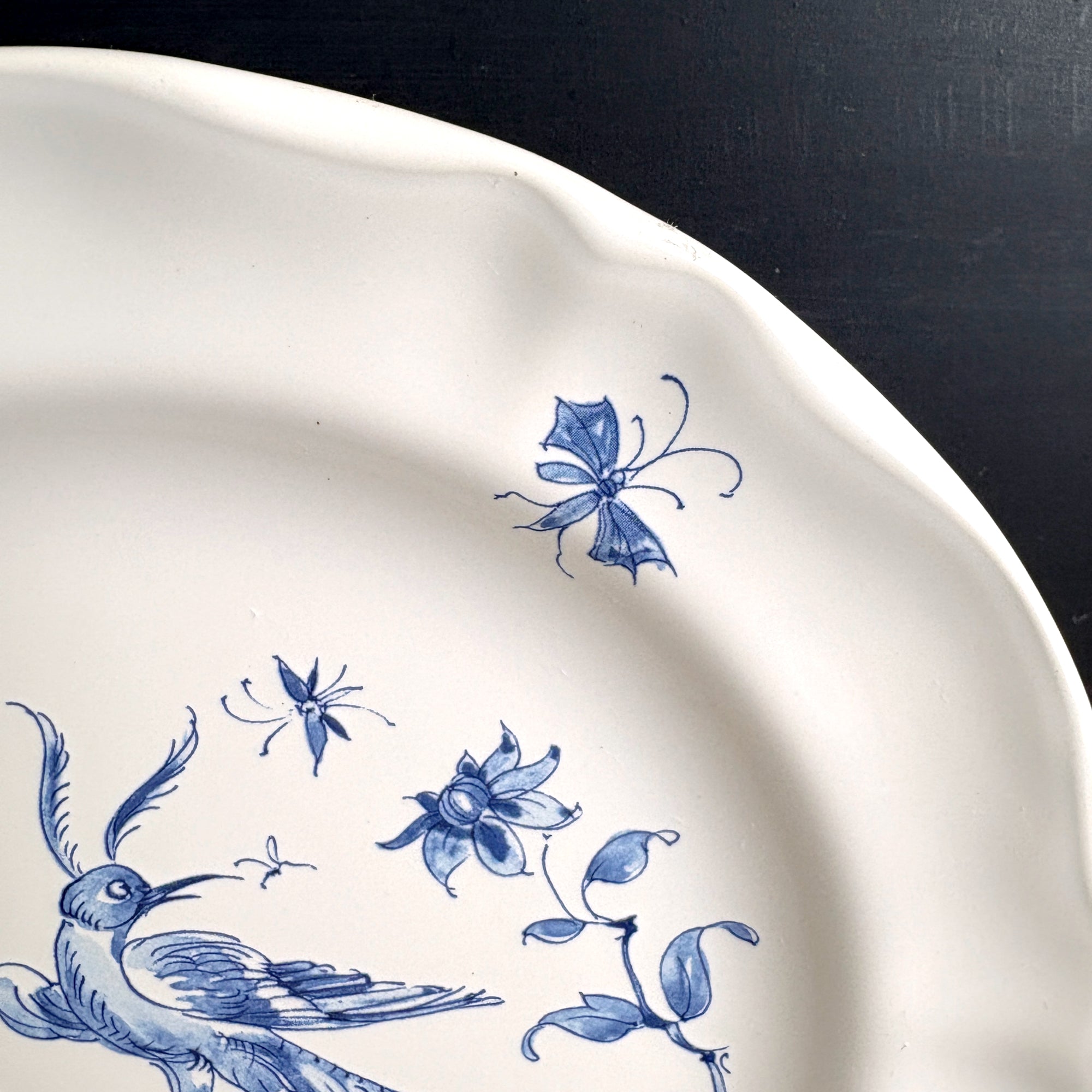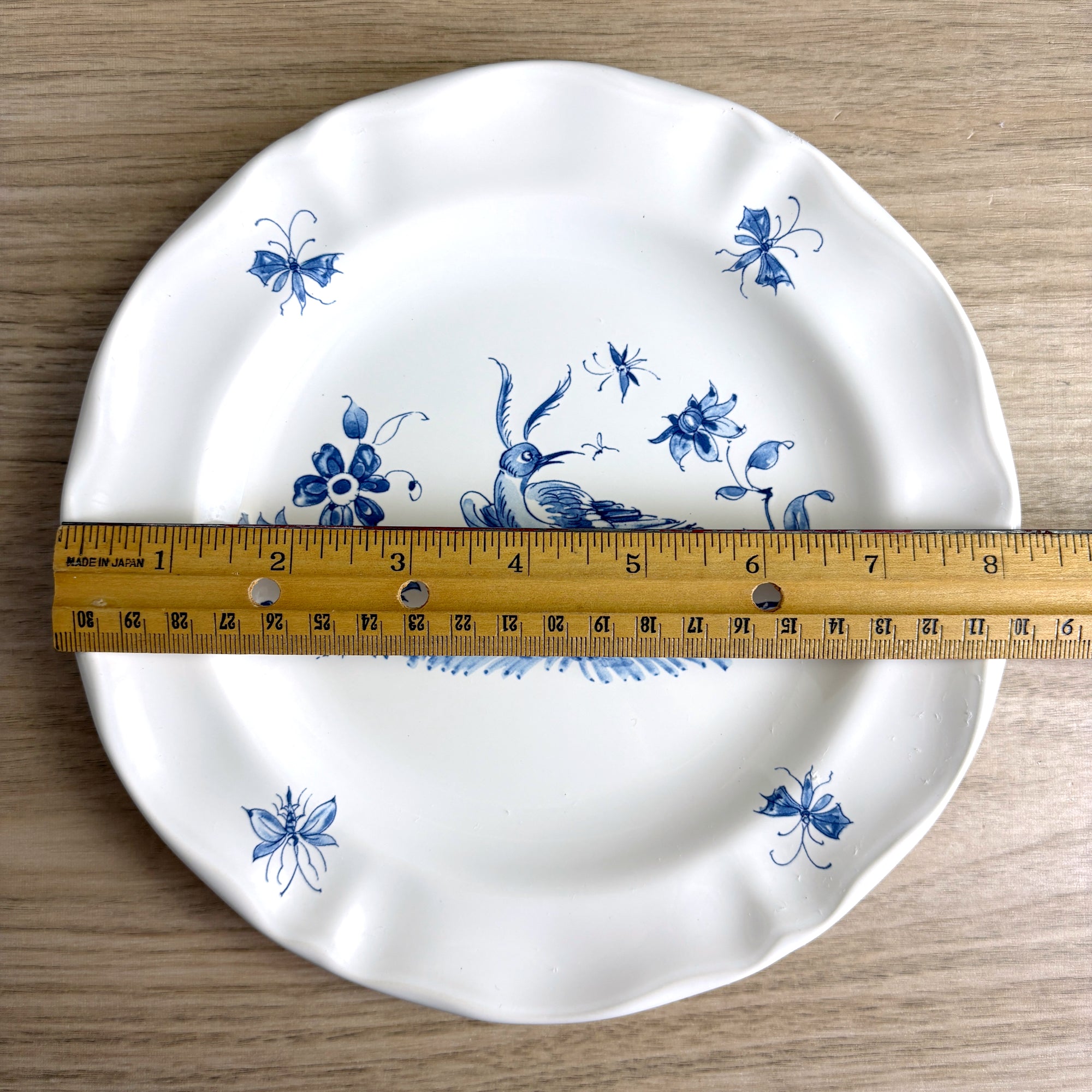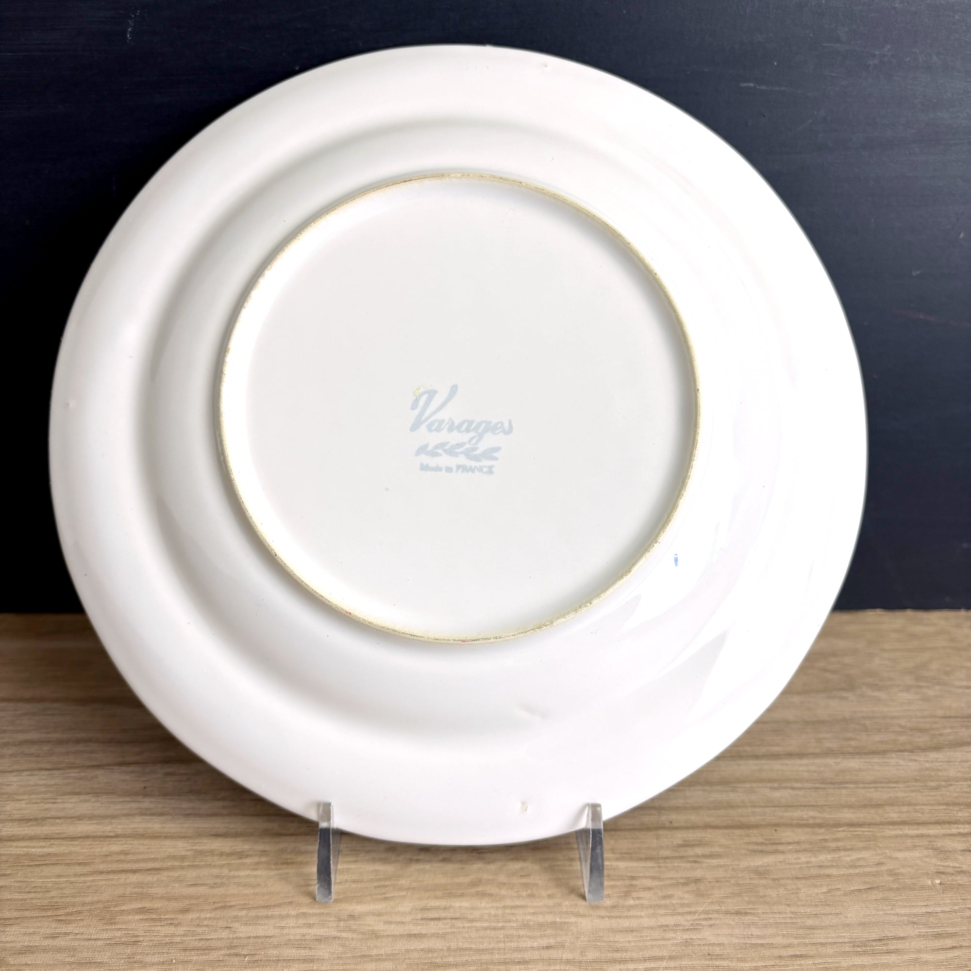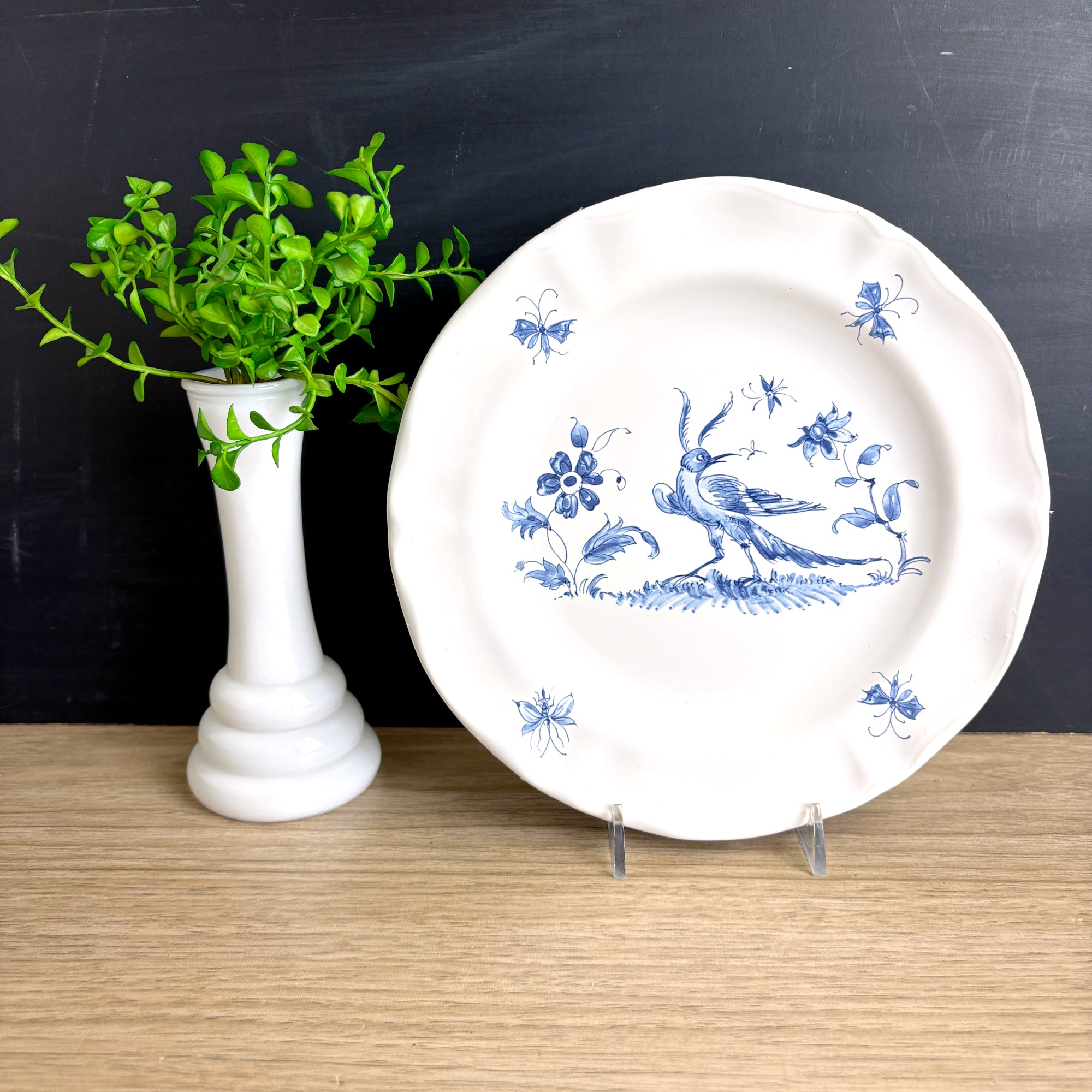 Varages France View Provence Blue salad plate with a bird, flowers and bugs. Made in France.