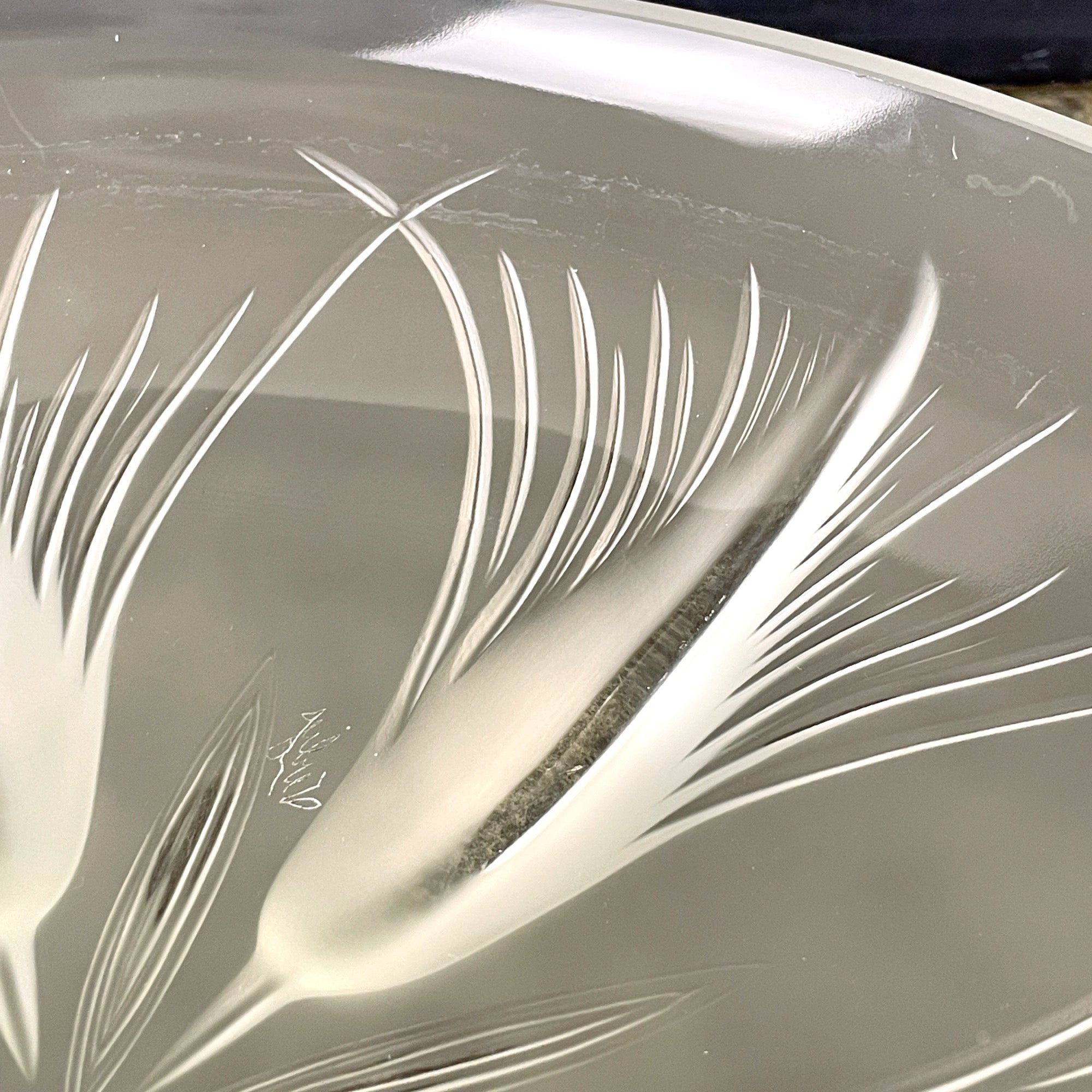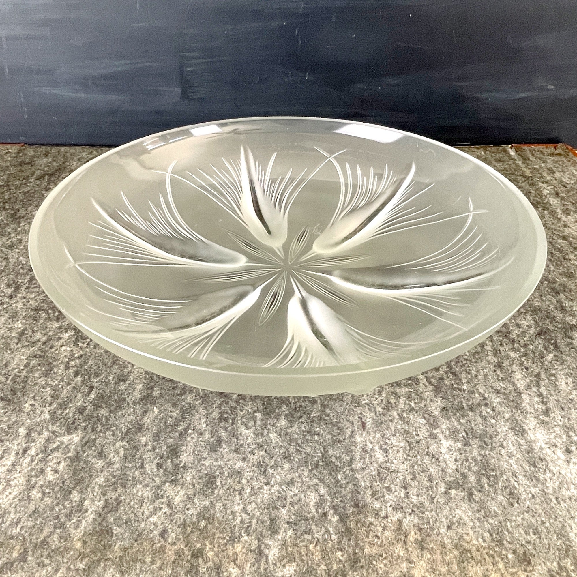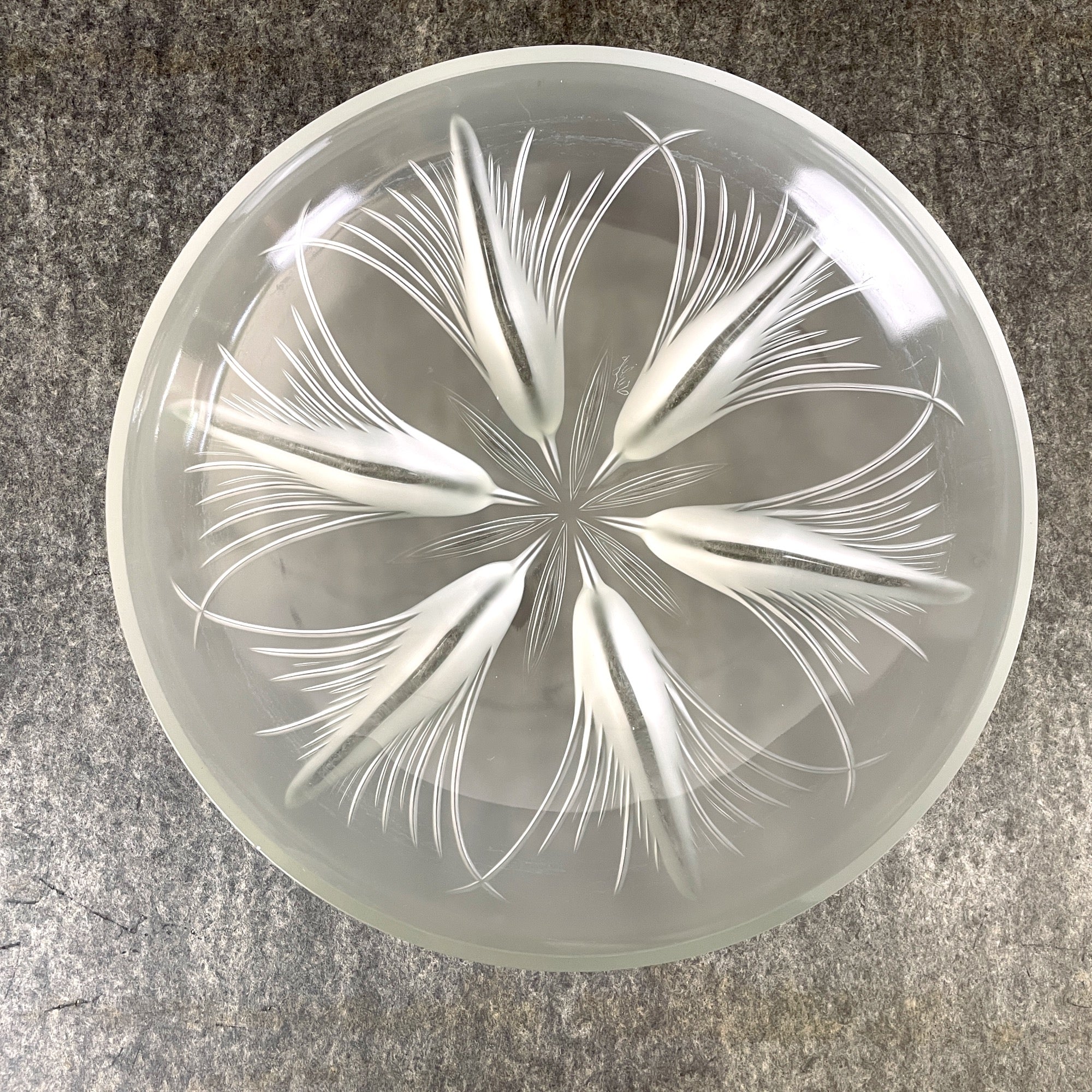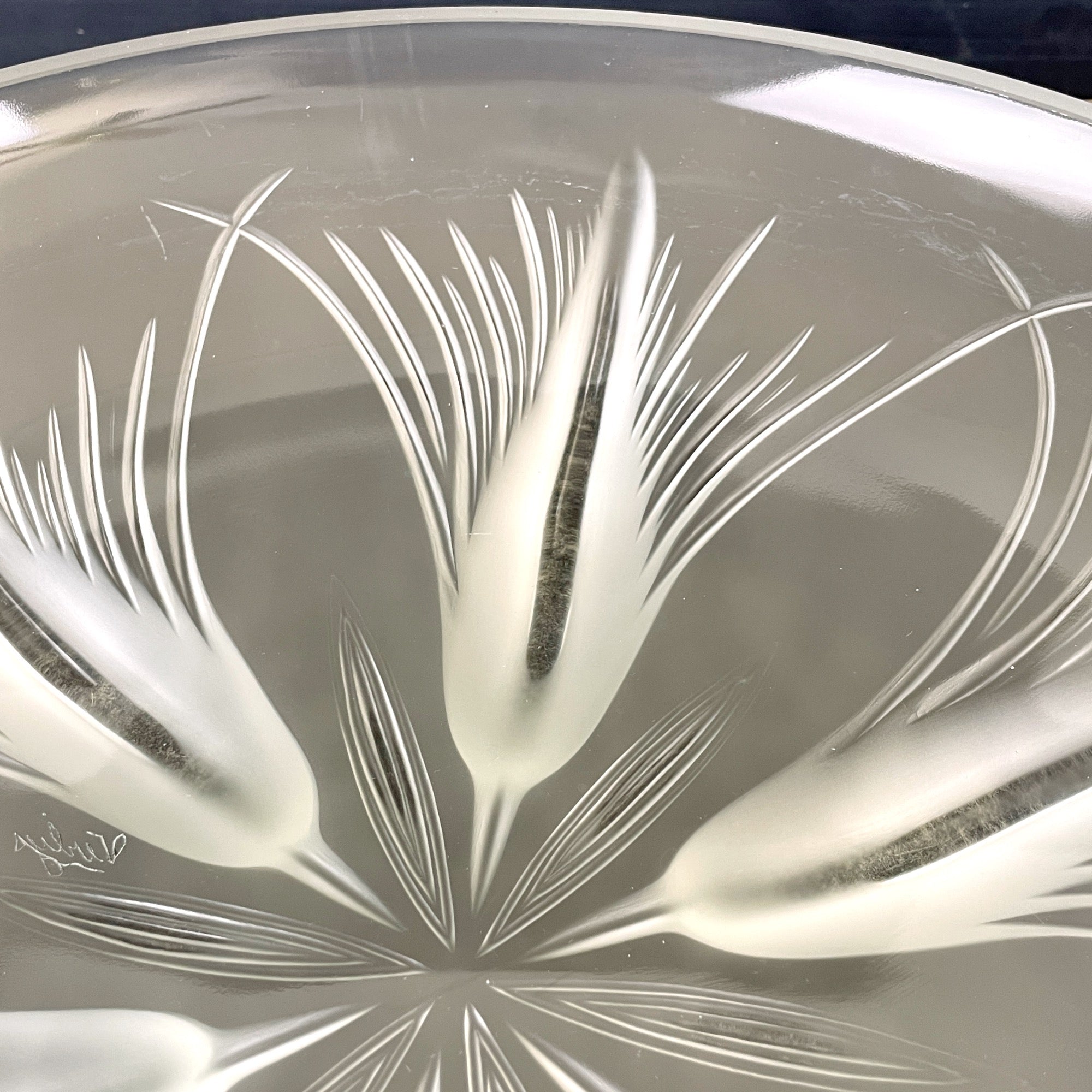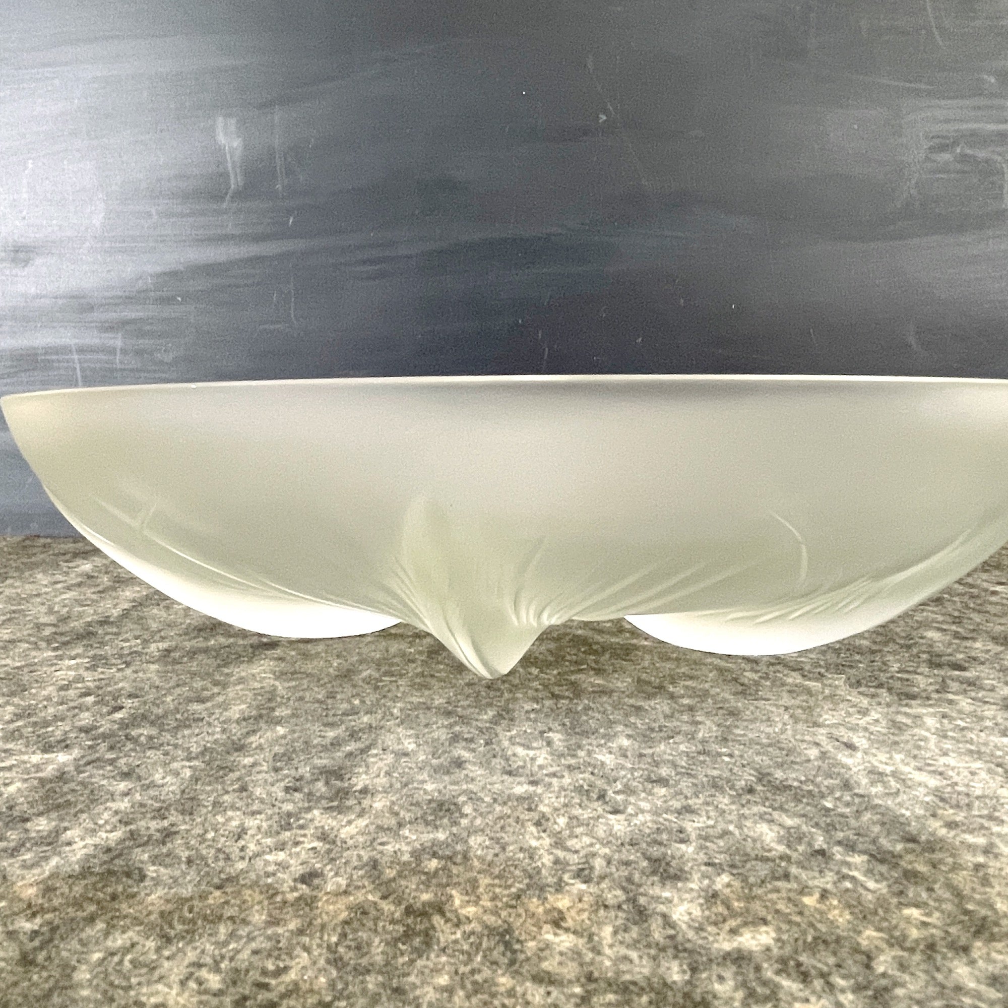 Vintage Verlys of America tassels glass bowl. Frosted mat glass with art deco styling depicting wheat. Made in Newark, Ohio in the 1930s. Molded glass bowl is smooth on the inside and has raised elements and matte frosted glass on the outside. Polished glass rim.