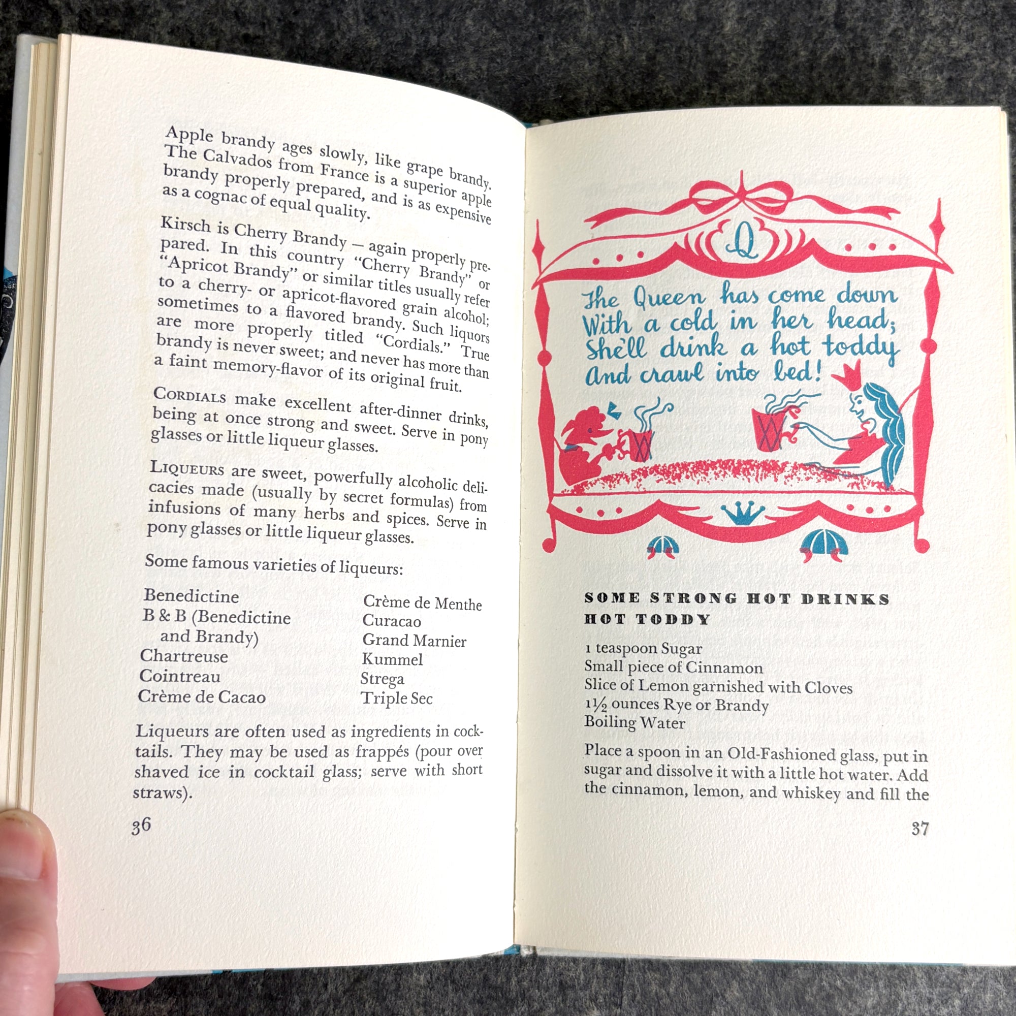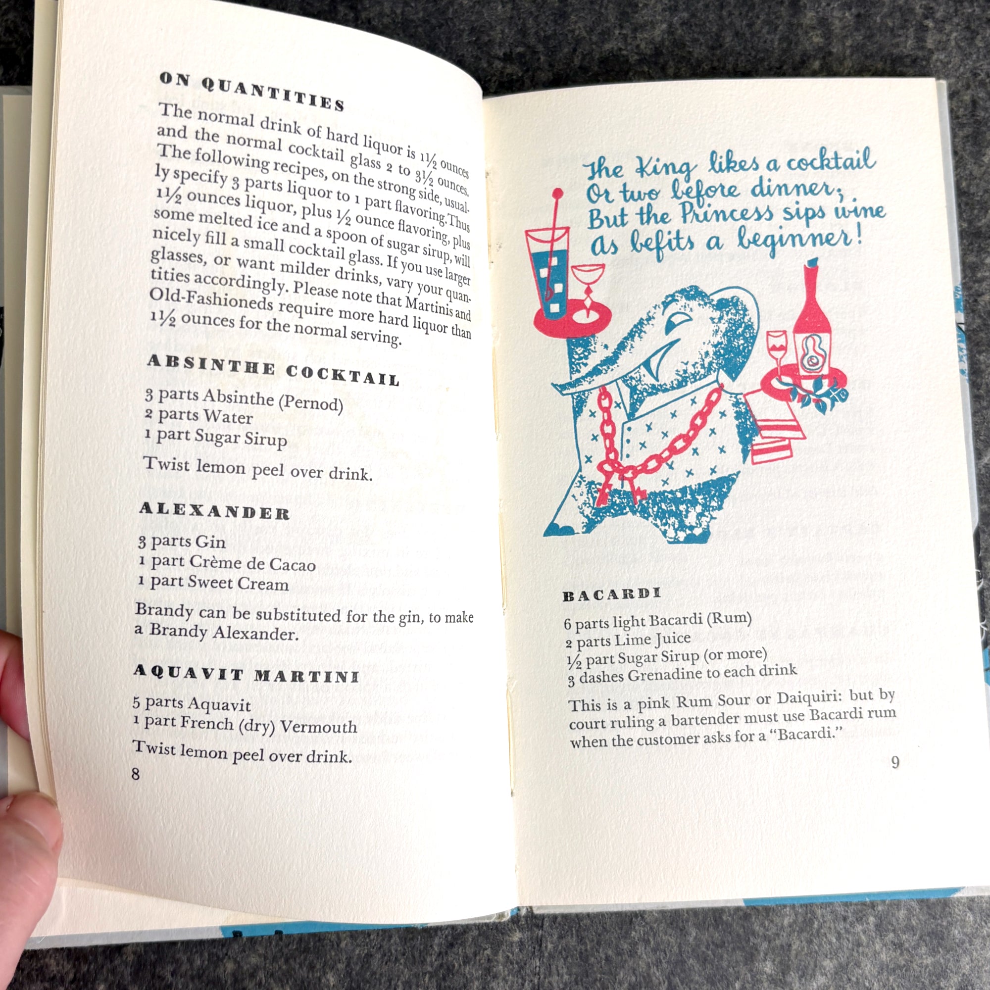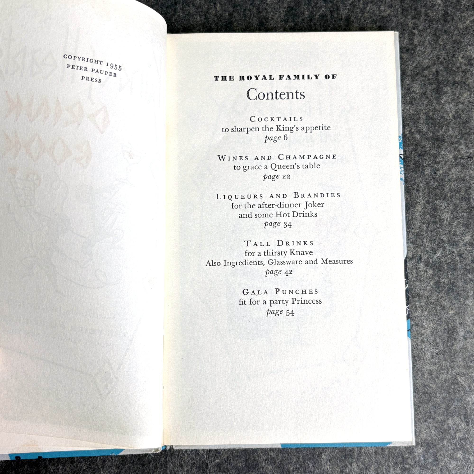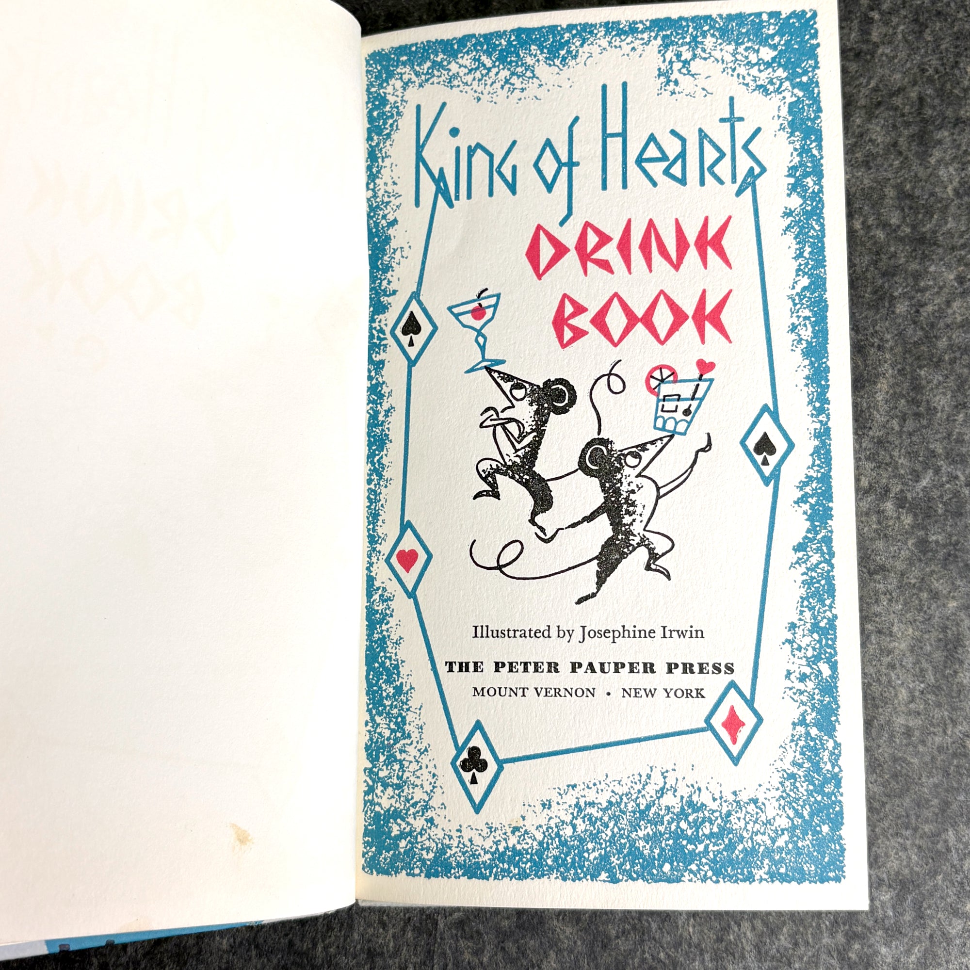 Charming vintage King of Hearts Drink Book, published in 1955 by Peter Pauper Press. This classic mid-century bar book features a delightful collection of cocktail and drink recipes, all presented with the whimsical illustrations and clever layout Peter Pauper books are known for.