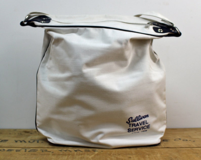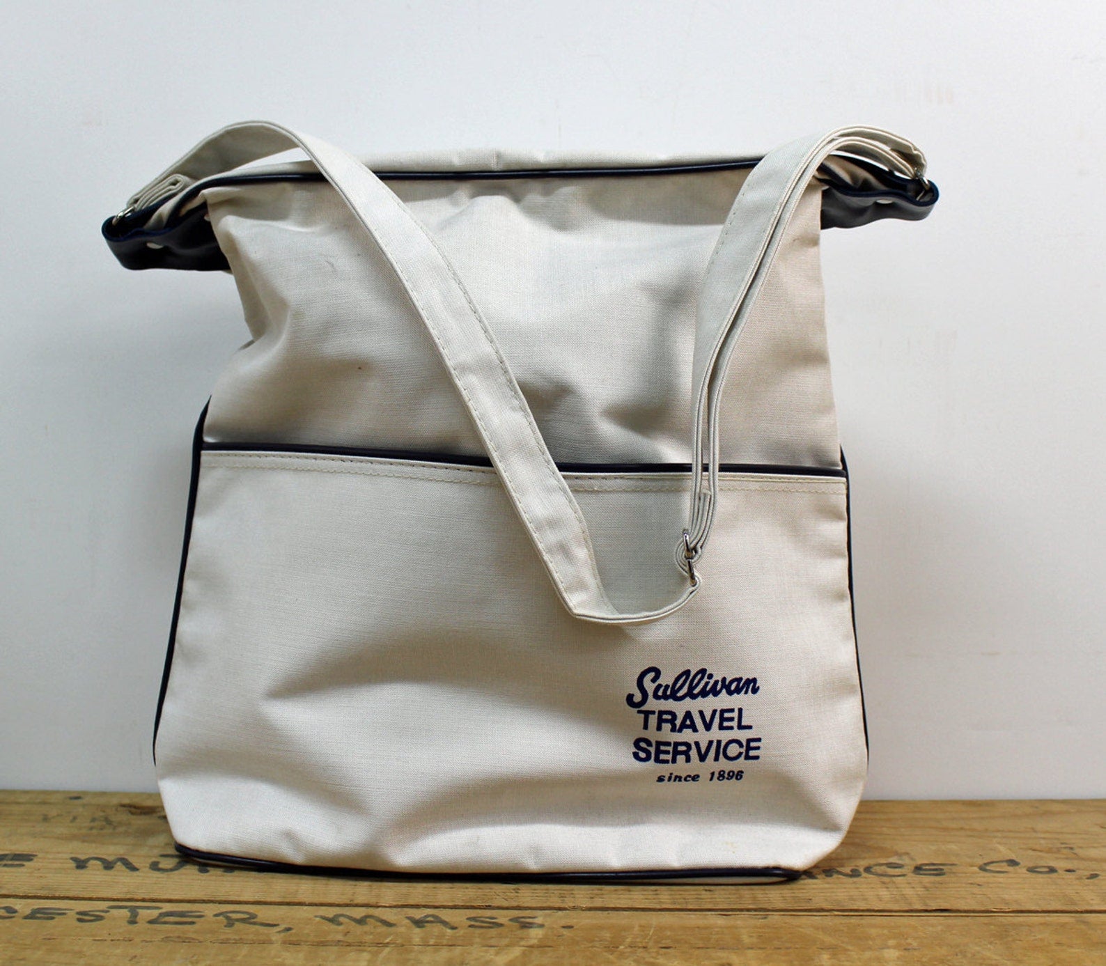 Vintage 1970s white travel bag - Sullivan Travel Service - white fabric tote