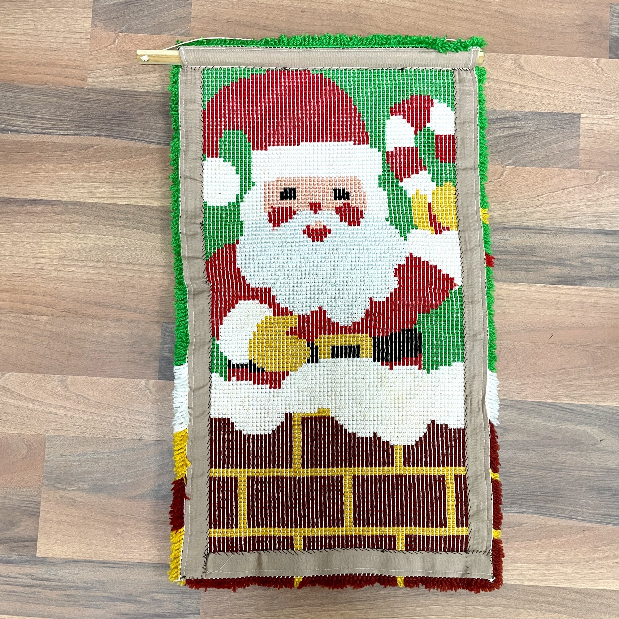 Santa latch hook wall hanging - 1980s vintage