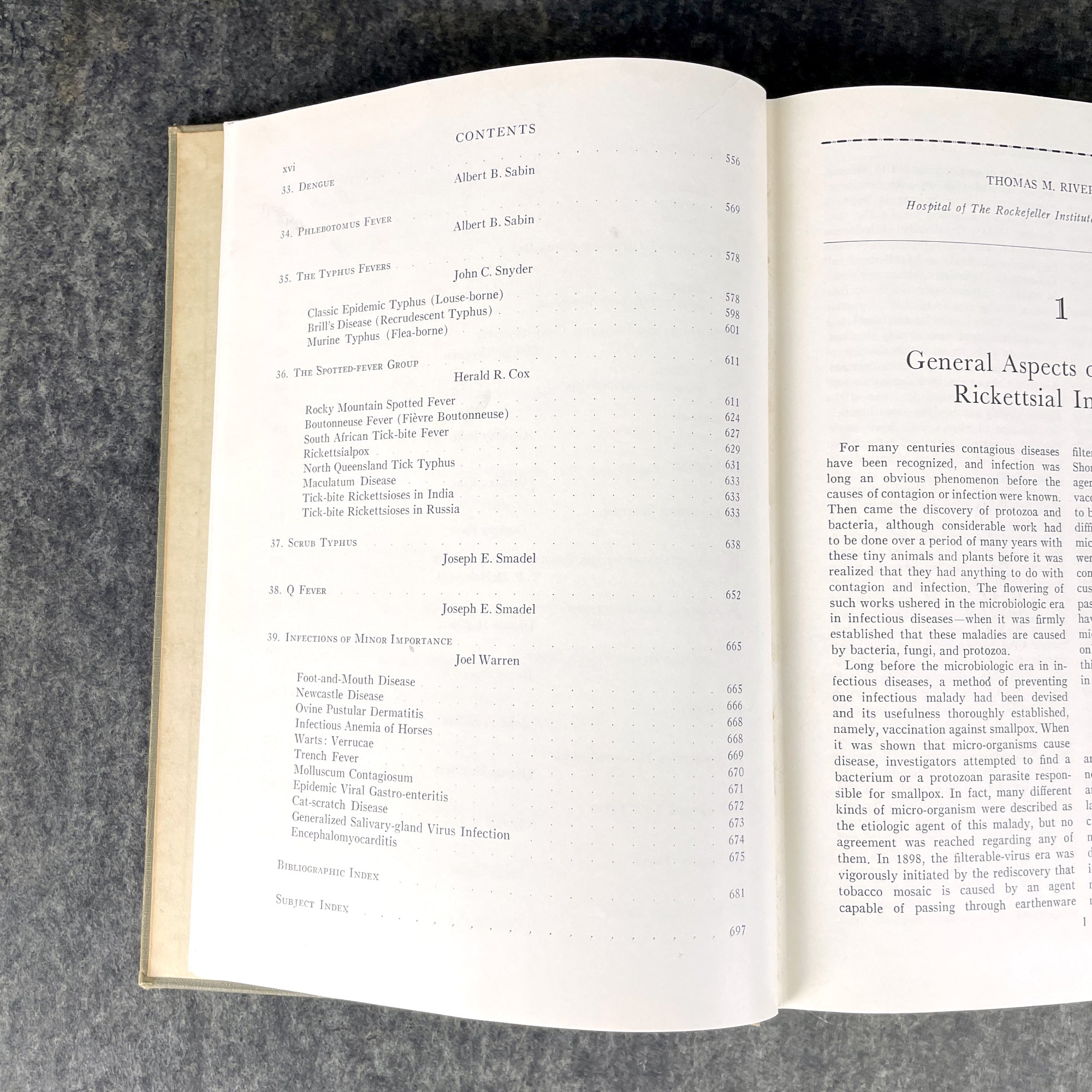 "Viral and Rickettsial Infections of Man" Edited by Thomas M. Rivers, MD, Director of the Hospital The Rockefeller Institute for Medical Research. Hardcover.