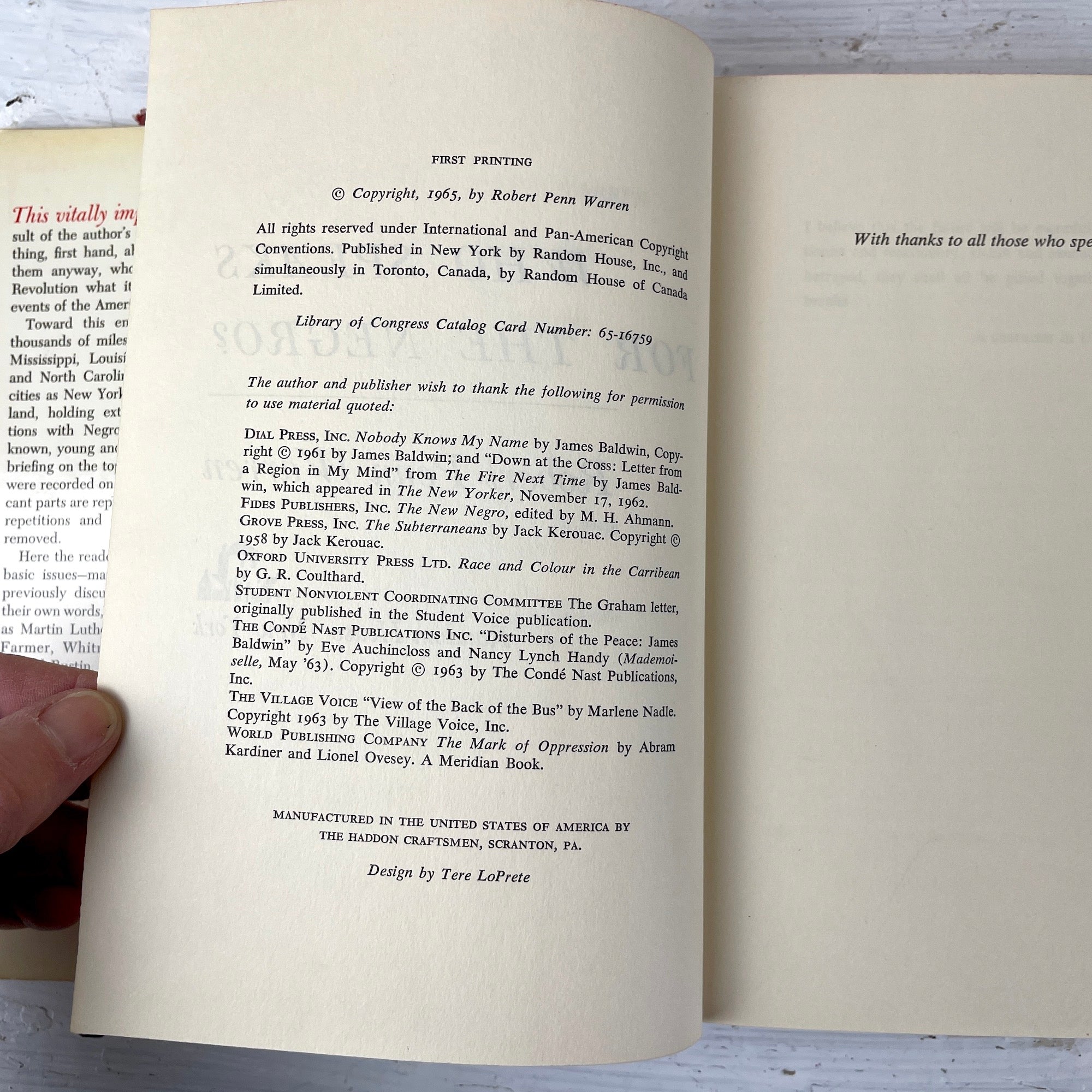 Who Speaks for the Negro? - Robert Penn Warren - 1965 first printing