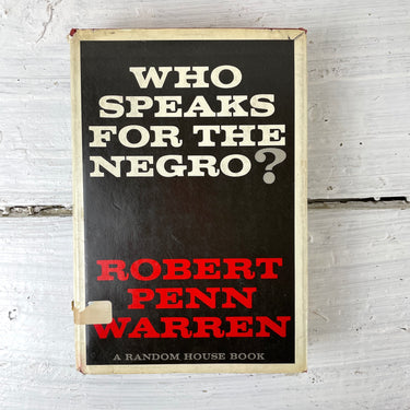 "Who Speaks for the Negro?" by Robert Penn Warren. 1965 first printing, stated. Random House. Hardcover with dust jacket and deckle edged pages. 454 pages. Ex-library with bookplate on flyleaf and sticker on spine of the dust jacket.