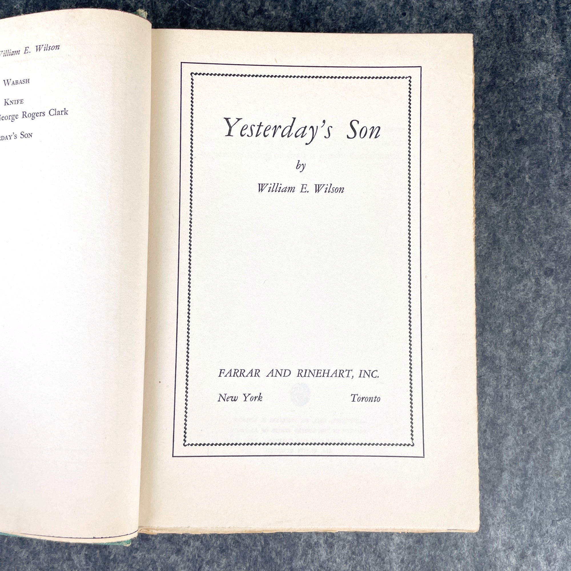 Yesterday's Son - William E Wilson - 1st Edition 1941 novel