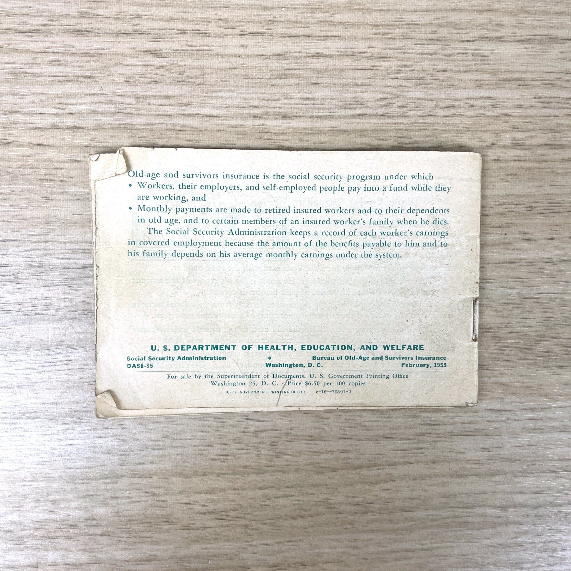 "Your Social Security: Old-Age and Survivors Insurance Under the Social Security Law" from February, 1955. From the U.S. Department of Health, Education, and Welfare. Printed by the U.S. Government Printing Office. #OASI-35.