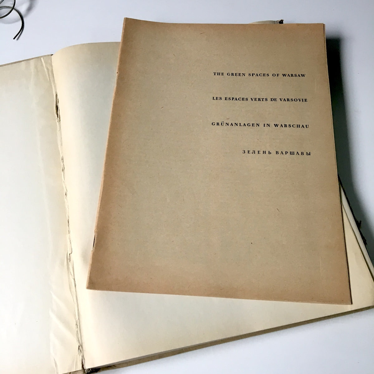 Zielen Warszawy (Green Spaces of Warsaw), photographs by Henryk Lisowski. 1956 hardcover. Published by Sport Turystyka. With captions insert with translations in English, French, Polish and Cyrillic (I think).