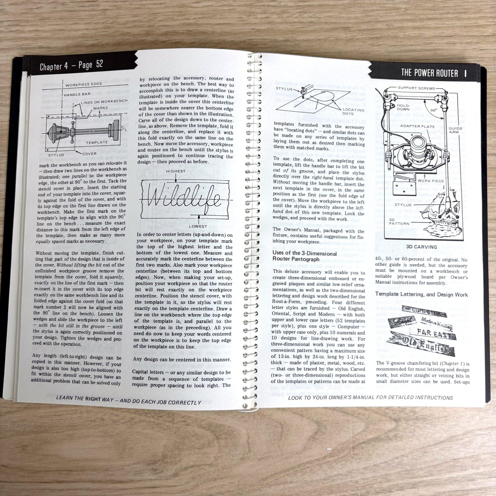 A handy spiral bound guide for maximizing your tools, choosing the right blades, bits, templates, etc., learning professional techniques at home and DIY woodworking projects and home repairs.