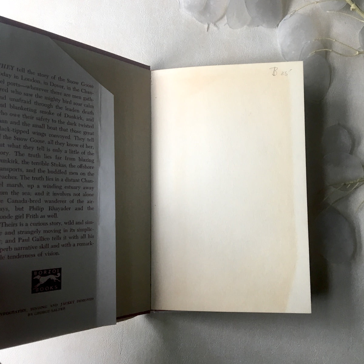 "The Snow Goose" by Paul Gallico. Reprinted 26 times, reset and reprinted from new plates, Sept. 1963. Hardcover with dust jacket. Alfred A. Knopf.