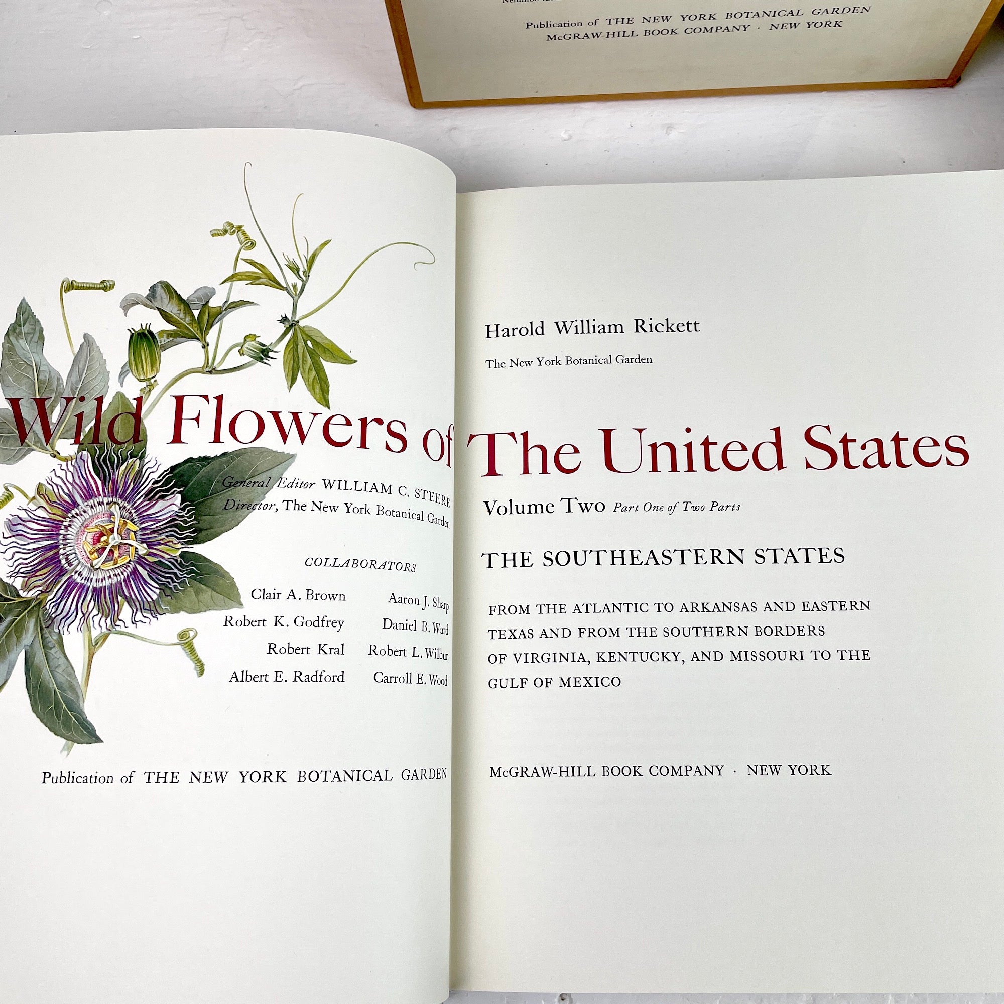 "Wild Flowers of The United States , Vol 2. The Southeast States" by Harold William Rickett. Slipcase hardcover set of two books with luxe heavy paper stock. Vellum dust jackets. Publication of the New York Botanical Garden. McGraw Hill. Stated first edition.