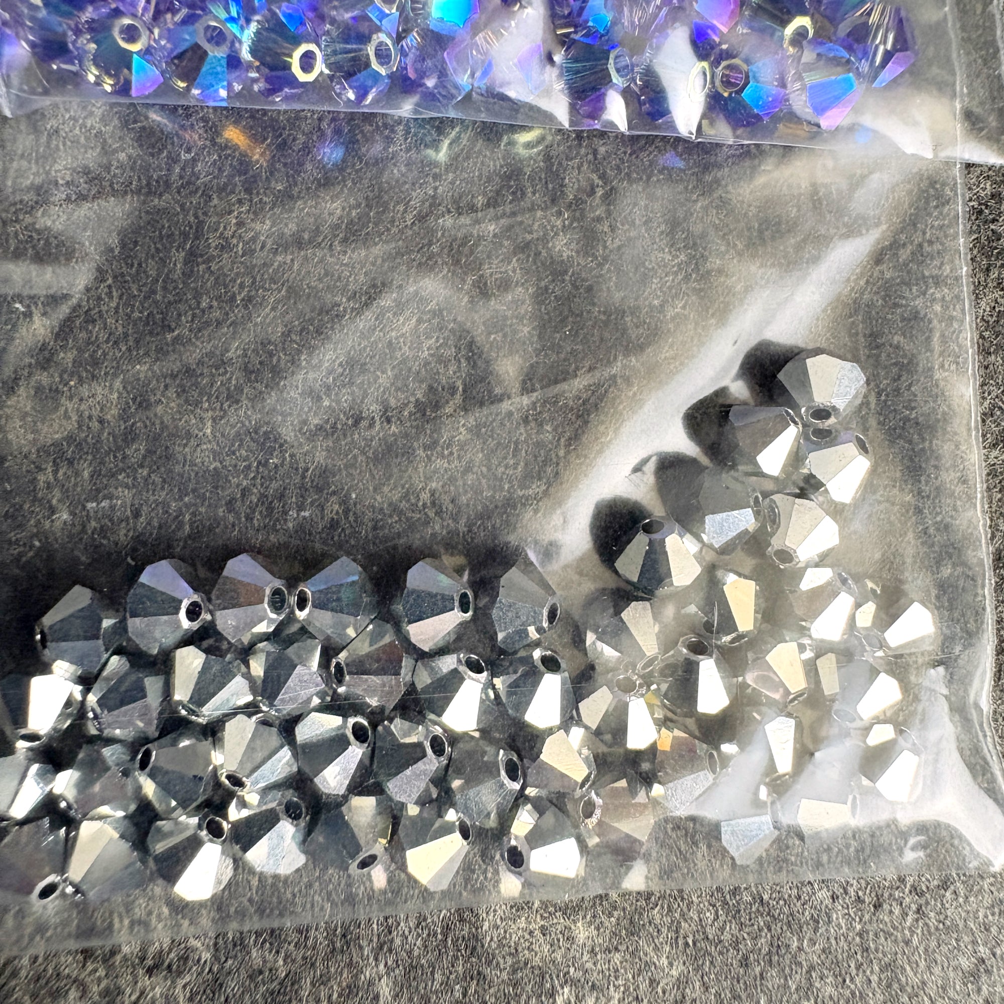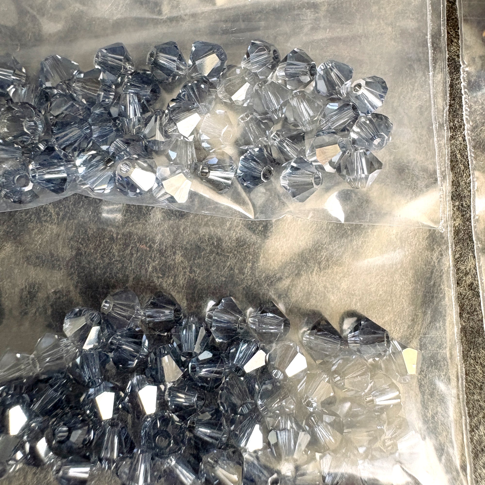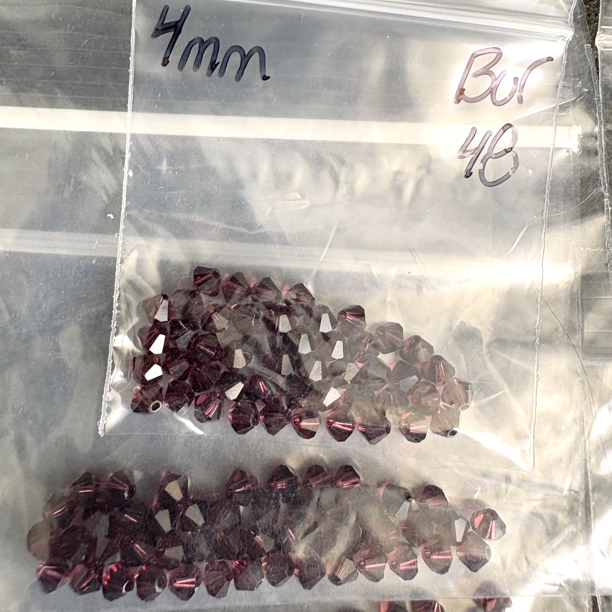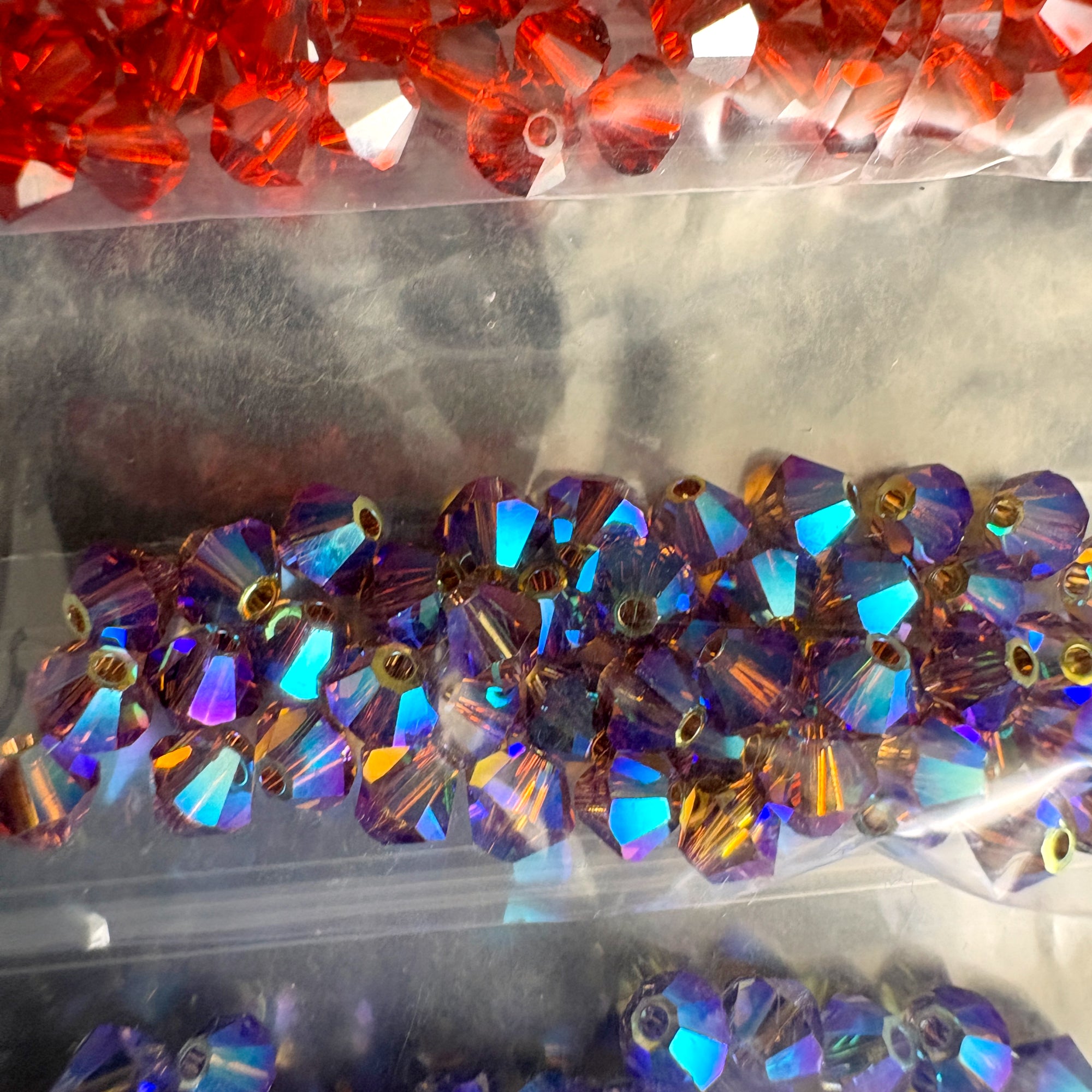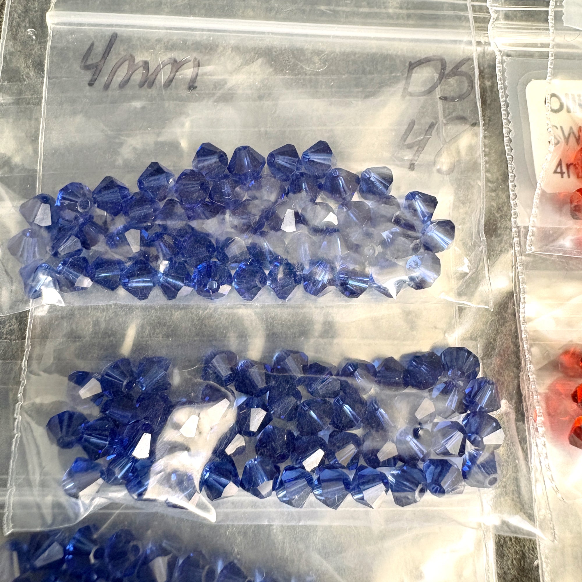 15 bags of Swarovski 4mm bicone crystal beads, 48 beads per bag for a total of 720 beads. Colors included:
