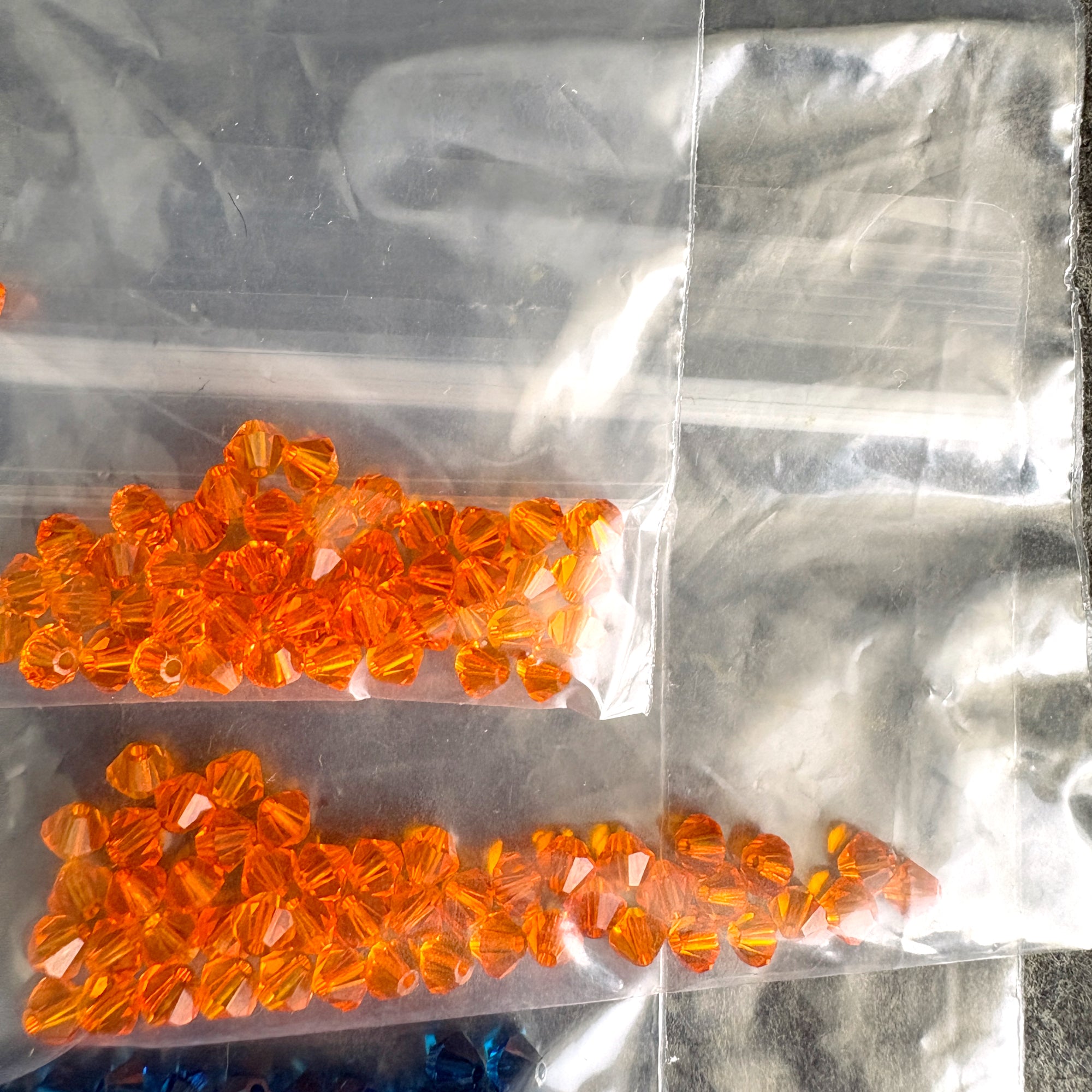 15 bags of Swarovski 4mm bicone crystal beads, 48/bag for a total of 720 beads. Colors included: