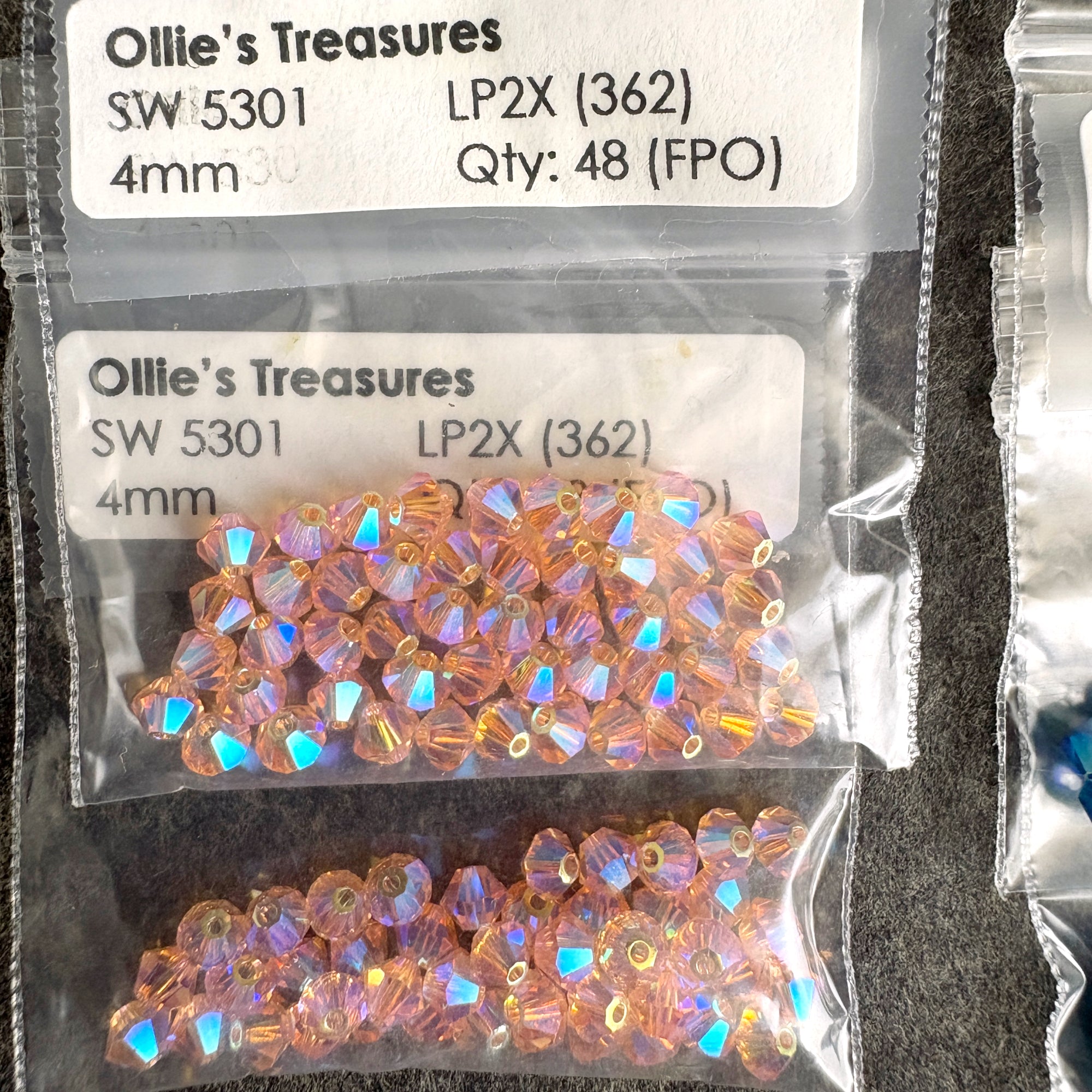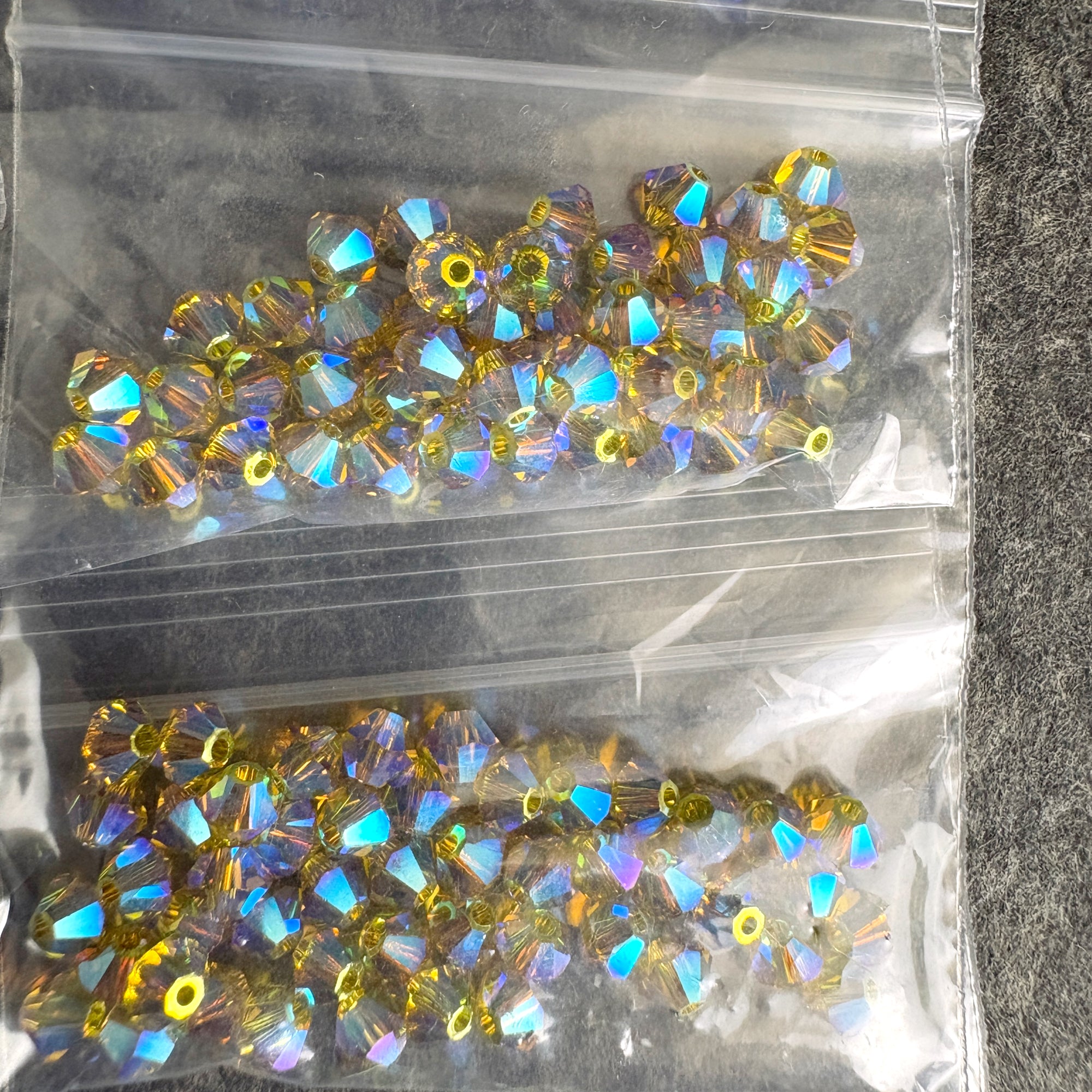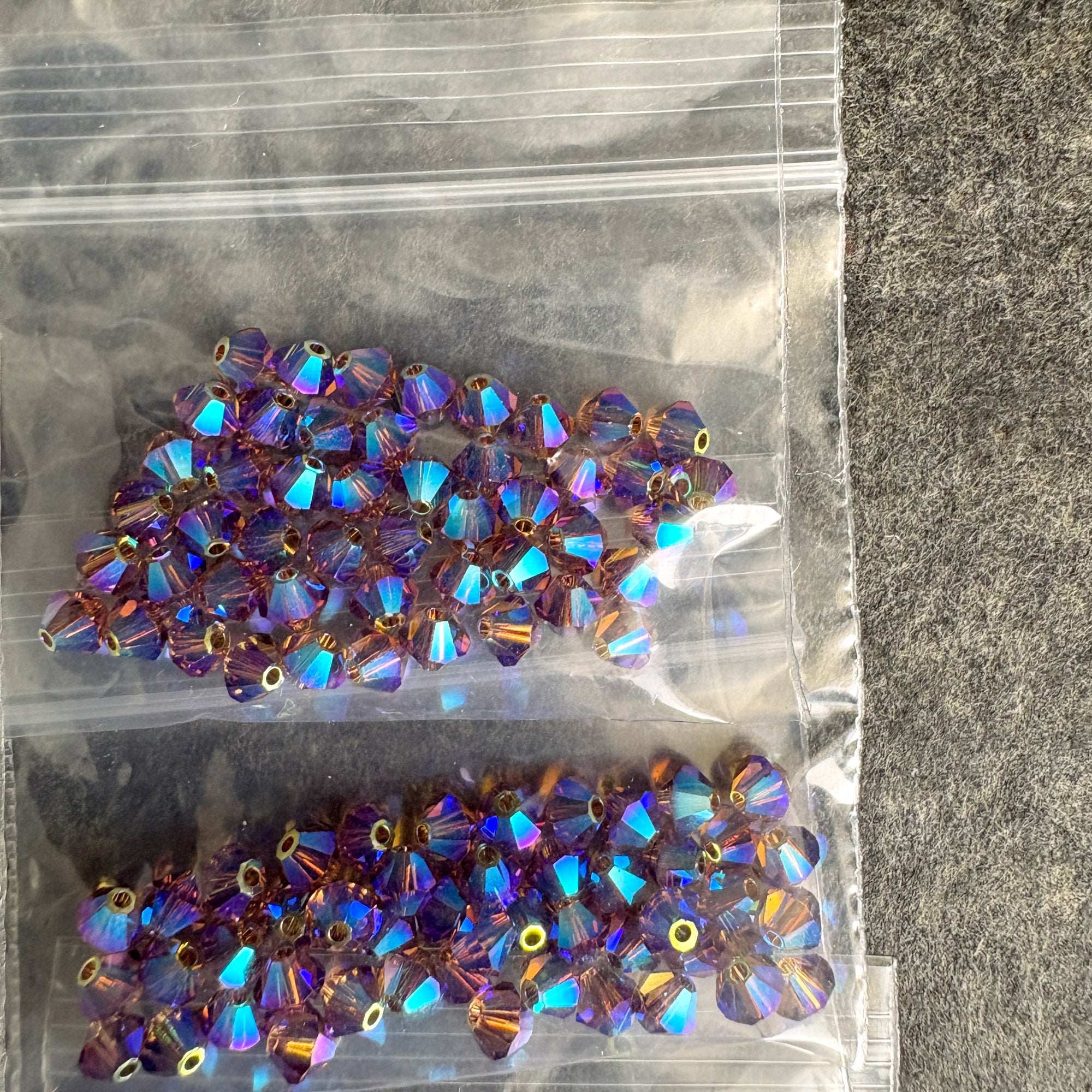 15 bags of Swarovski 4mm bicone crystal beads, 48/bag for a total of 720 beads. Colors included: