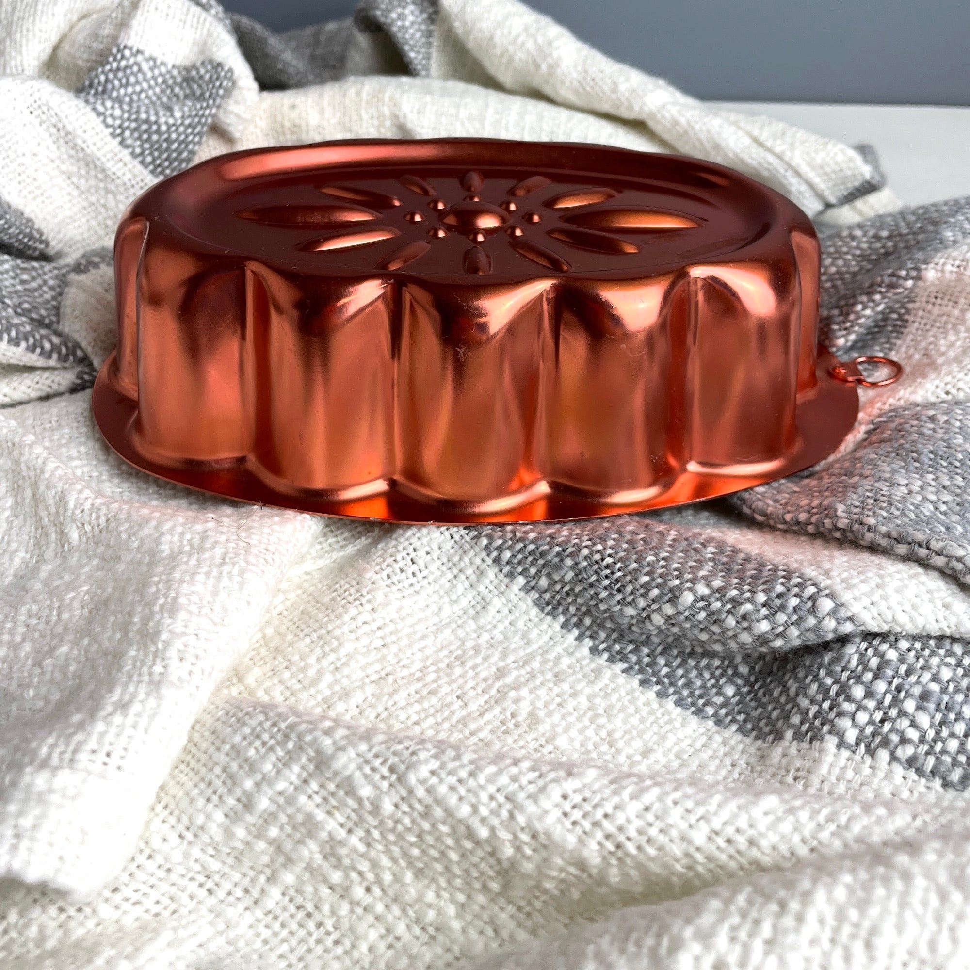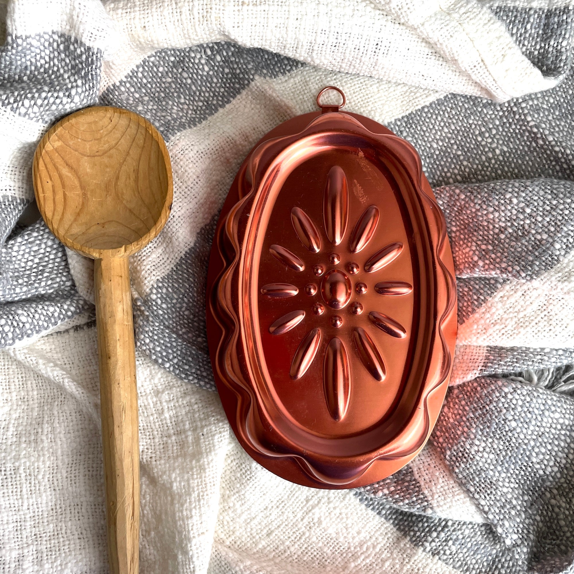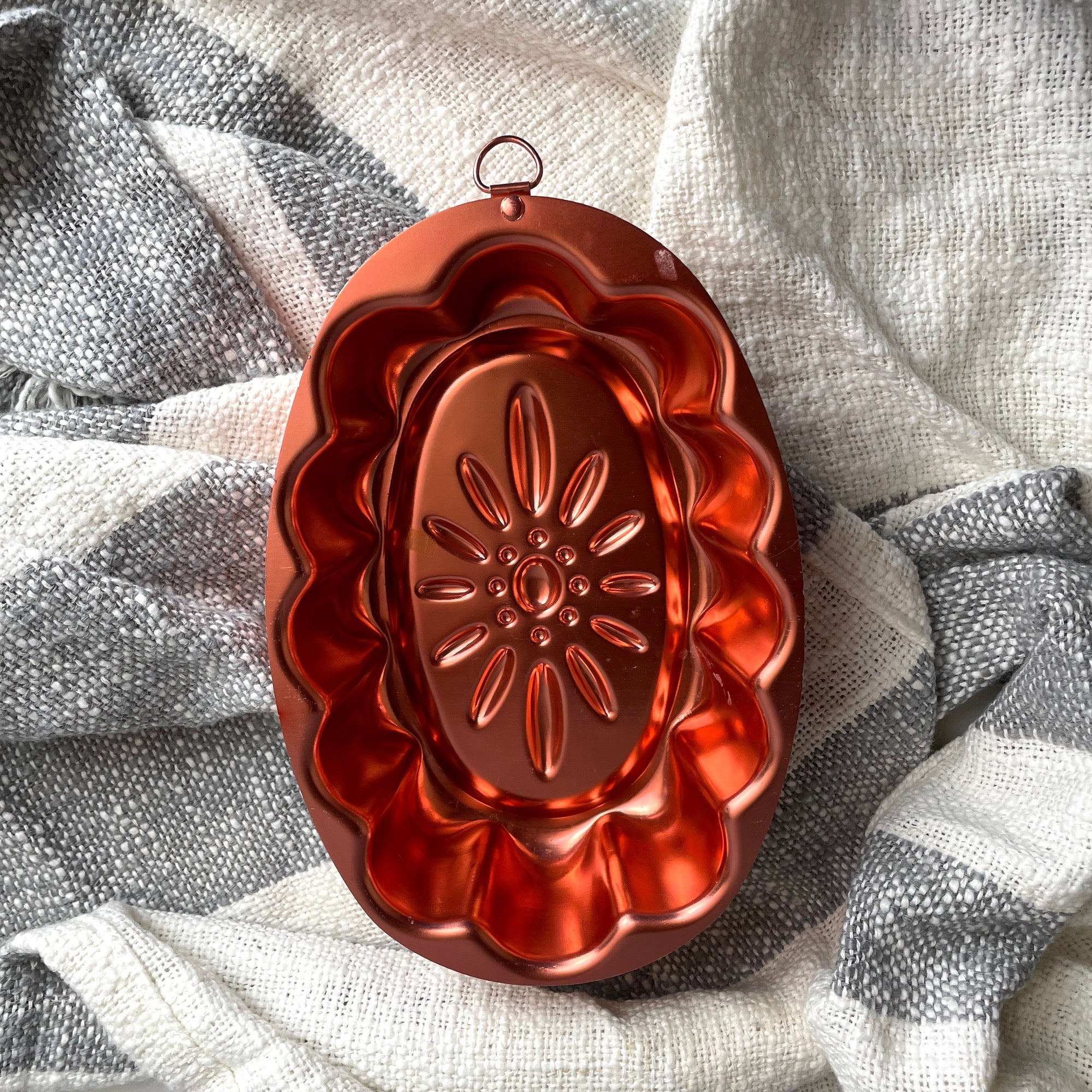 Mirro copper oval daisy gelatin mold - 1960s vintage