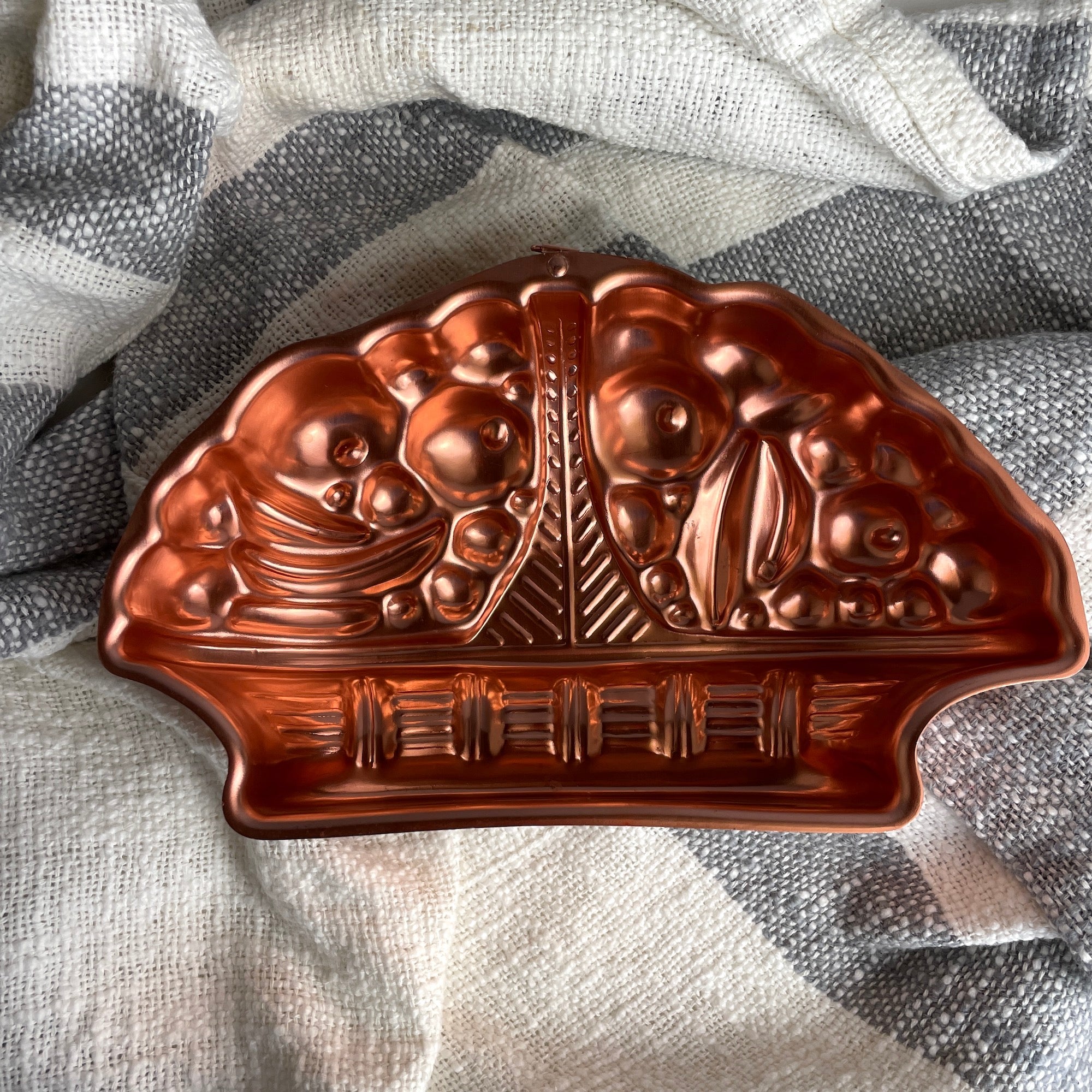 Mirro copper fruit basket gelatin mold - 1960s vintage