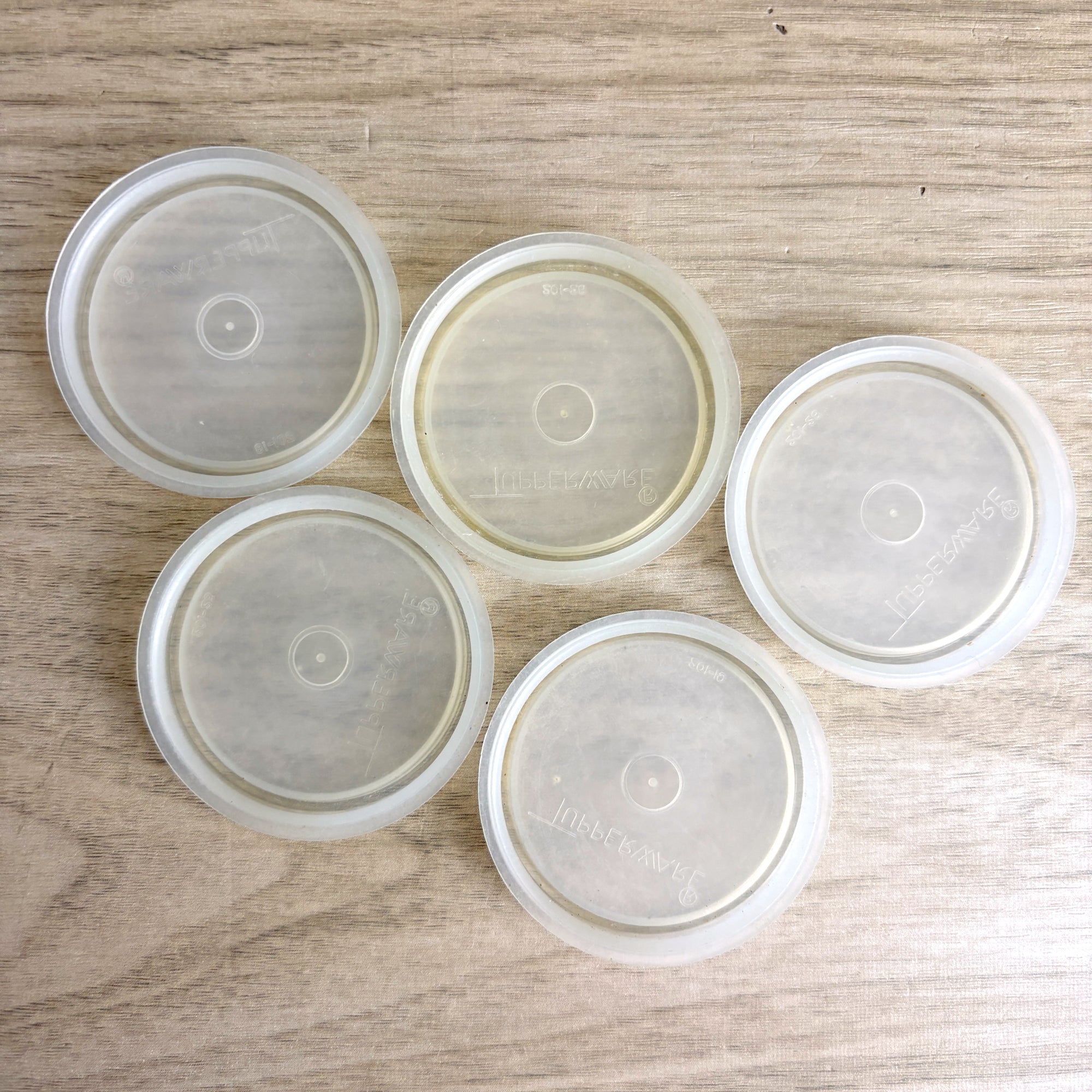 CONDITION Well loved and well used. Some scratches, some discoloration on the lids, but rims are in good condition. Tupperware lasts forever unless you melt it, and even then it can still be functional.