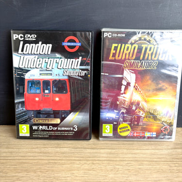 A pair of simulation games. London Underground Simulator - World Of Subways 3 (2011) by aerosoft, produced in Germany. In original case with manual and registration key. And Euro Truck Simulator 2 - Nordic Version (2012) by wendros. New old stock in sealed case.