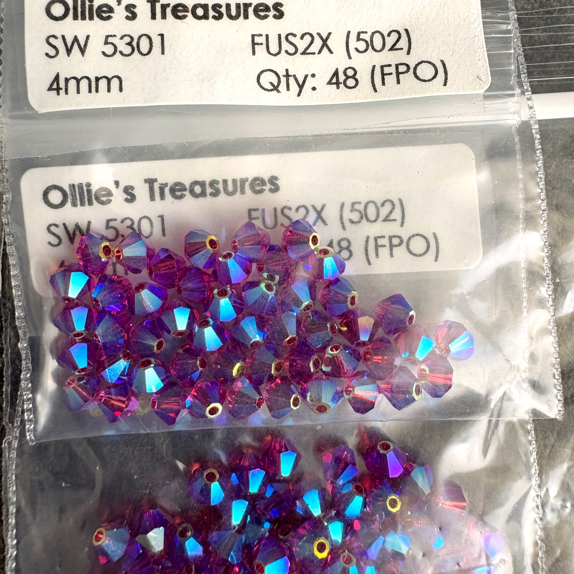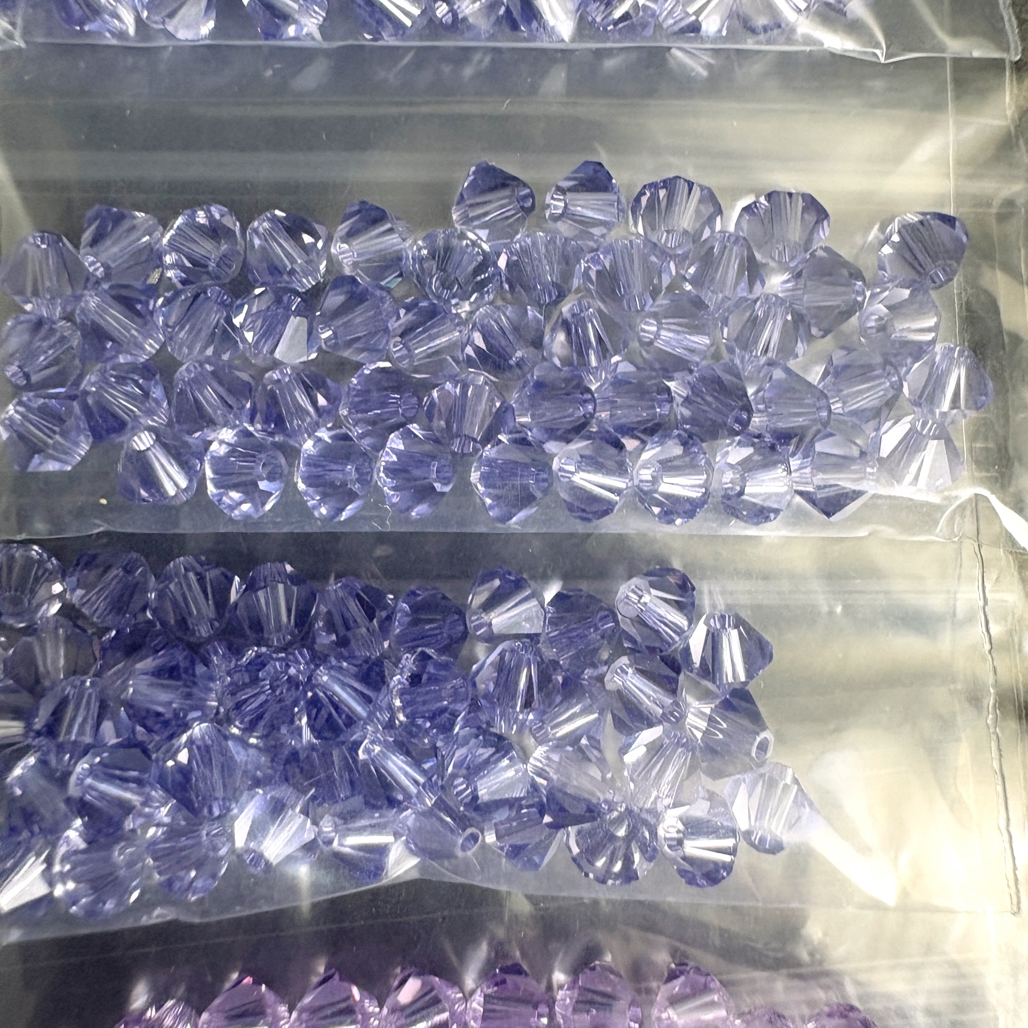 Lot of 15 bags of Swarovski 4mm bicone crystal beads with 48/bag for a total of 720 beads. Colors include: