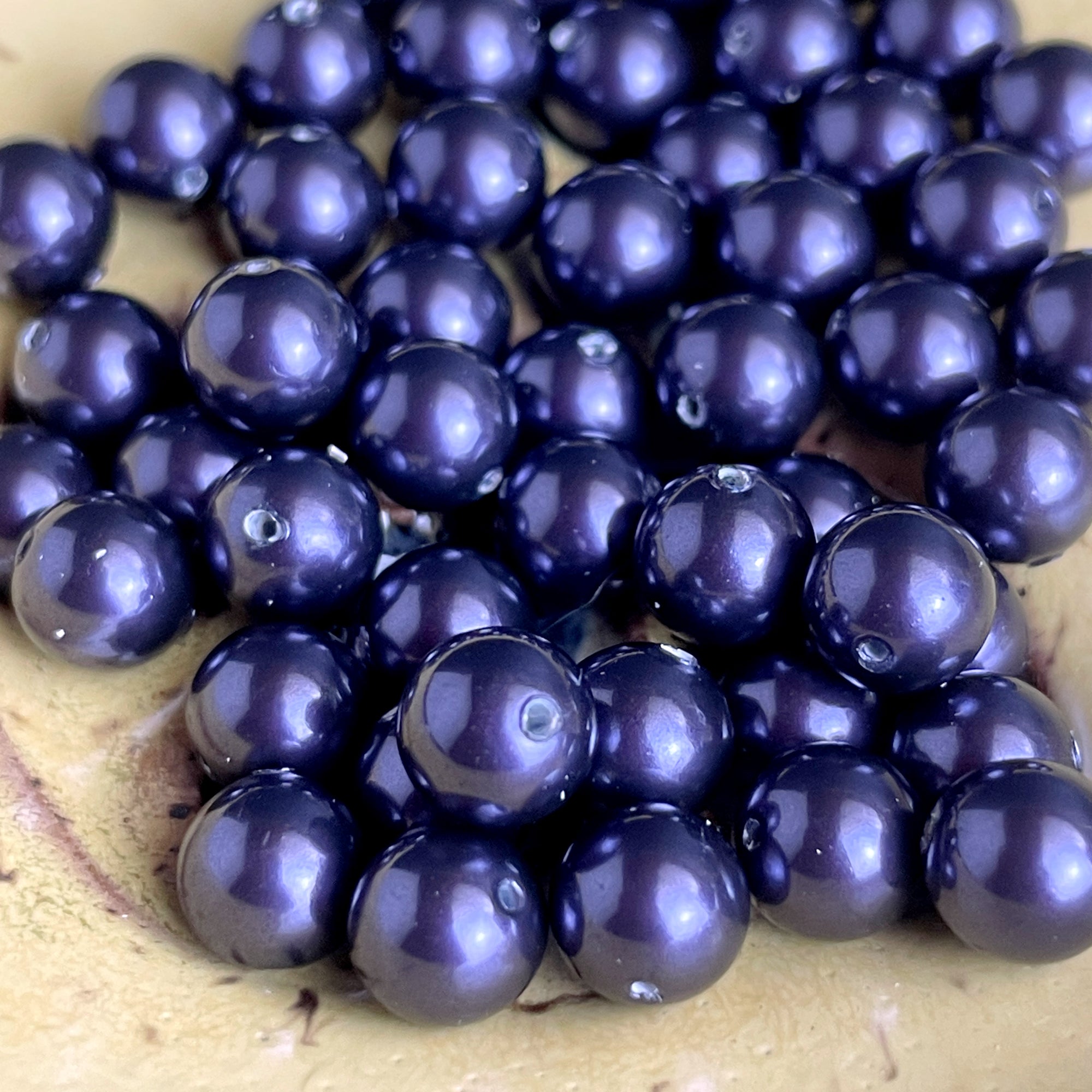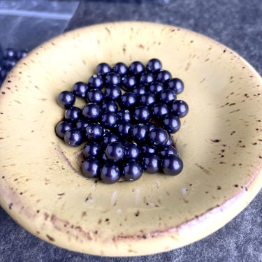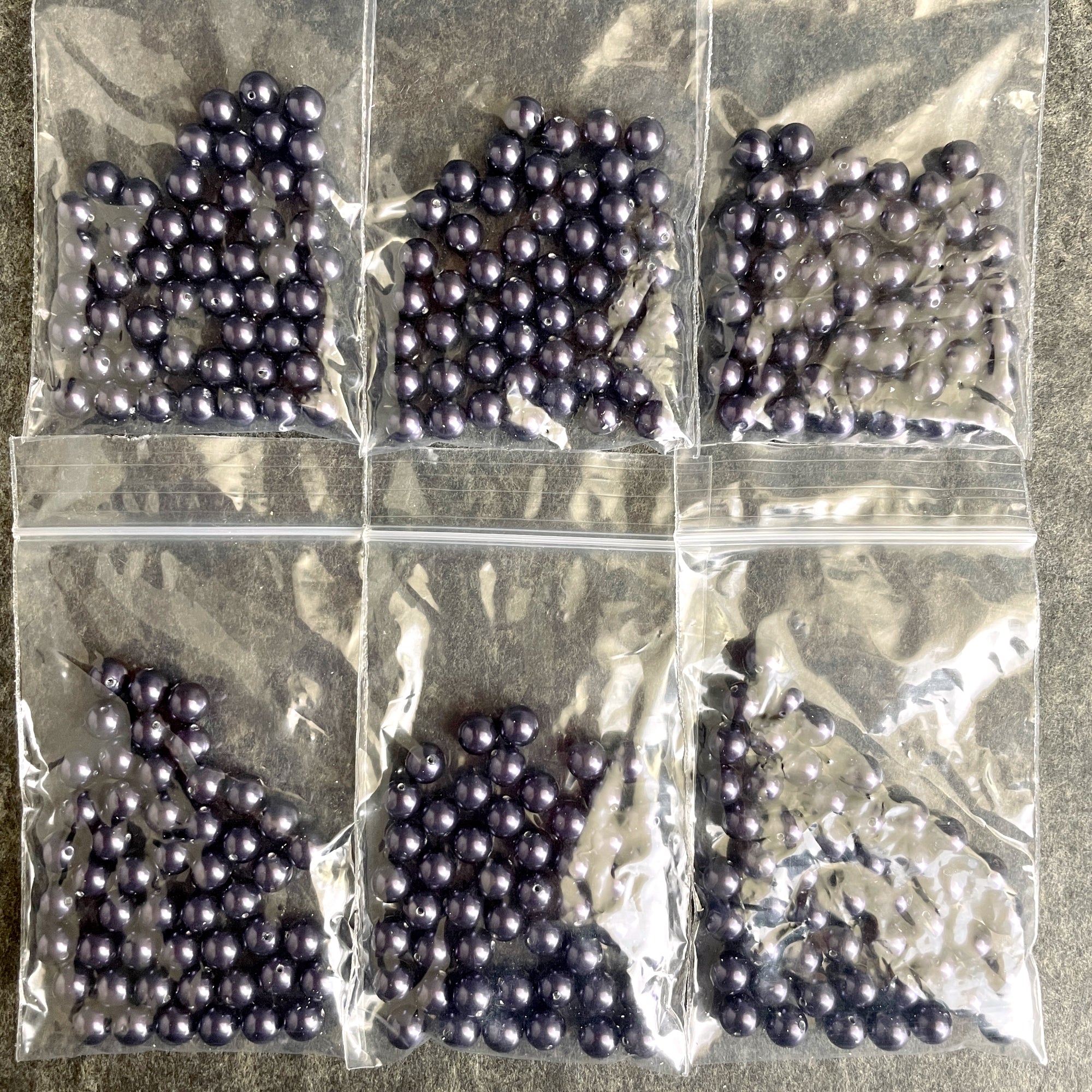 6 bags of 50/bag of 6mm round crystal pearls in dark purple for a total of 300 pearl beads. (These pre-packed bags were unmarked, we believe the color is dark purple.)