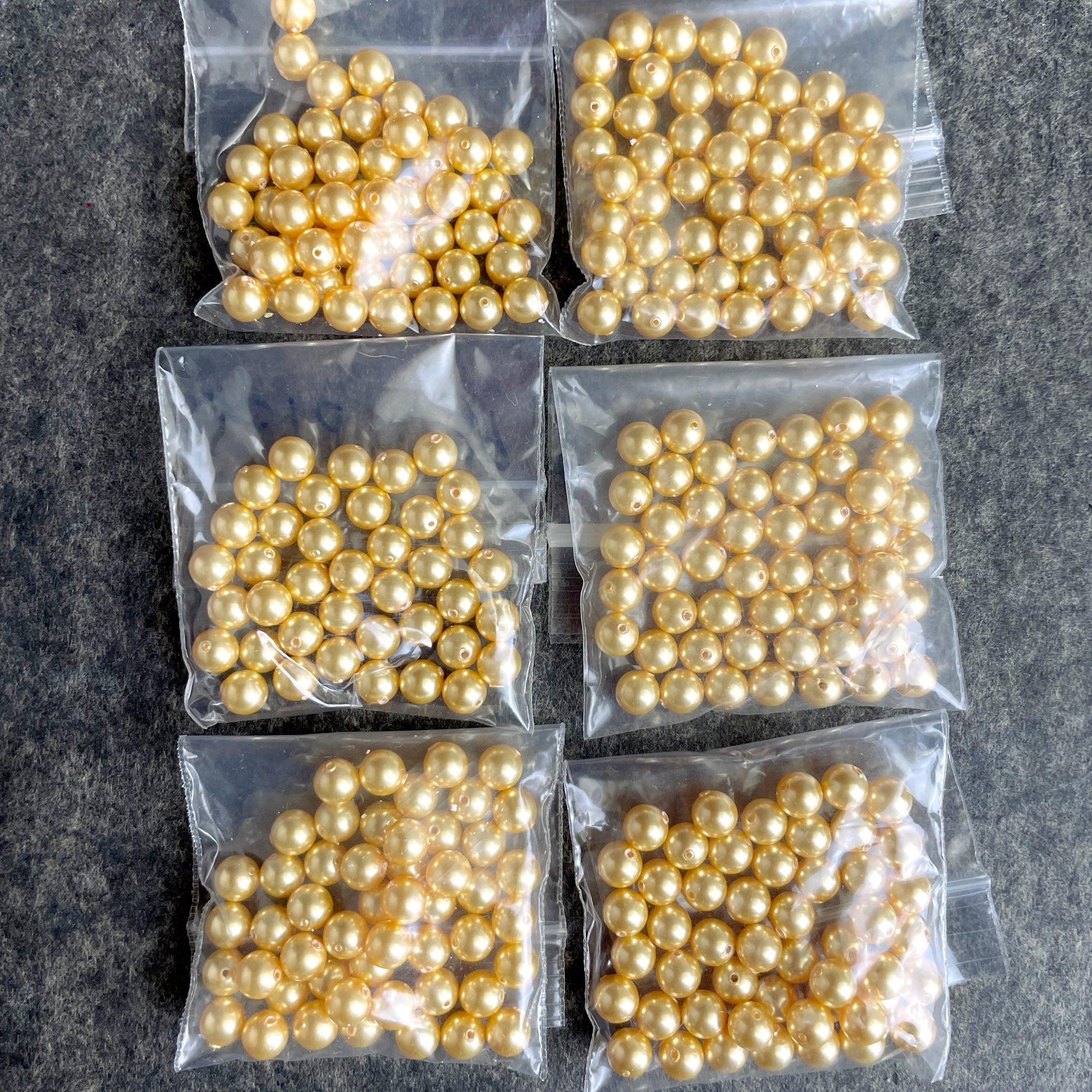 289 gold 6mm round crystal pearls, 5 bags of 50/bag and 1 bag of 39.