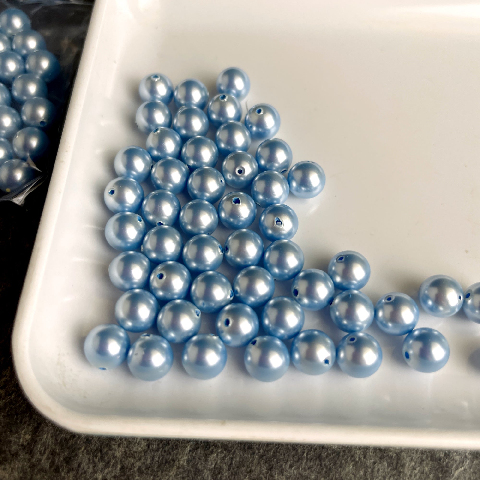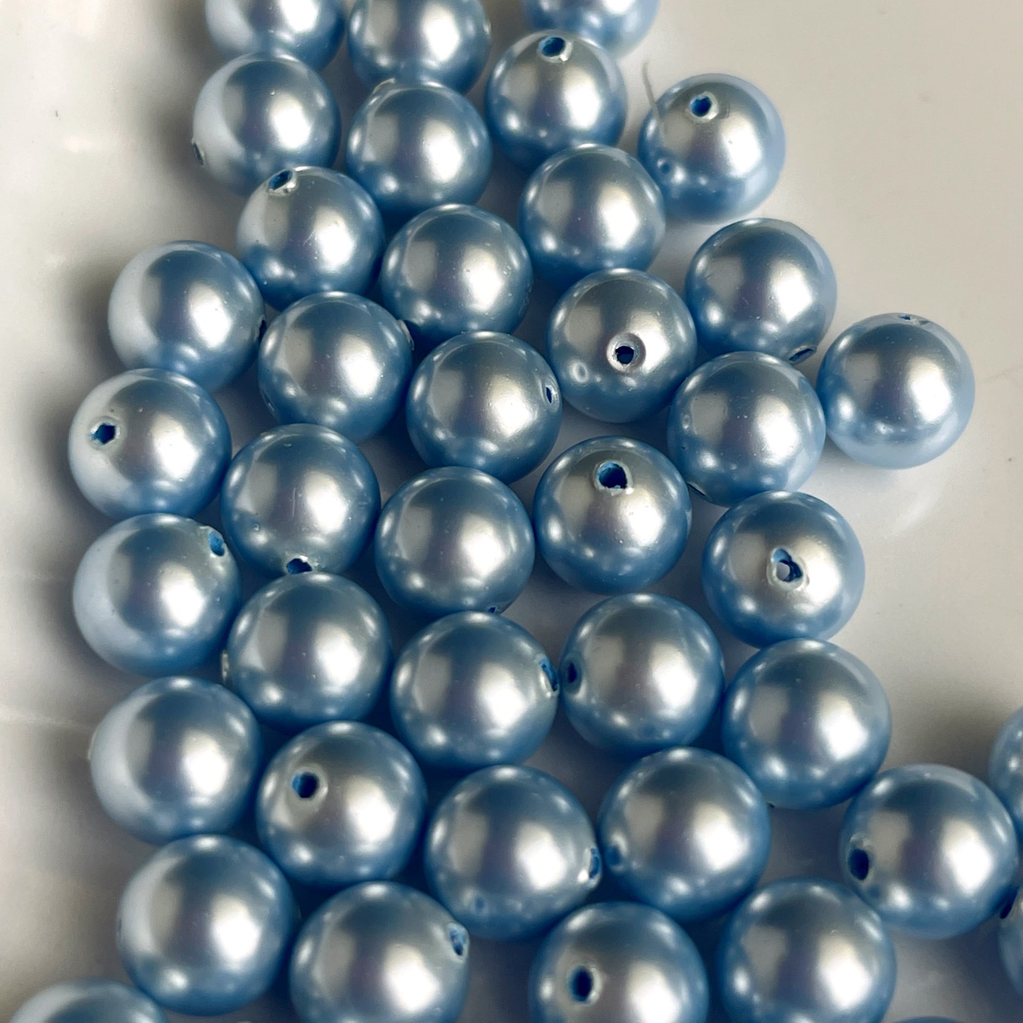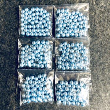 6 bags of 50/bag of 6mm round crystal pearls in light blue for a total of 300 pearl beads.