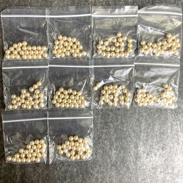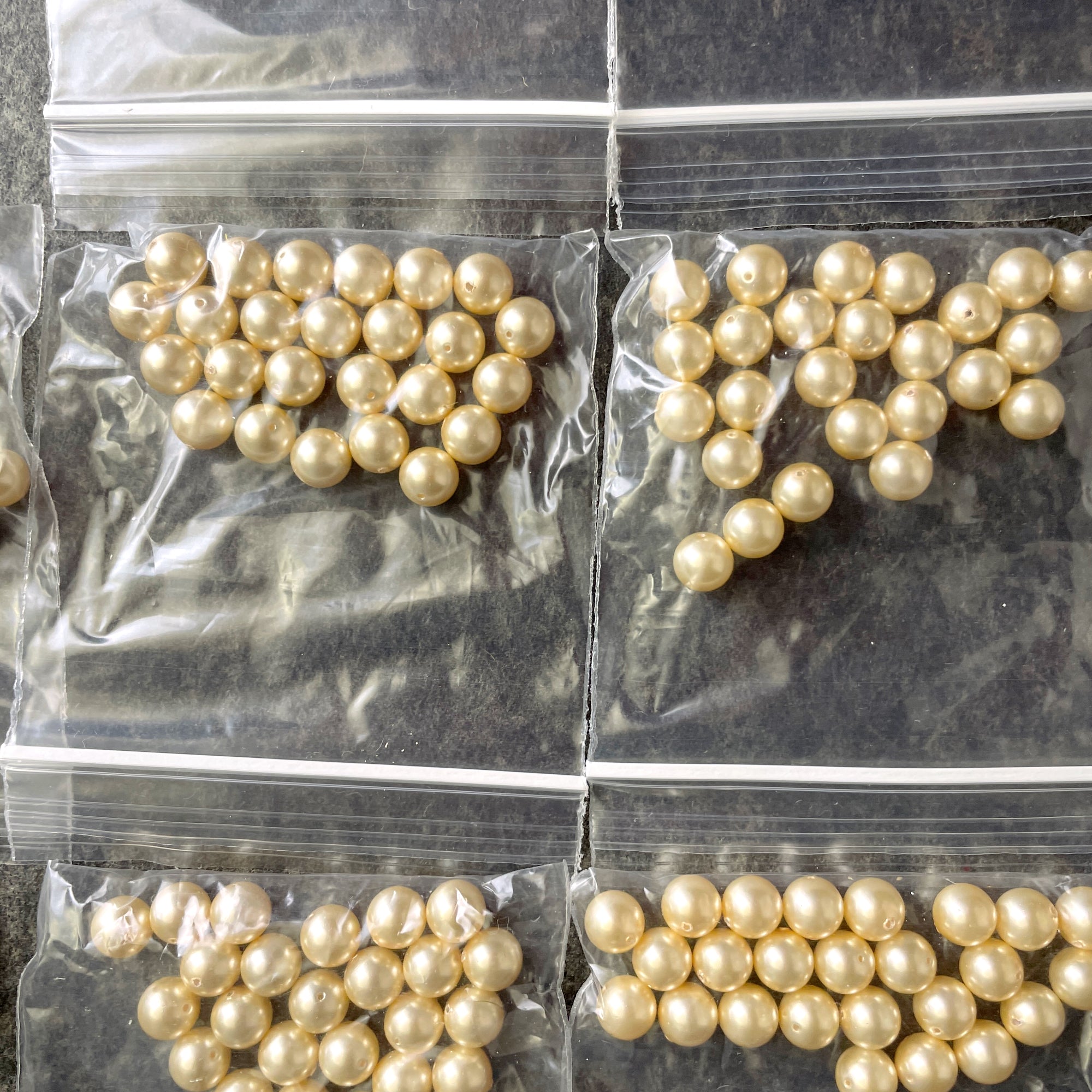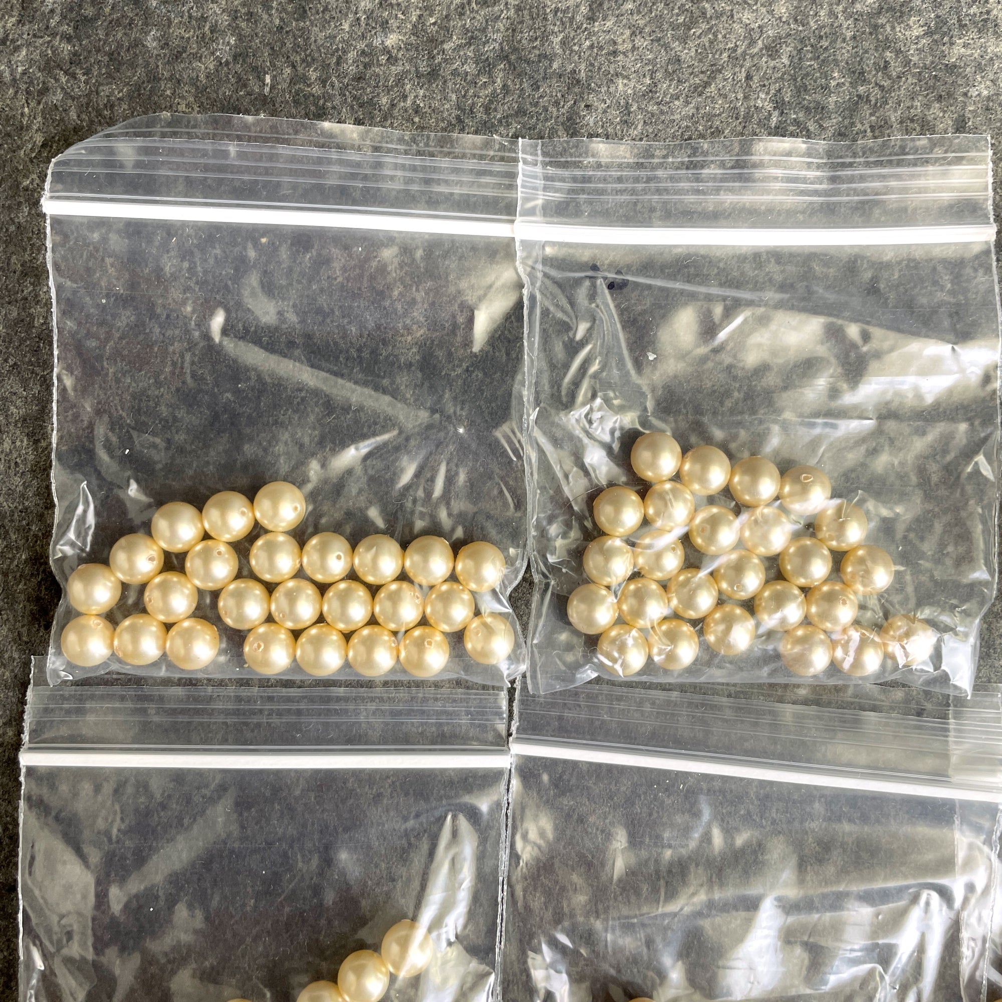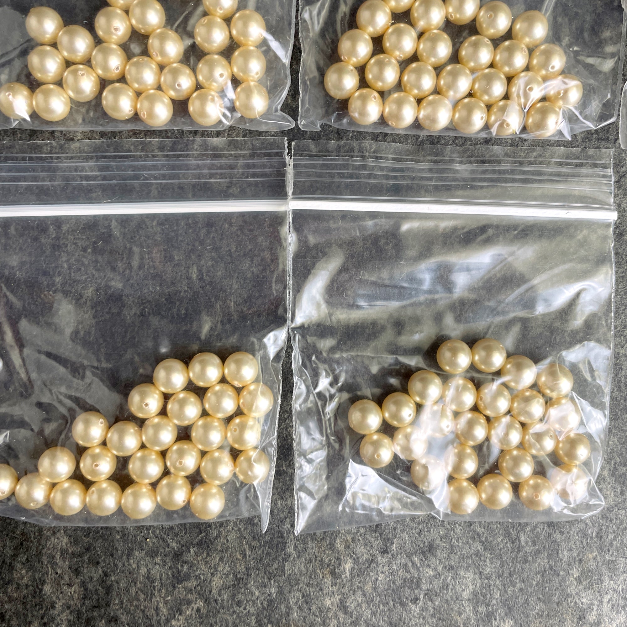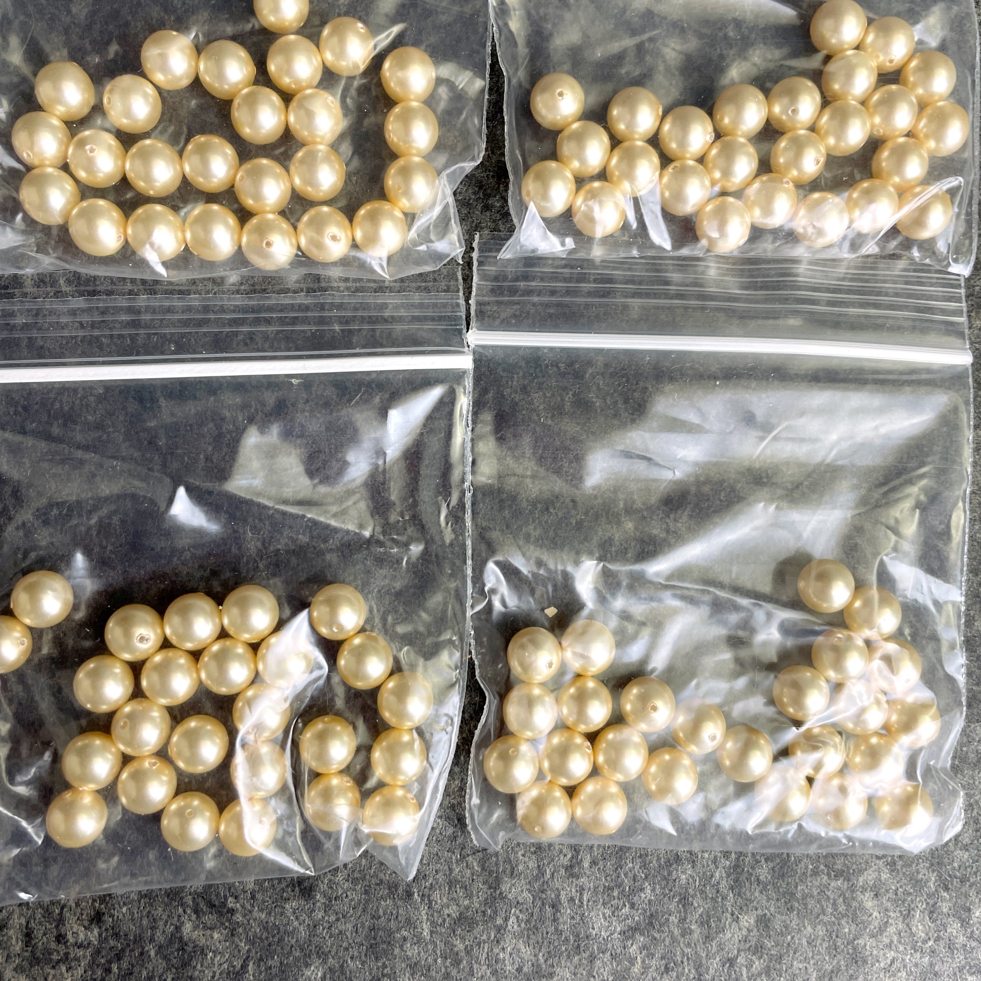 10 bags of 25/bag 8mm round crystal pearls in Light Gold (LGold) for a total of 250 pearl beads.
