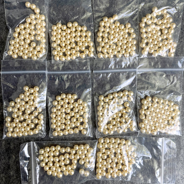10 bags of 50/bag 6mm round crystal pearls in Light Gold (LGold) for a total of 500 pearl beads.