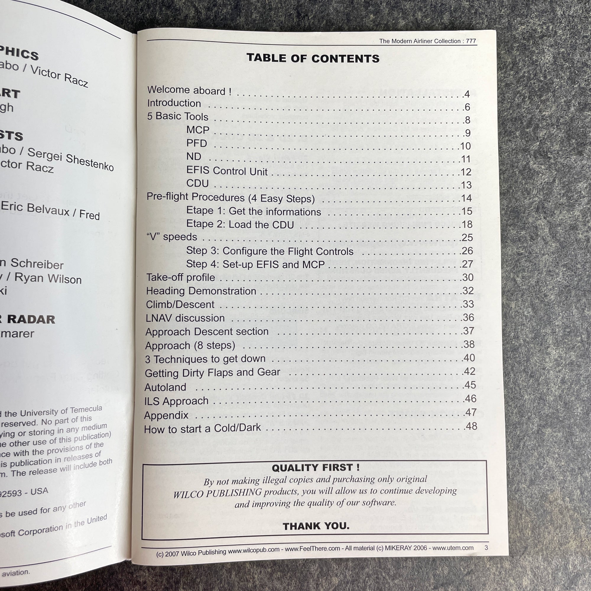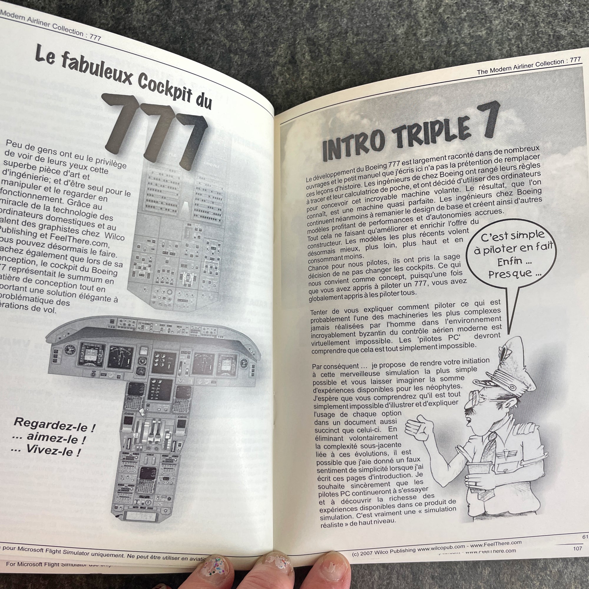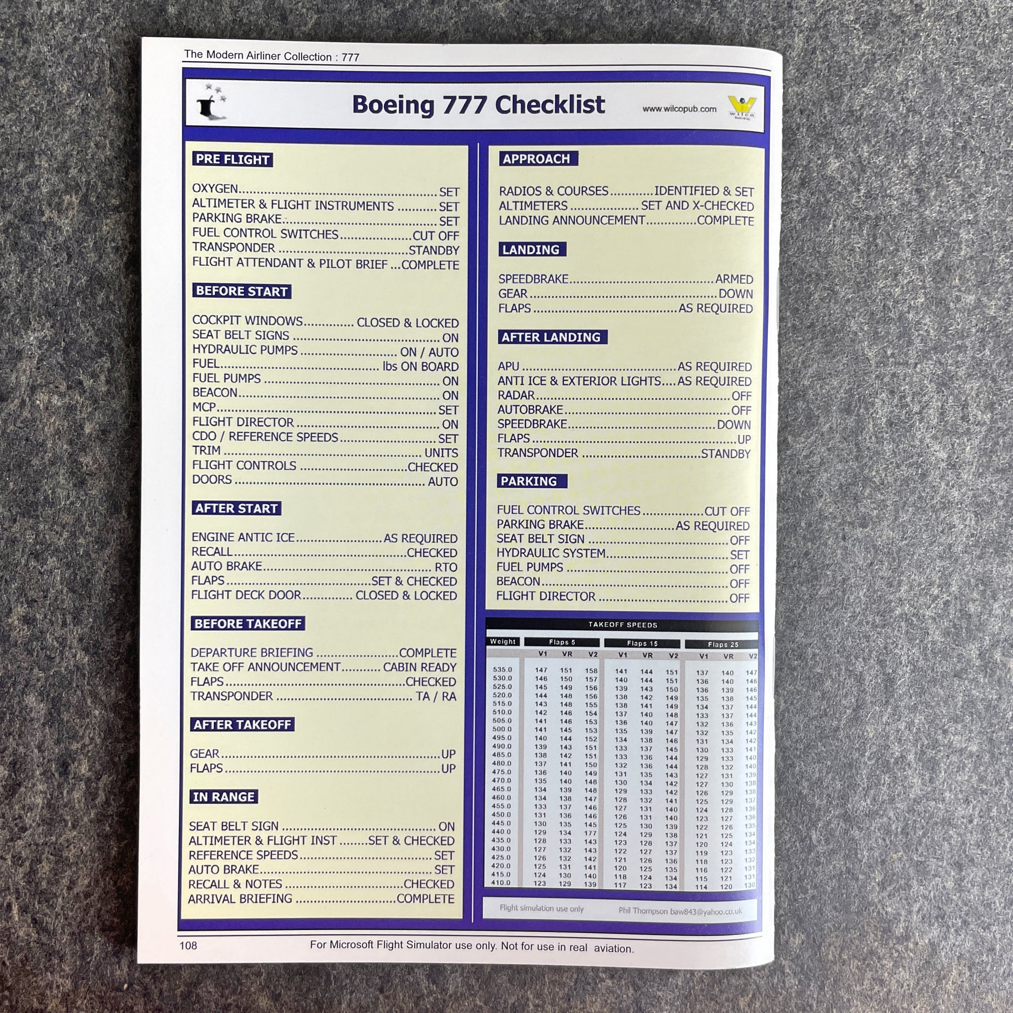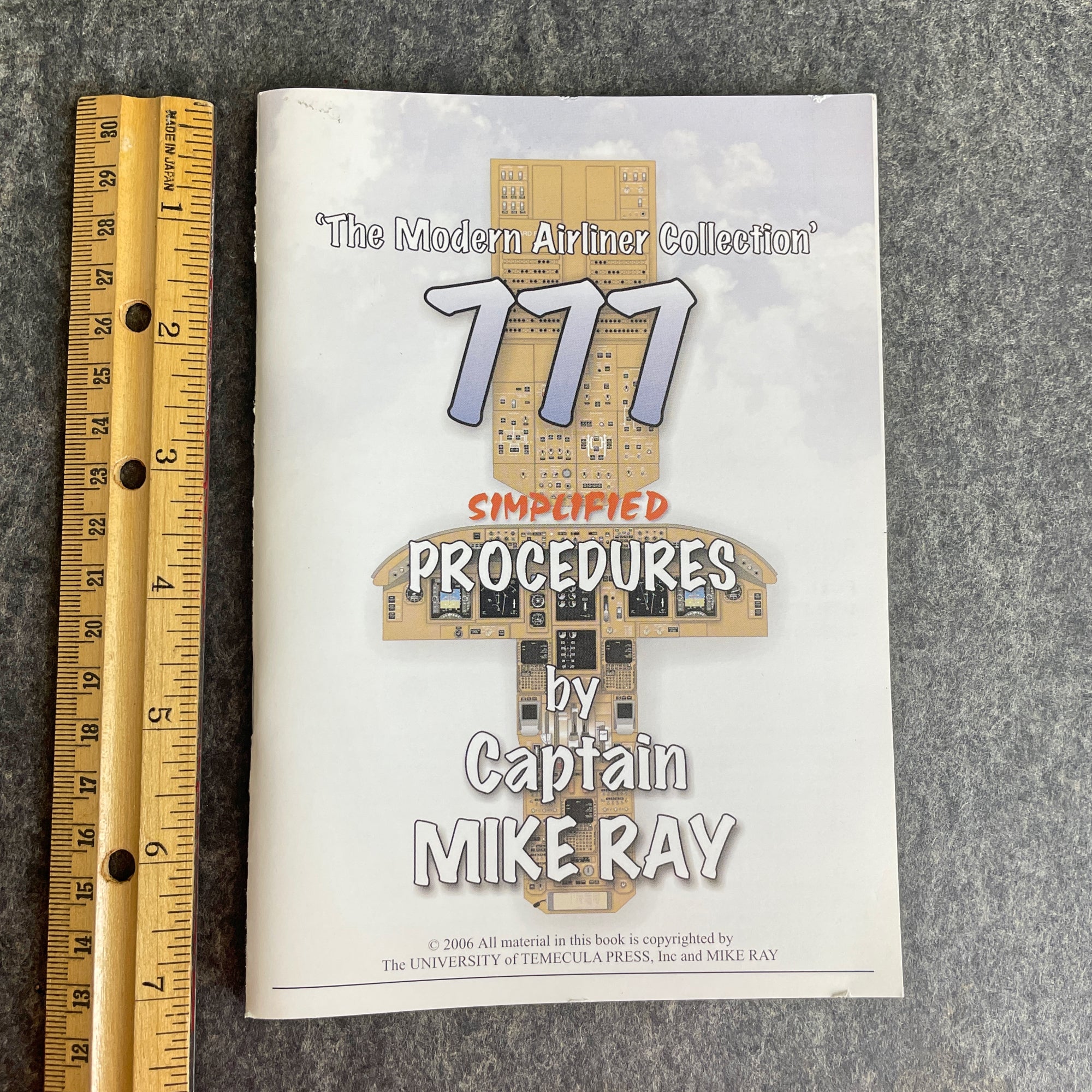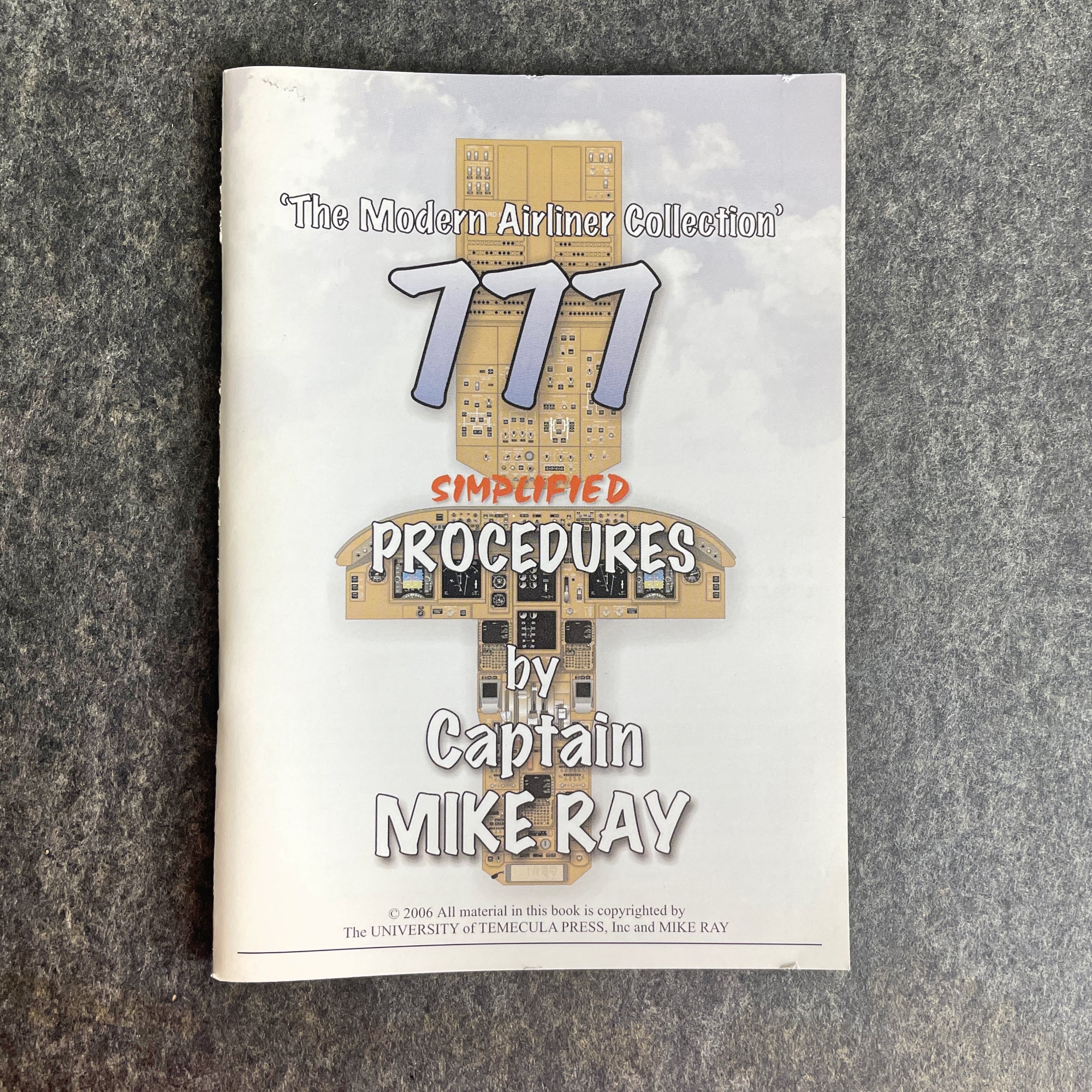 From The Modern Airliner Collection, "777 Simplified Procedures" by Captain Mike Ray. 2006 softcover. In both English and French. University of Temecula Press. Black and white.