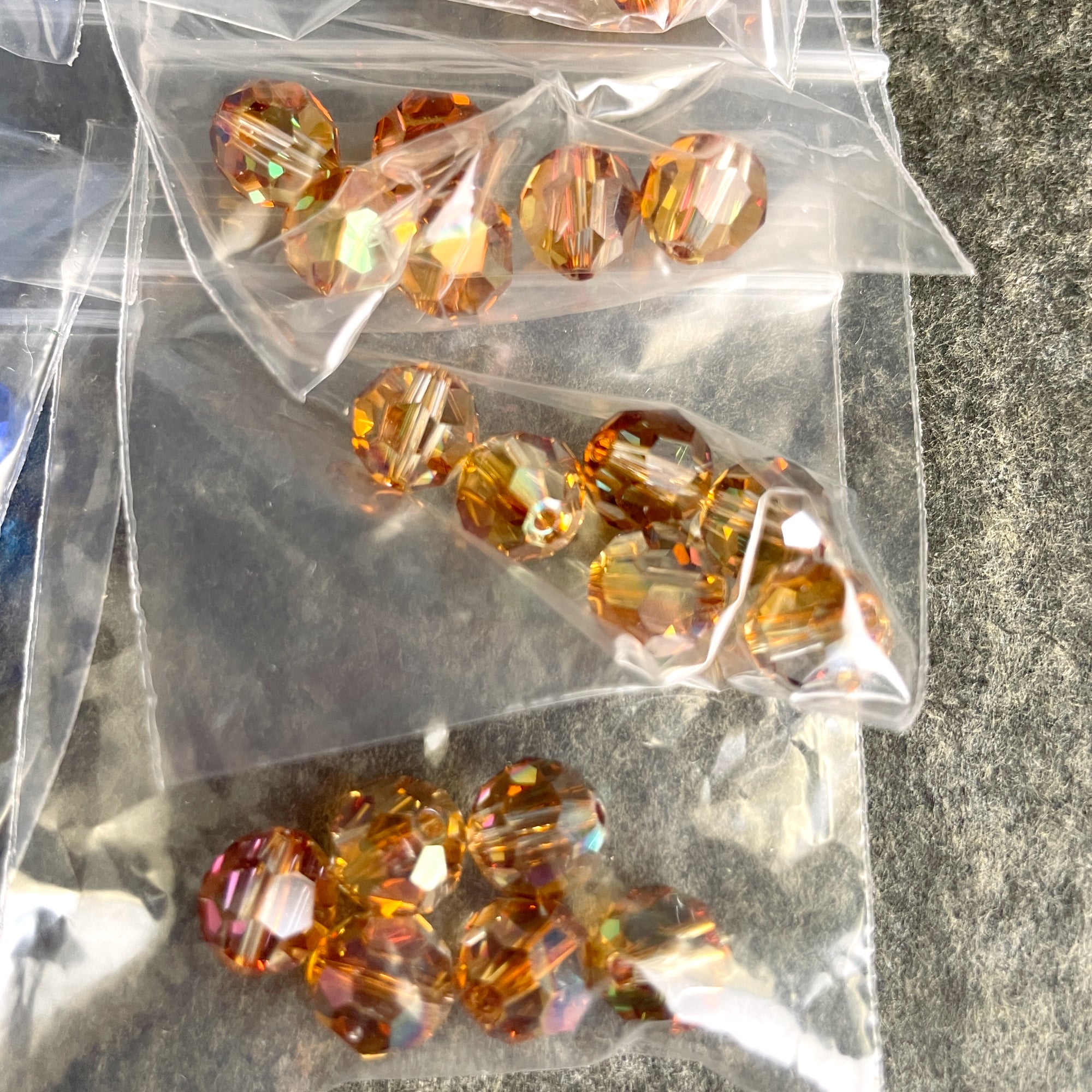 These may be Swarovski. They come from a maker/reseller's estate. Bead packages from the estate that had labels were labeled Swarovski, but we don't know for sure all the beads are. They appear to be excellent quality with precise round holes. Priced accordingly.