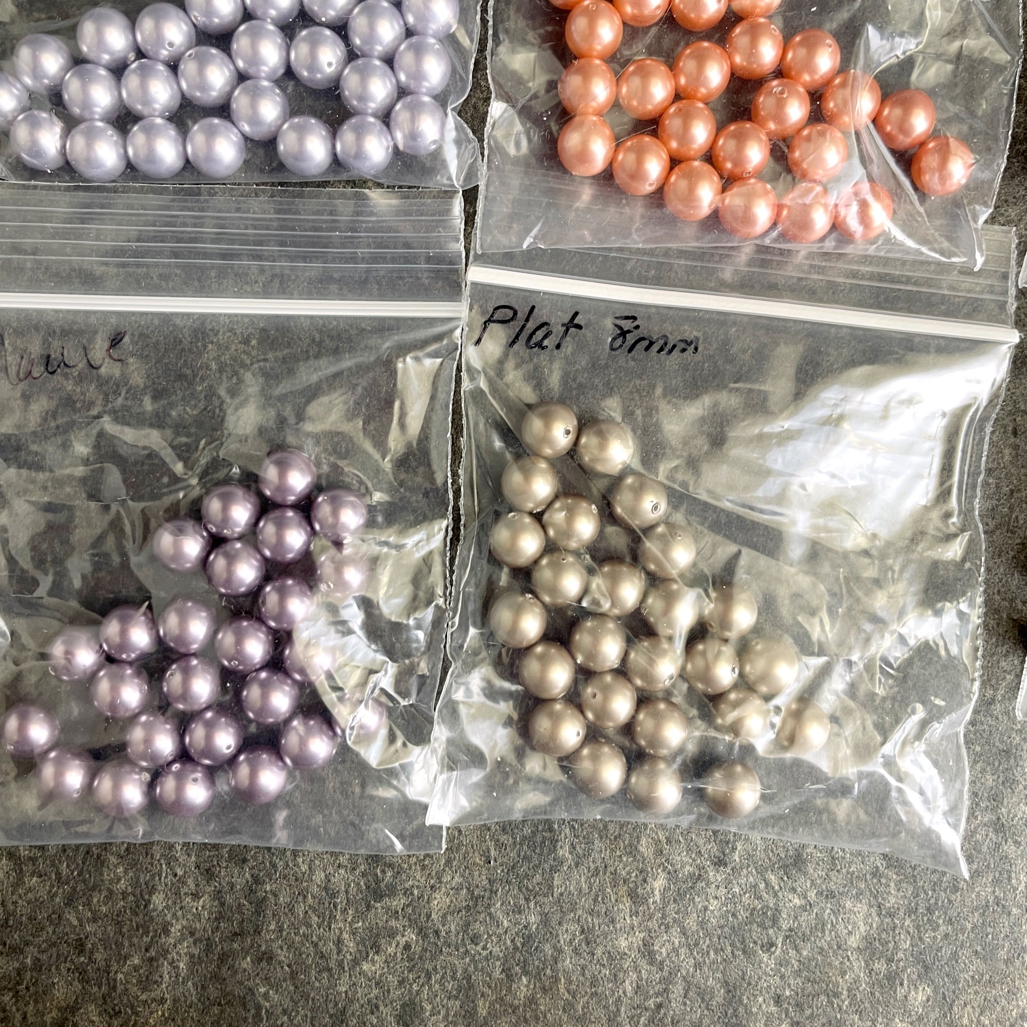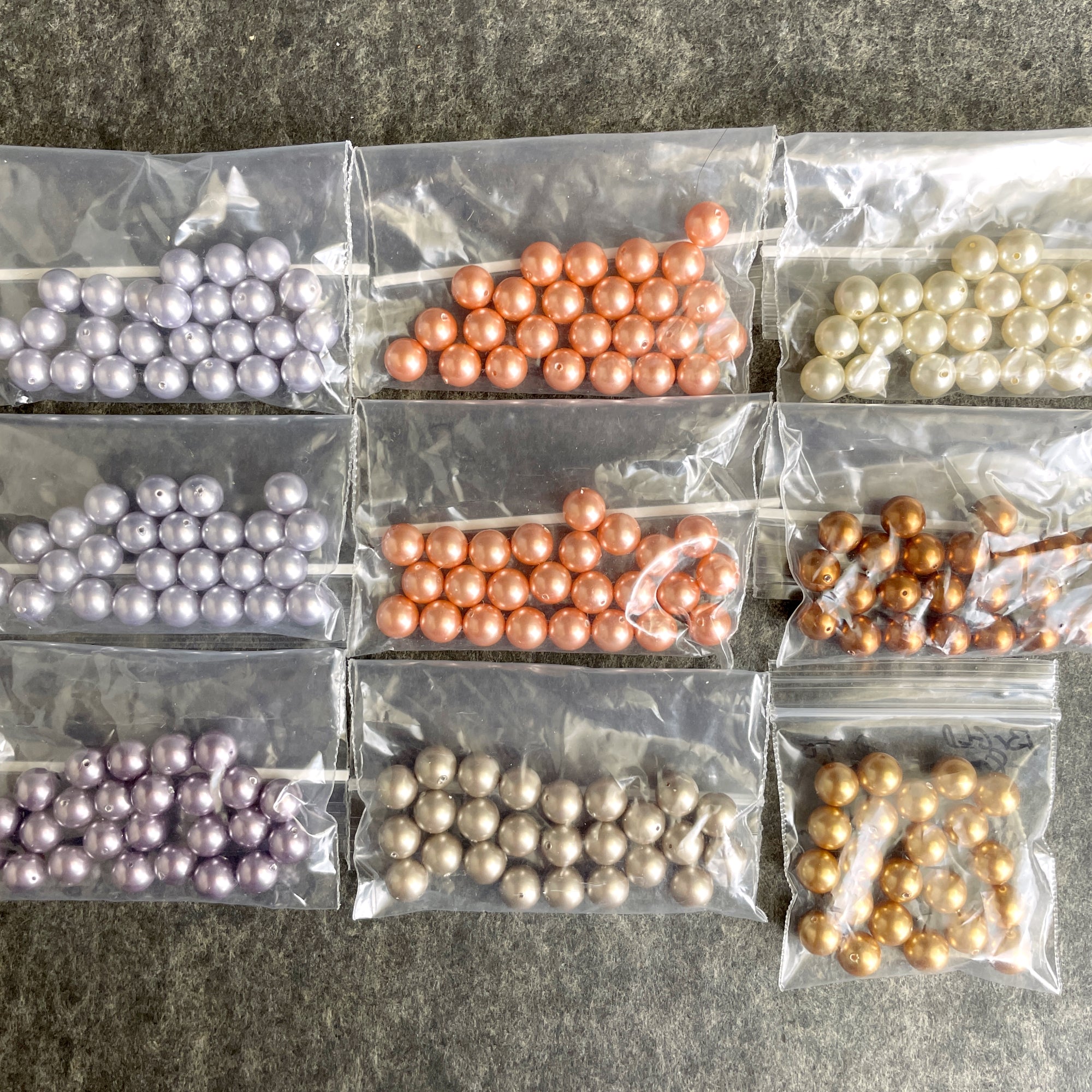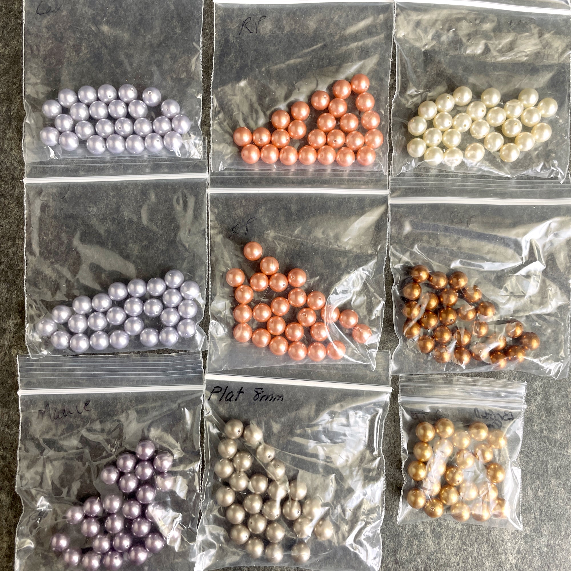 8 bags of 25/bag 8mm round crystal pearls in multi-colors plus a bonus bag of 22.