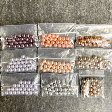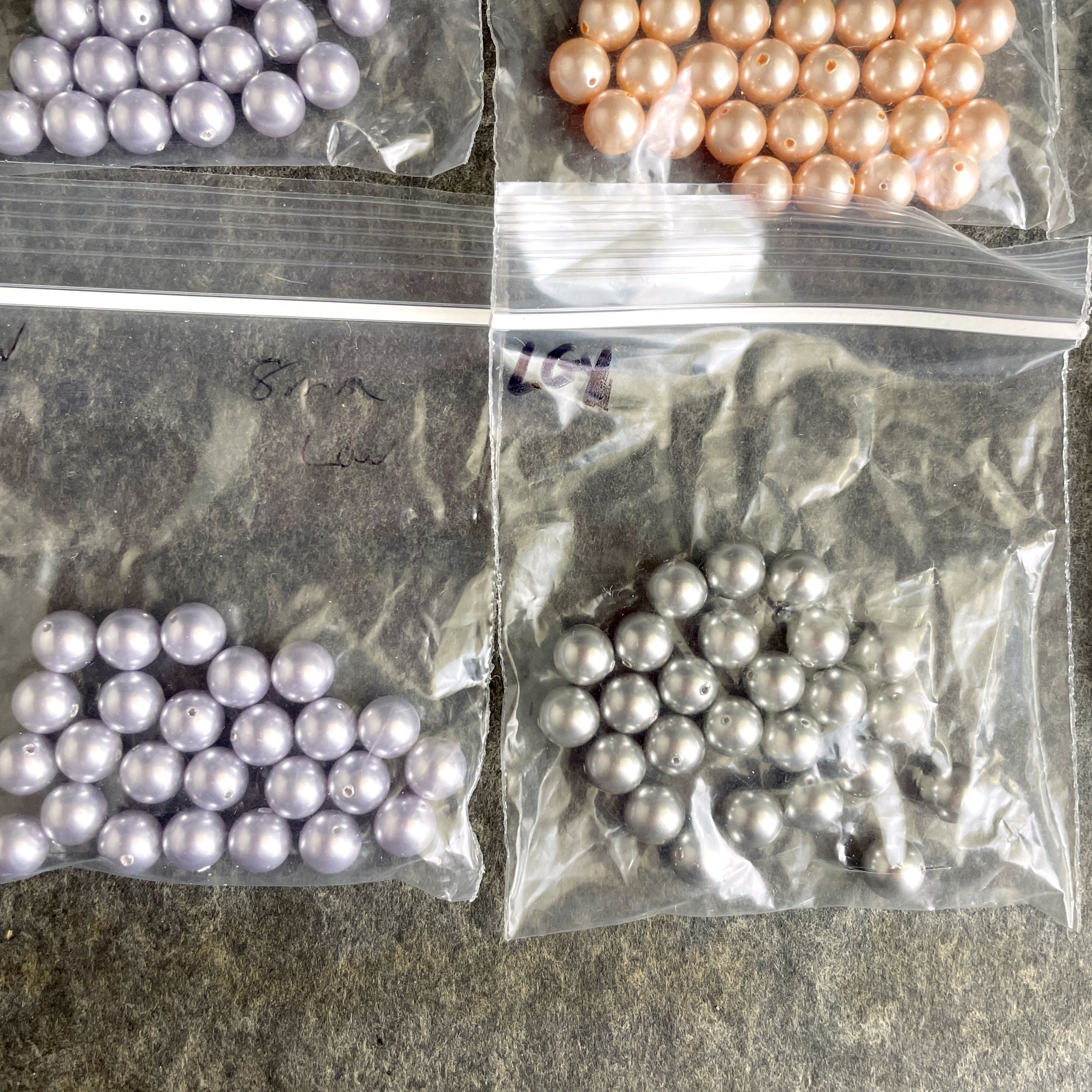 8 bags of 25/bag 8mm round crystal pearls in multi-colors and bonus bag of 24.