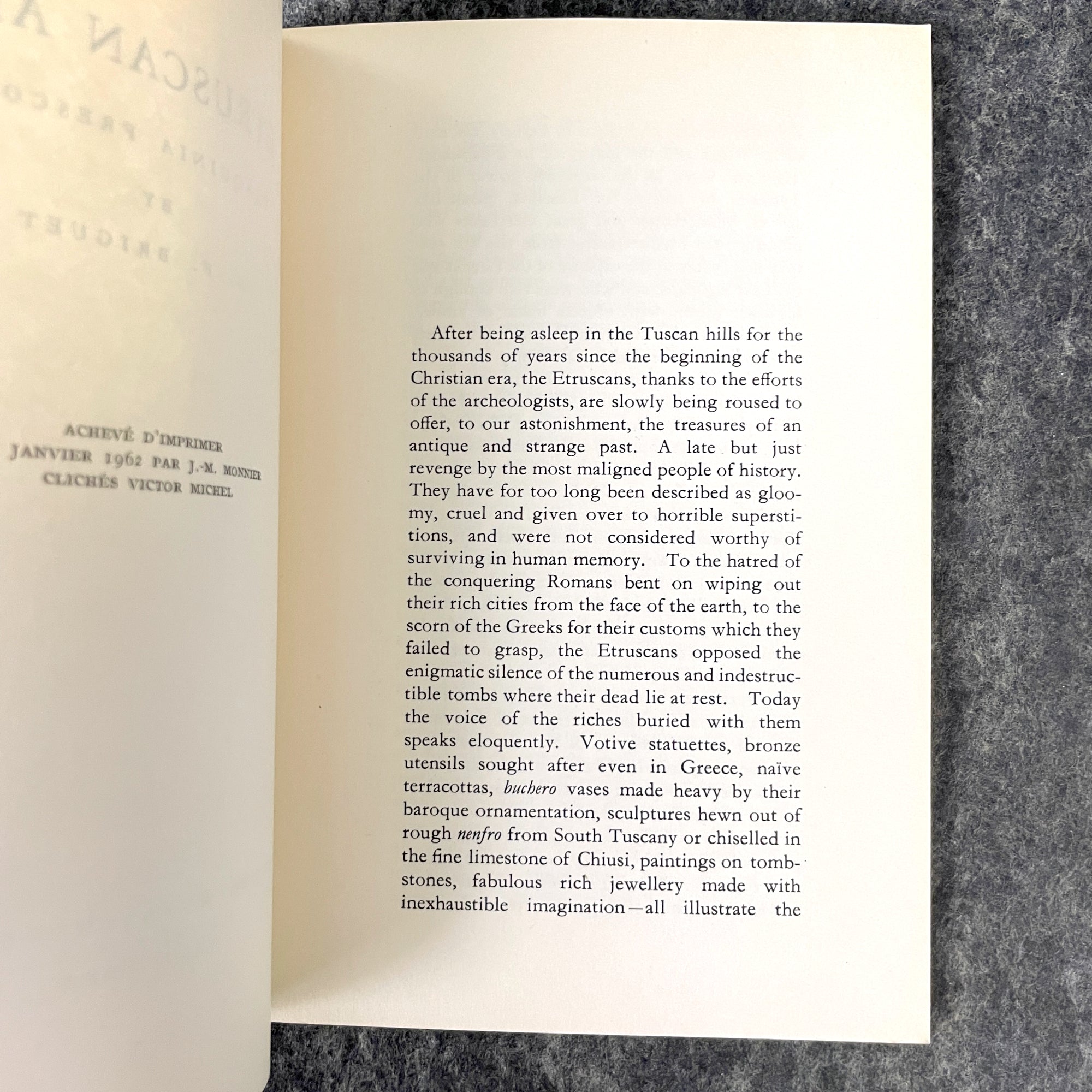 Etruscan Art (#44) by M. F. Briguet. 1961 paperback art book from ABC Tudor Publishing. Introductory essay and 15 color plates with descriptive list.