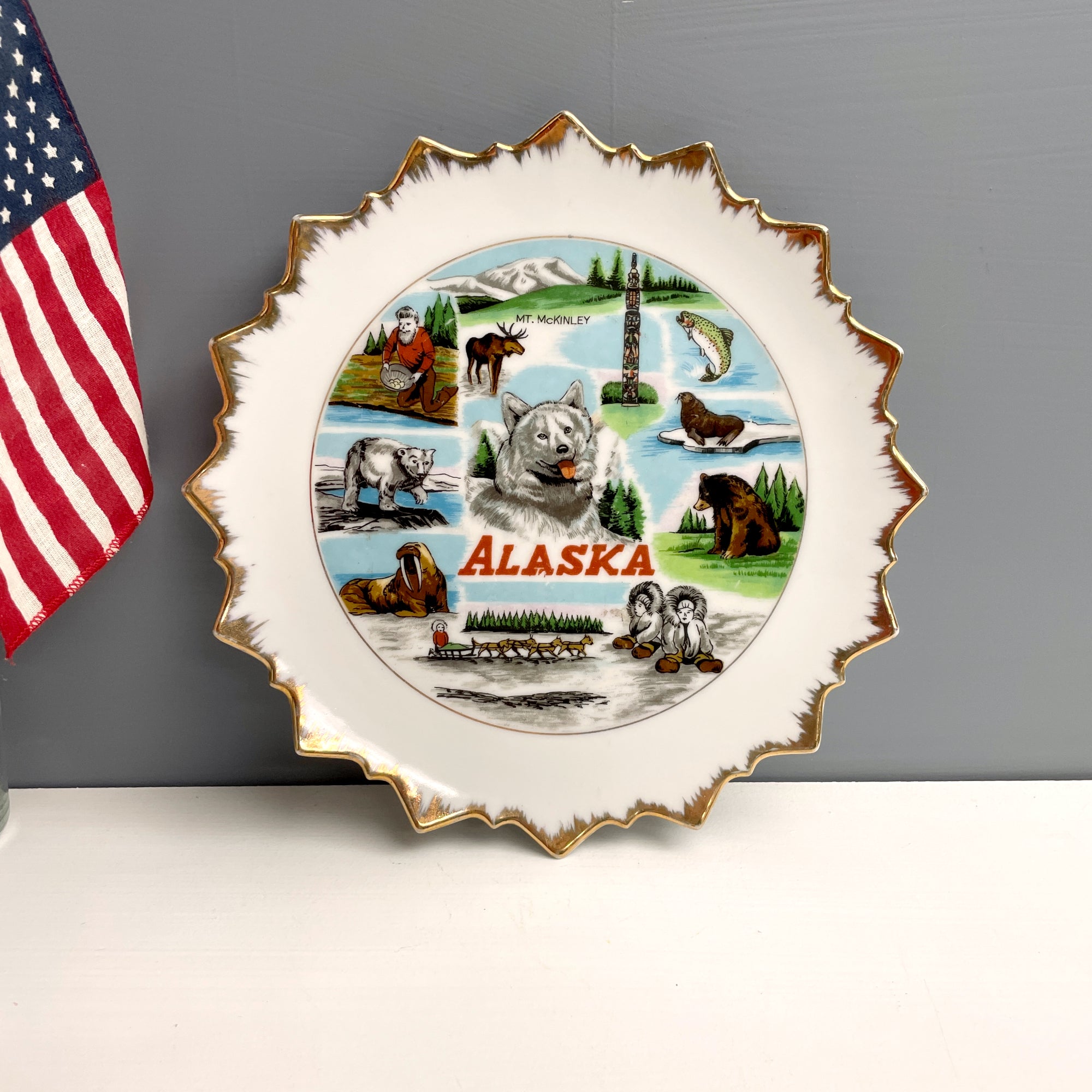 Alaska souvenir state plate - 1960s vintage