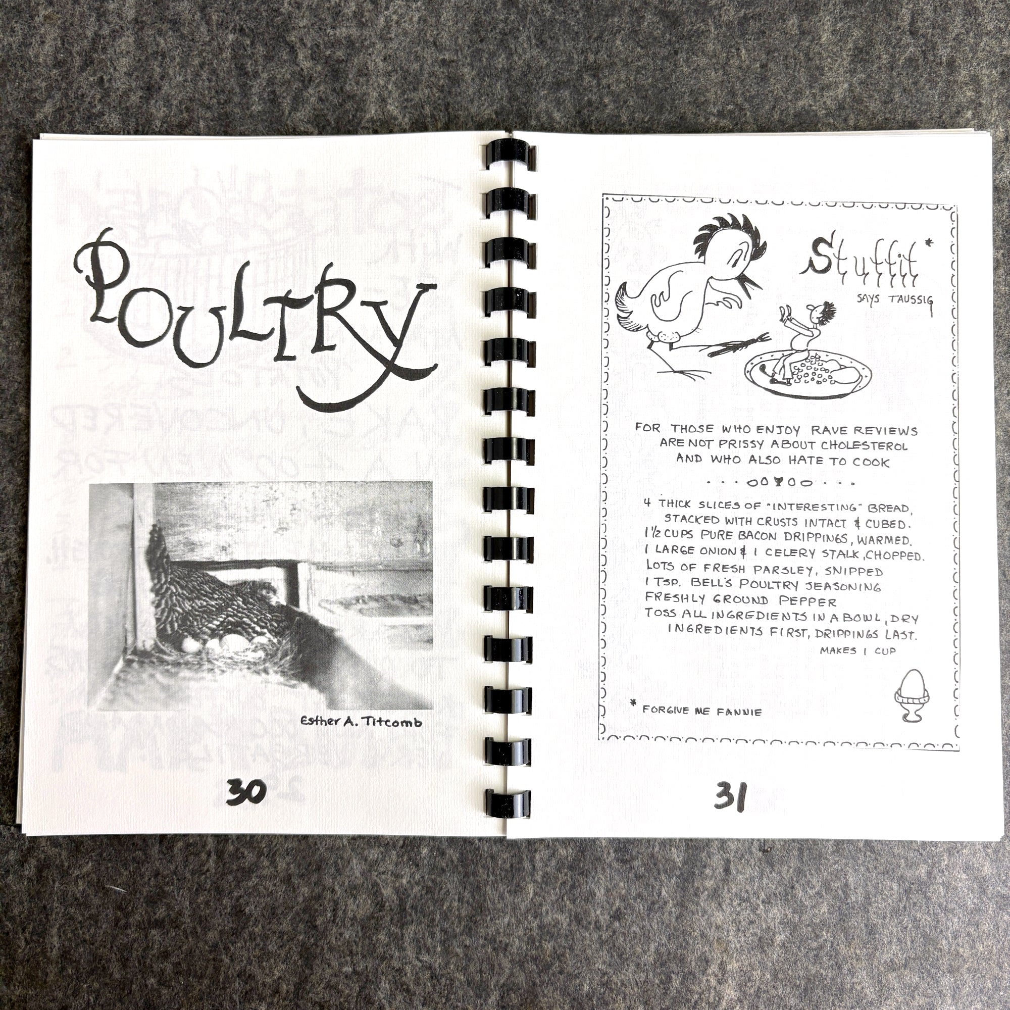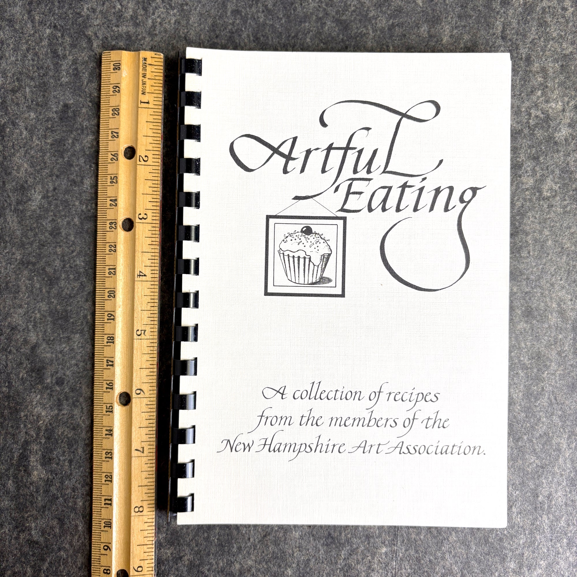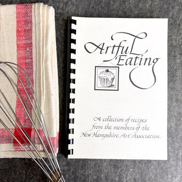 "Artful Eating: A collection of recipes from the members of the New Hampshire Art Association." Prepared by a committee with submitted recipes from members. Comb binding. Undated, but from before you needed to dial the area code for local calls.