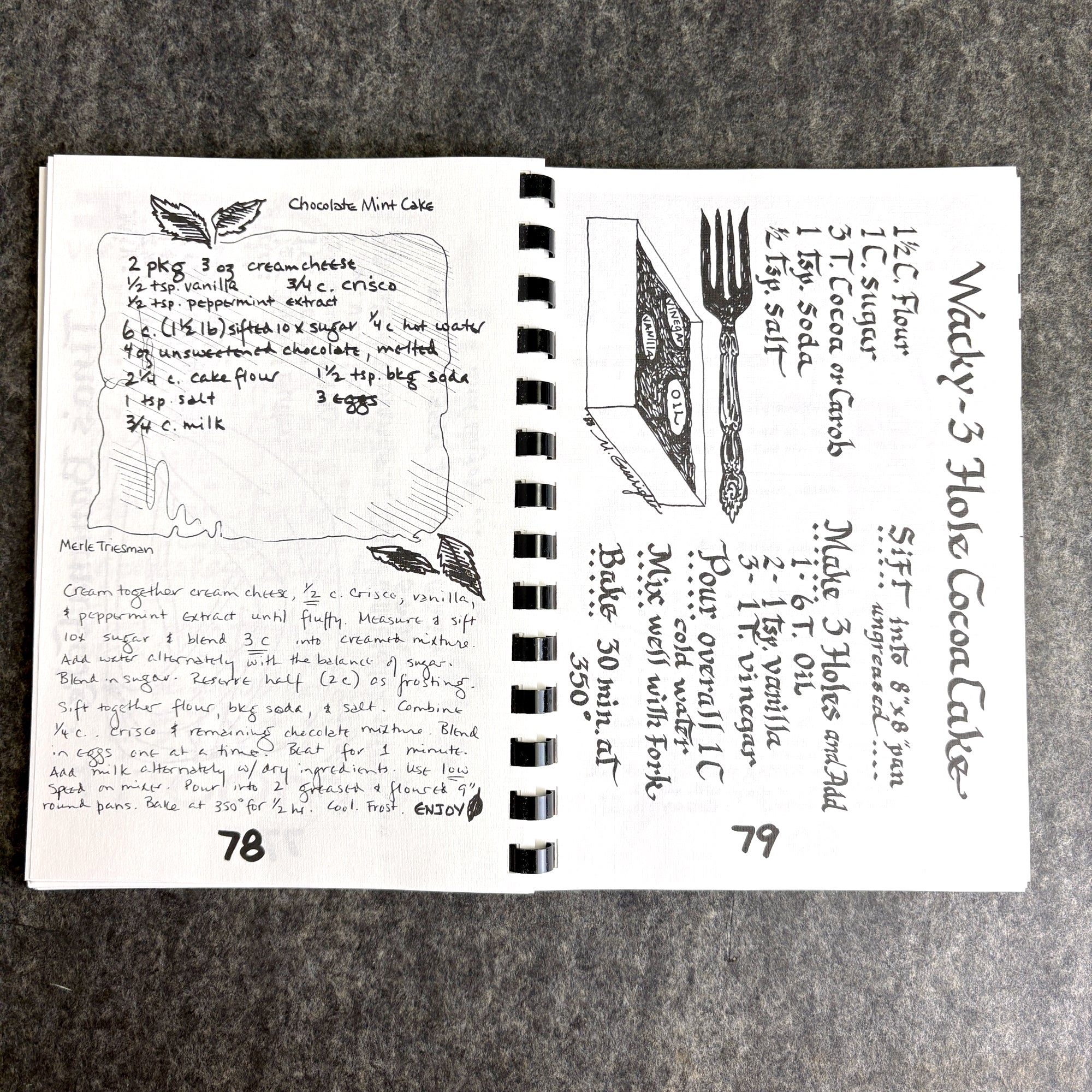Recipes are hand lettered with drawings and photographs. Perfect for your artsy friends who like to cook.