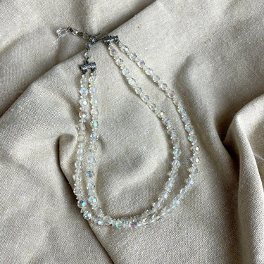Aurora borealis crystal necklace - two strands - vintage costume jewelry
