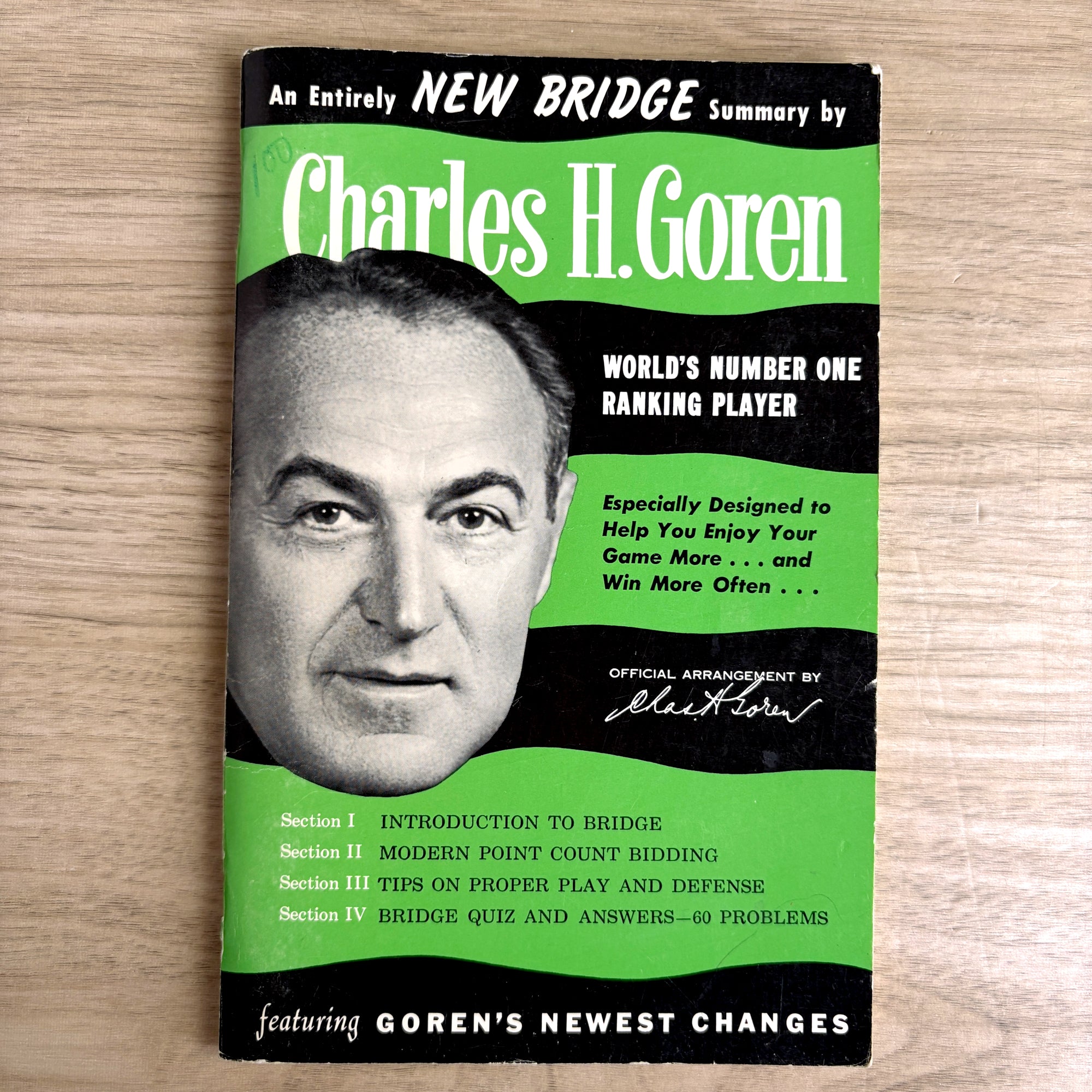 Also included are Charles H Goren's Introduction to Bridge and An Entirely New Bridge Summary by Charles H Goren. Goren marked all of his products as copyrighted, but with no dates printed, but we believe they are from the 1950s.