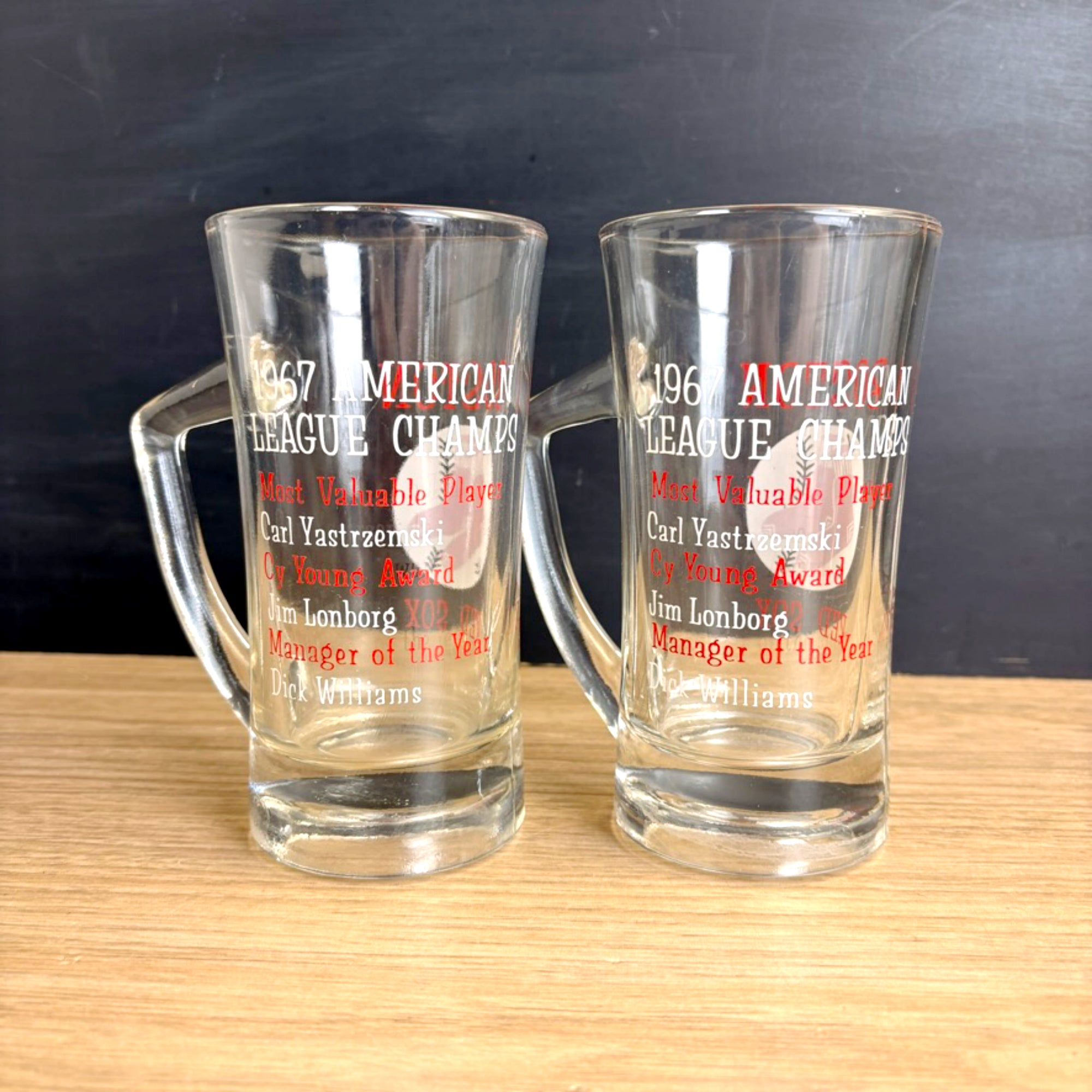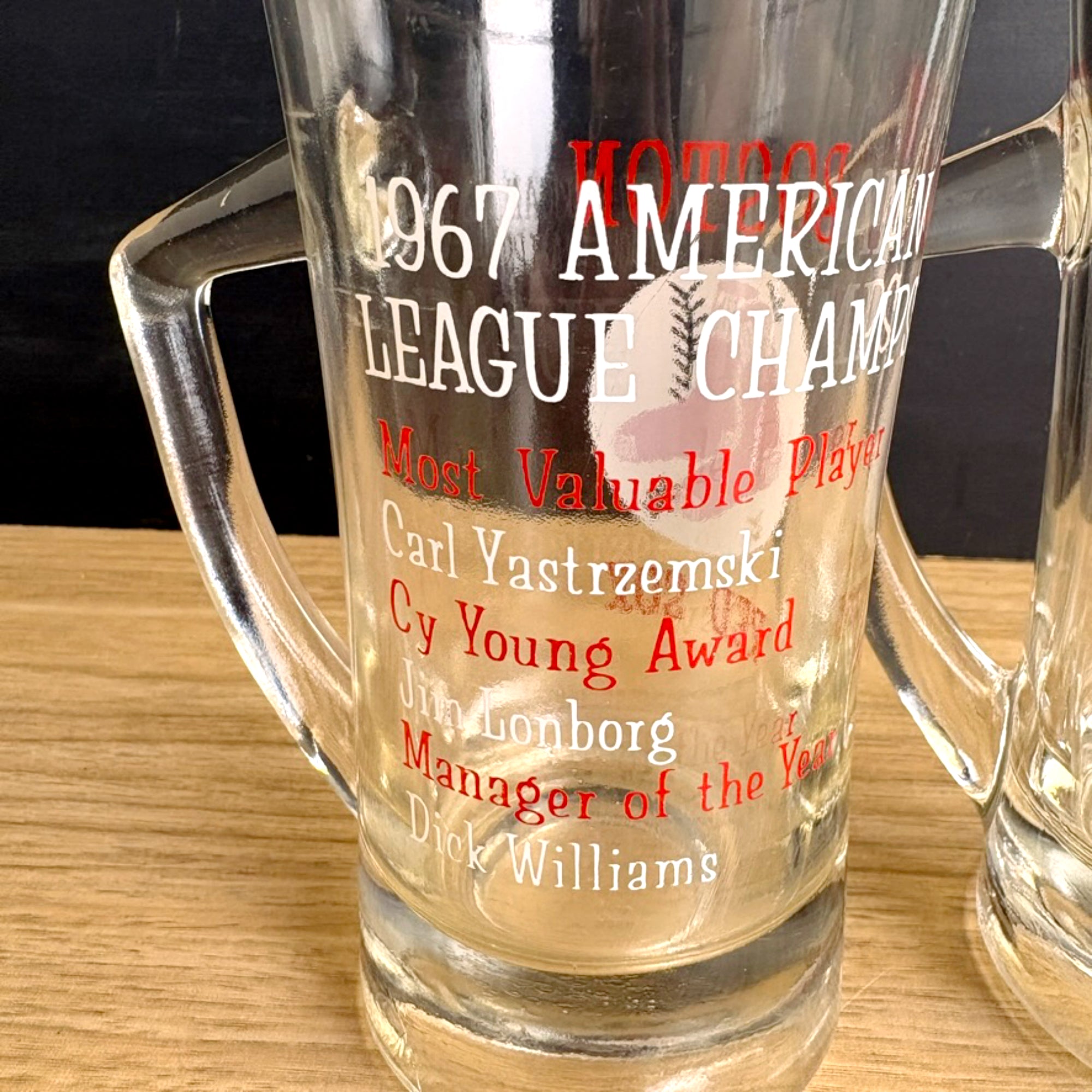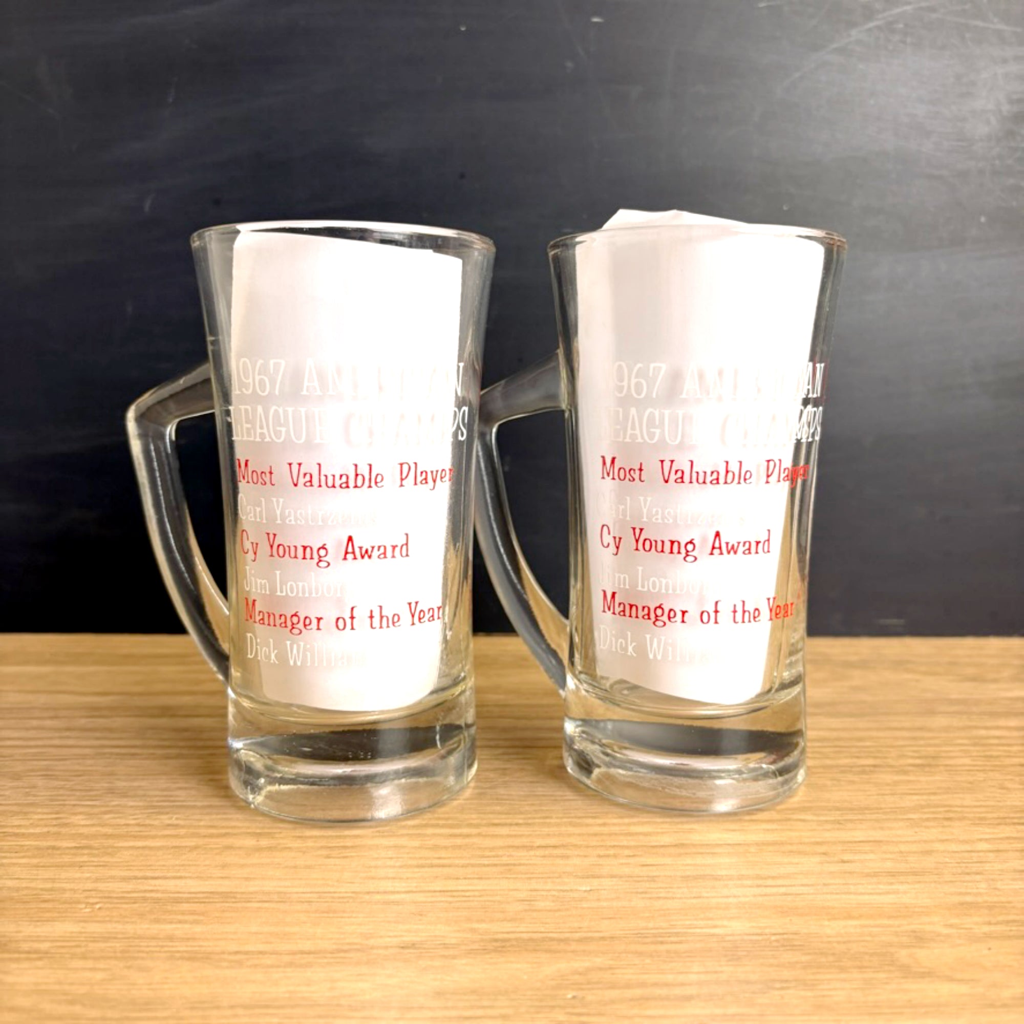 Celebrate the Red Sox "The Impossible Dream" season with this pair of Boston Red Sox 1967 American League Champs glass mugs. Cheers to Carl Yastrzemski MVP, Jim Lonborg Cy Young Award and Dick Williams Manager of the Year.