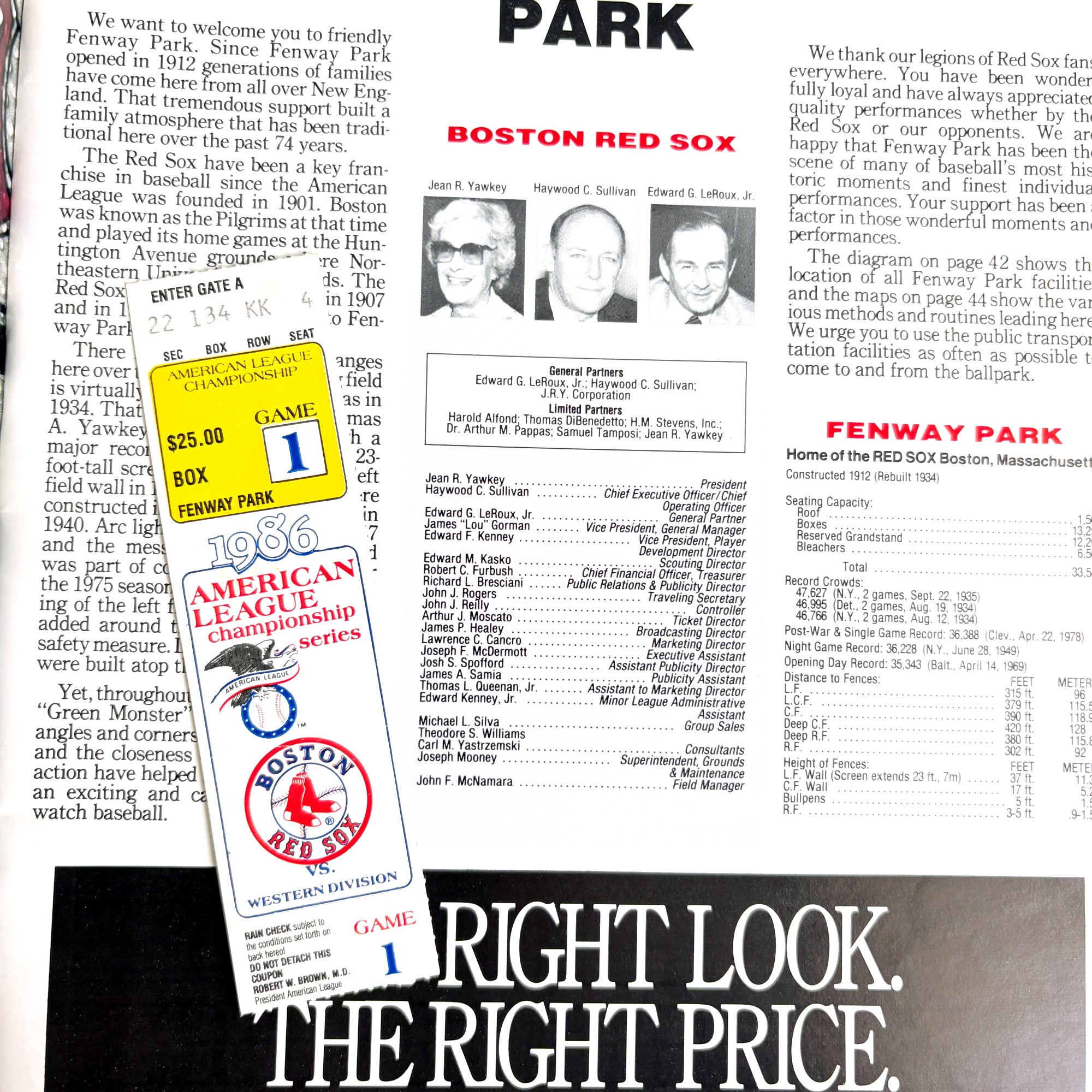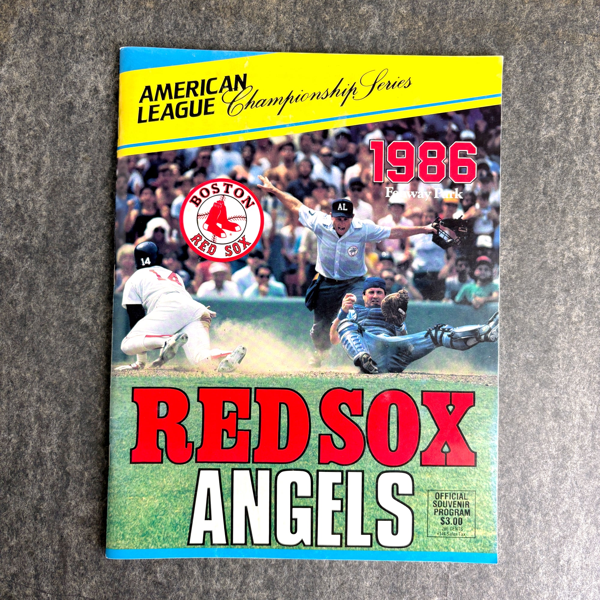 1986 American League Championship Red Sox Angels Souvenir program. Includes ticket stub. Very good condition. Hard to believe this made it through the game without a beer or mustard stain, but it did.