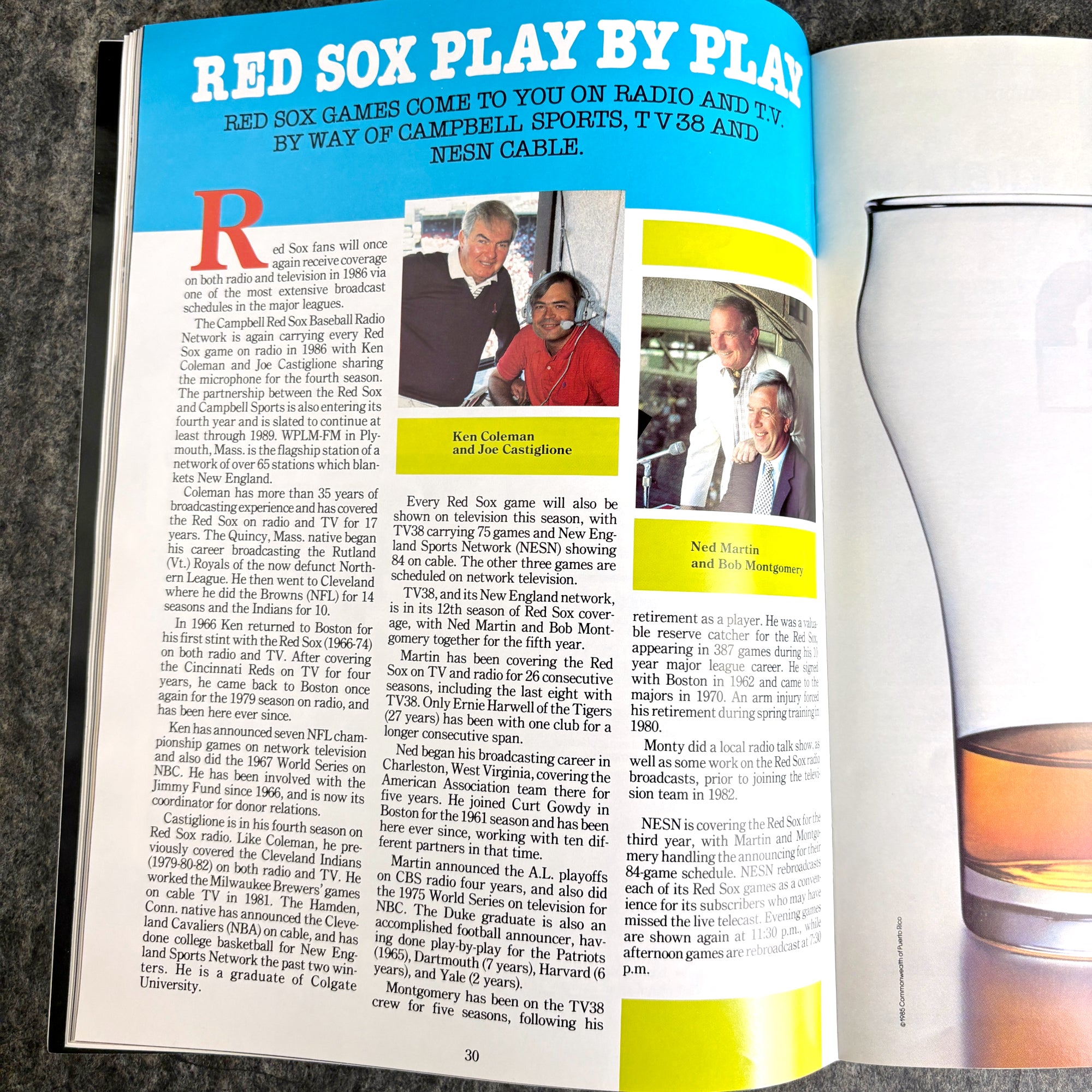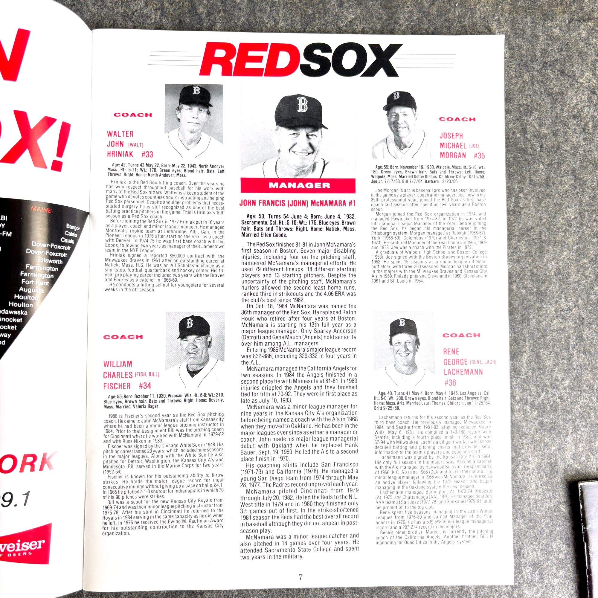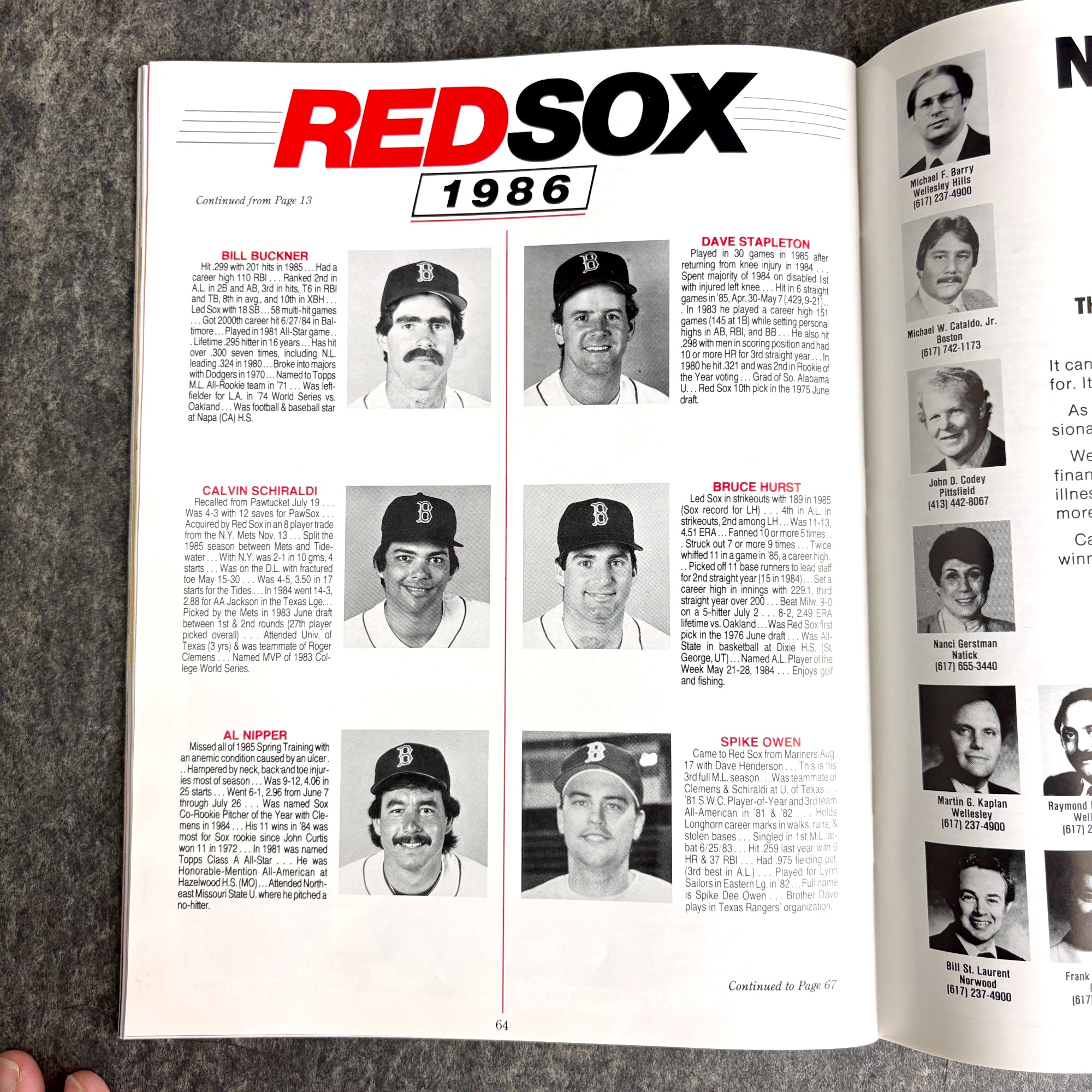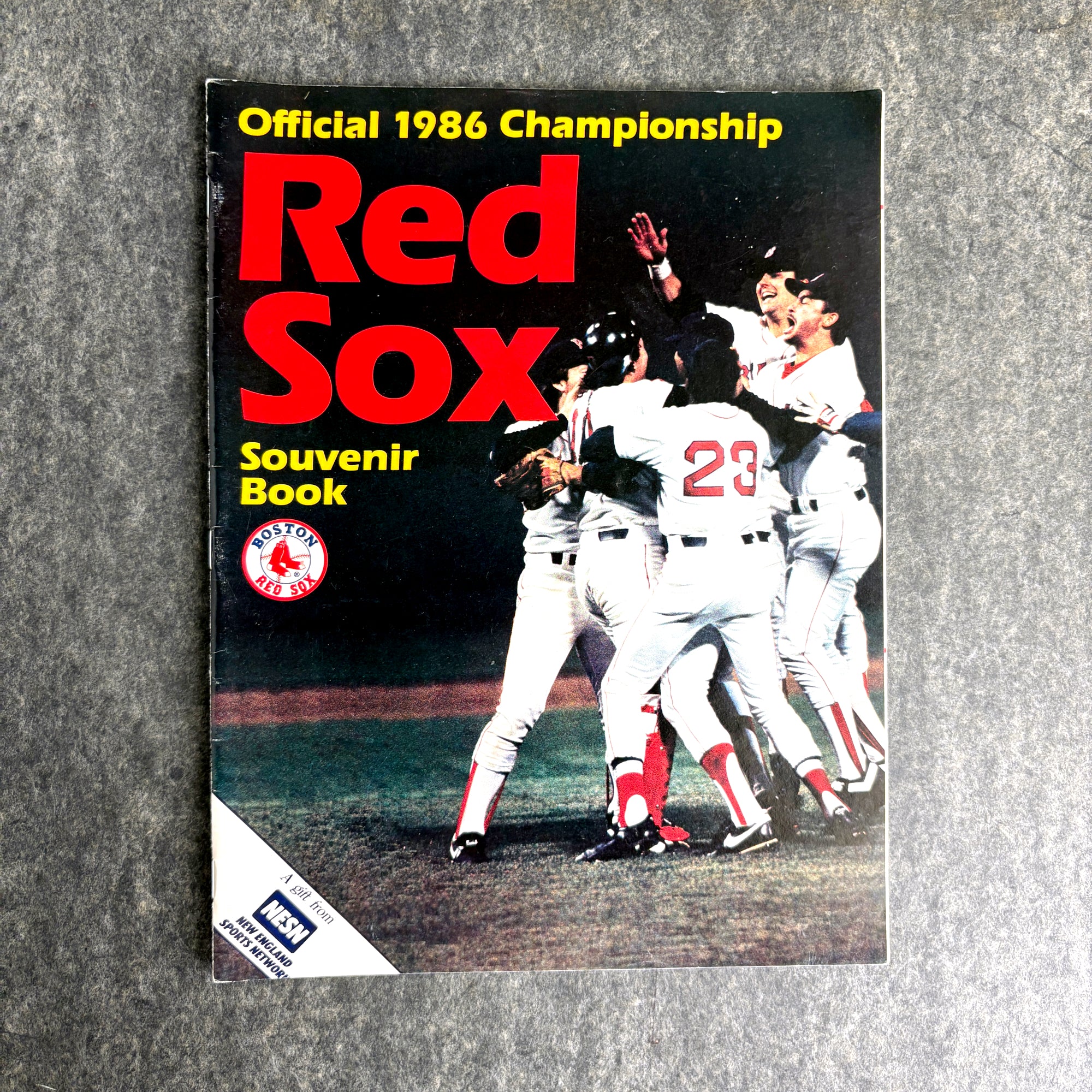 Official 1986 Championship Red Sox Souvenir book, gift from NESN, mailing address label on the back. Very good condition, minor scuffs from mailing.