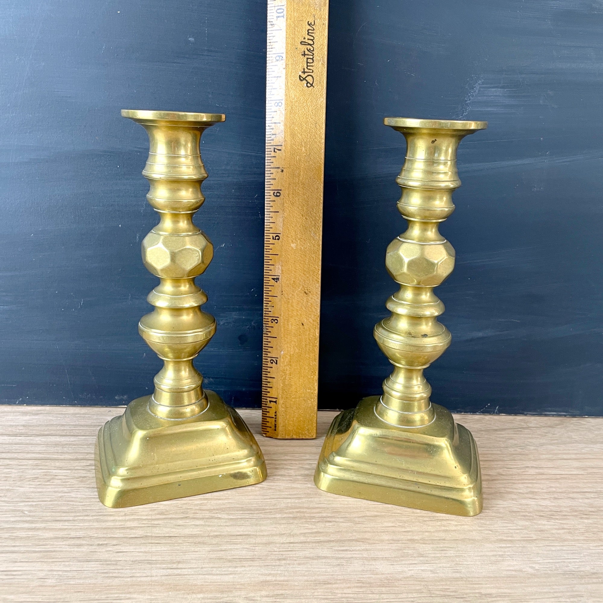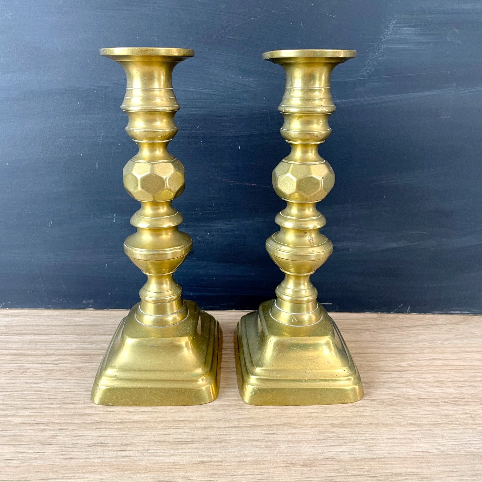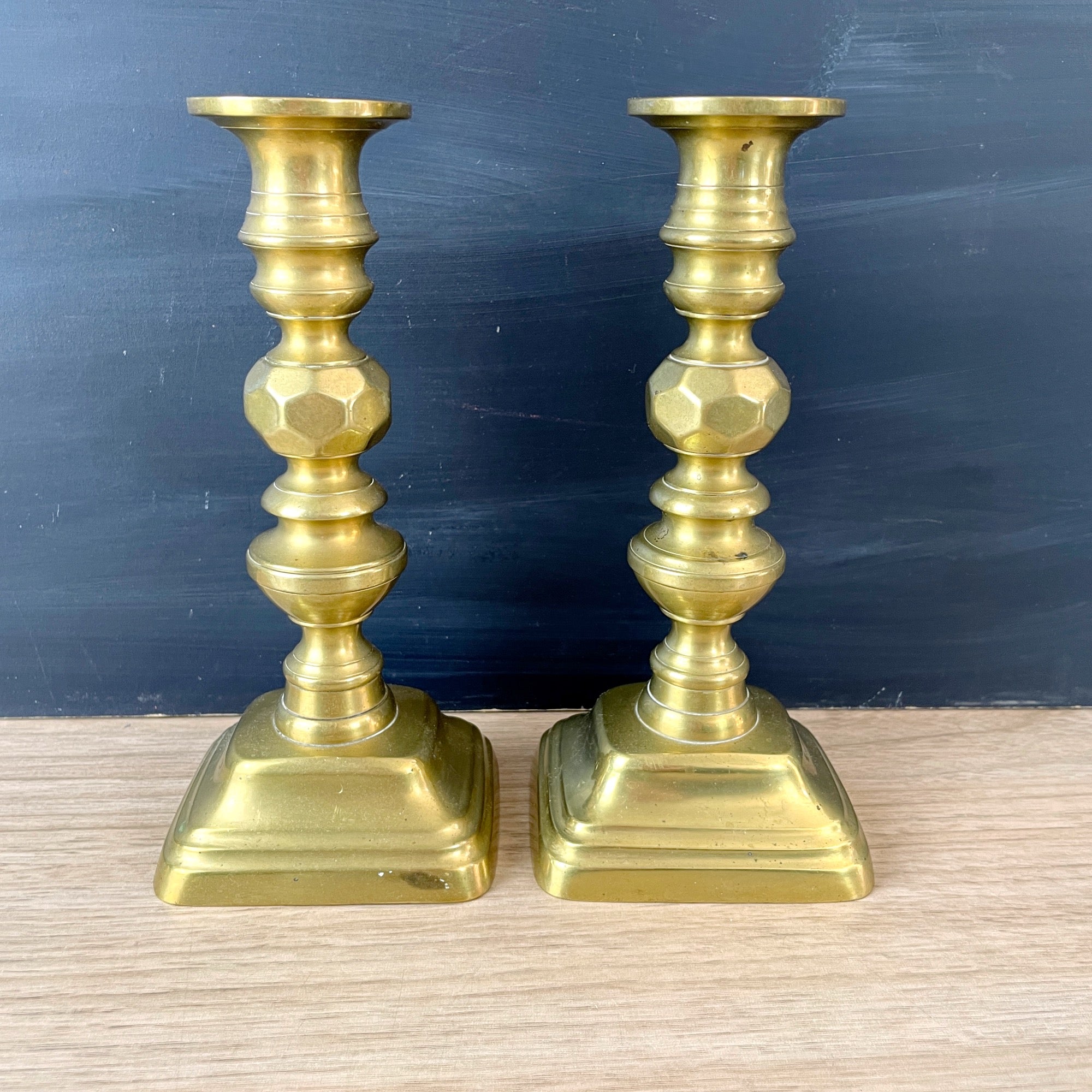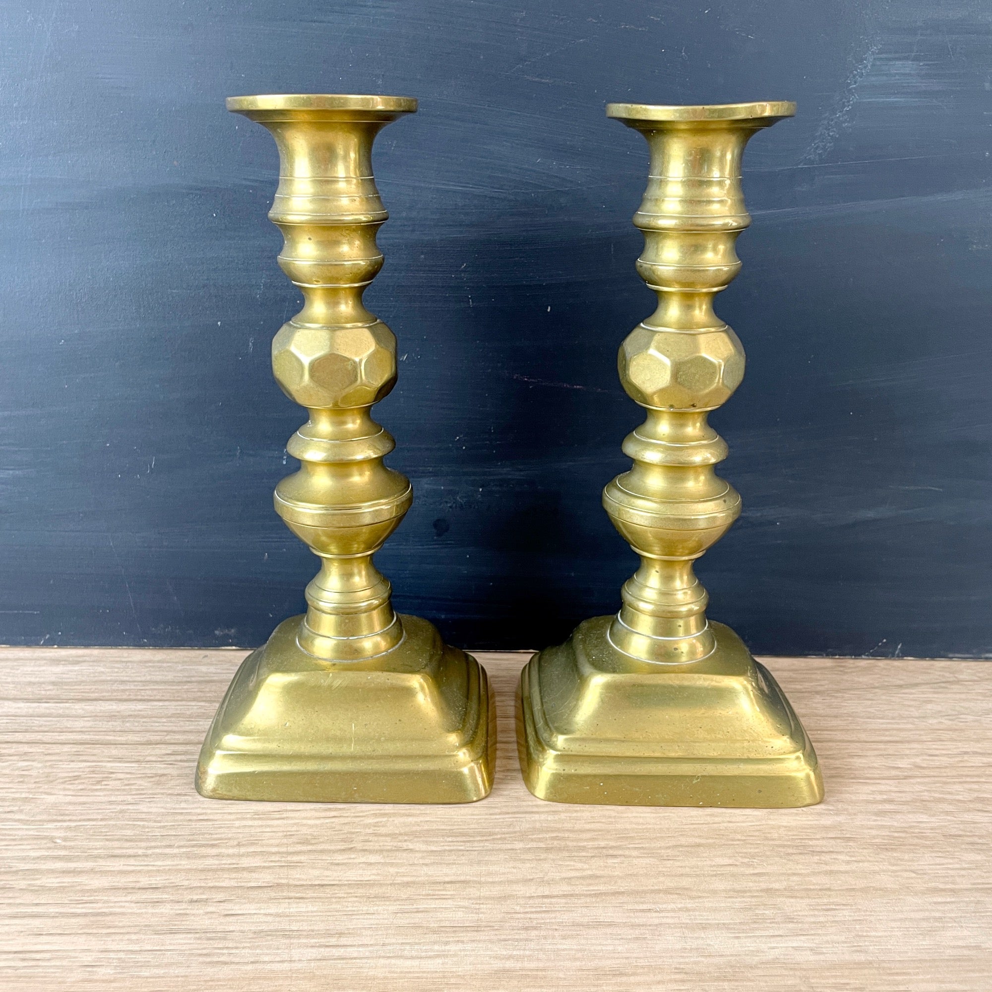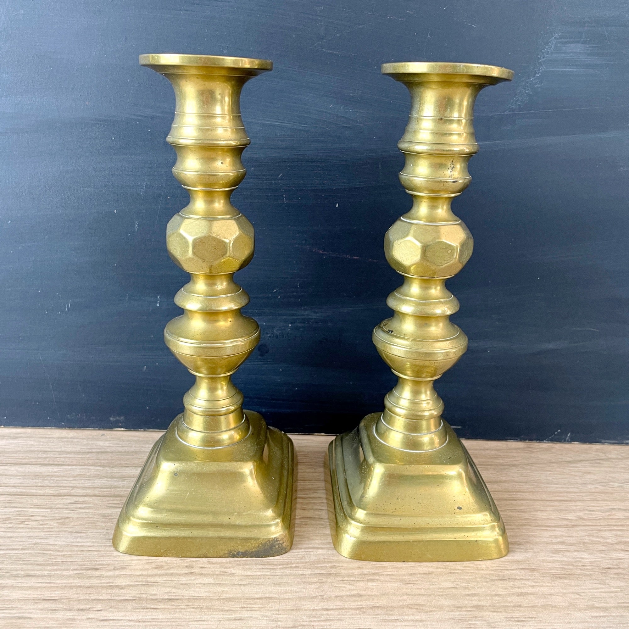 Brass candlesticks with push ups - late 19th century antique